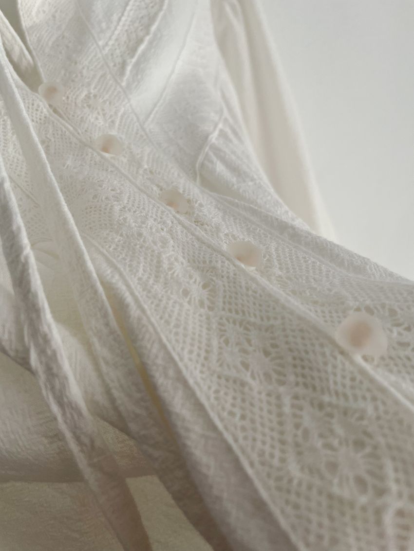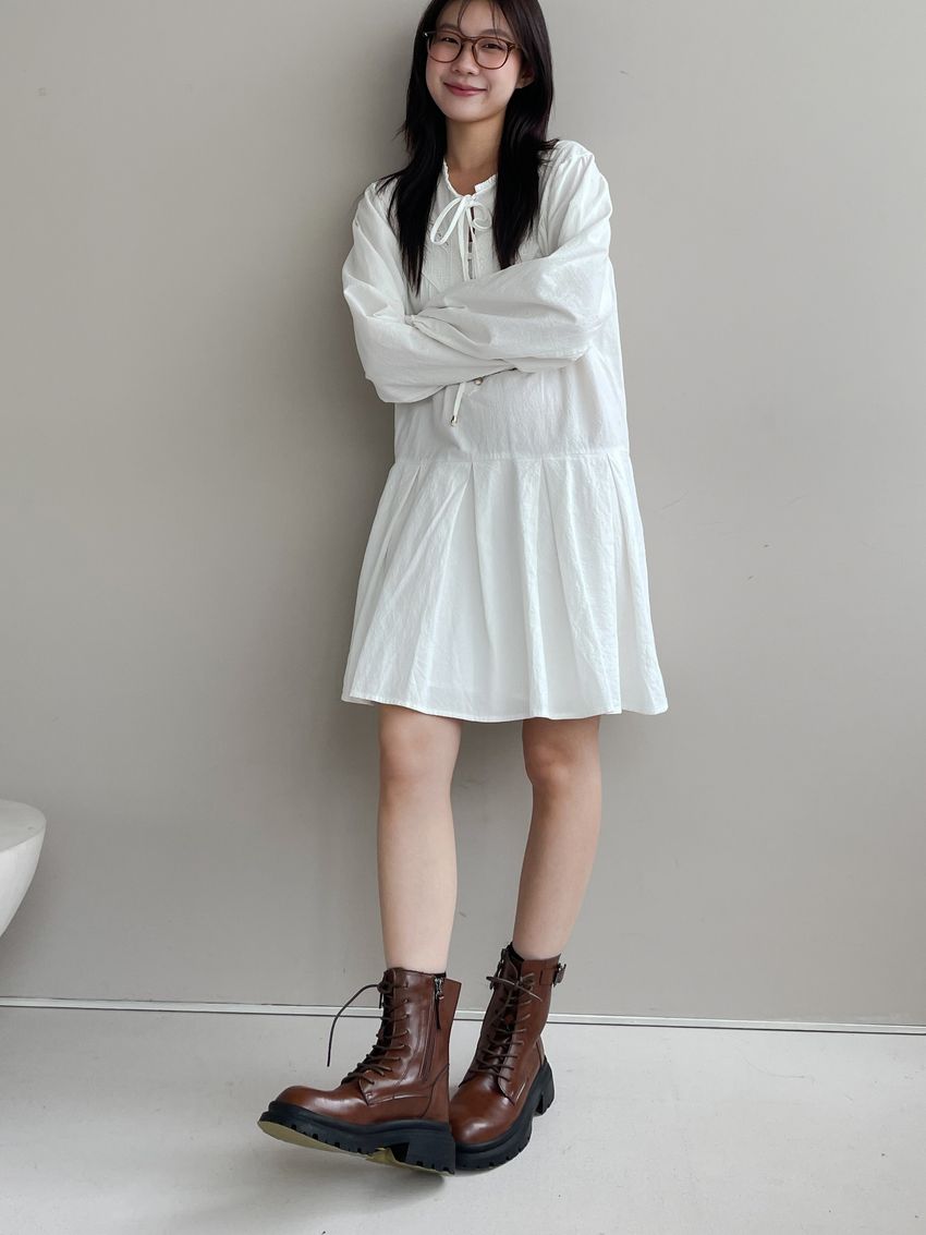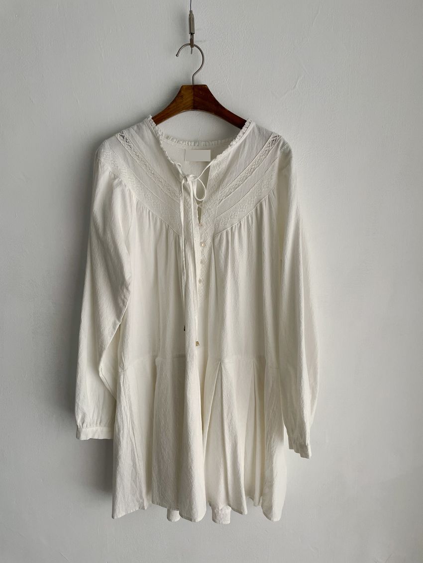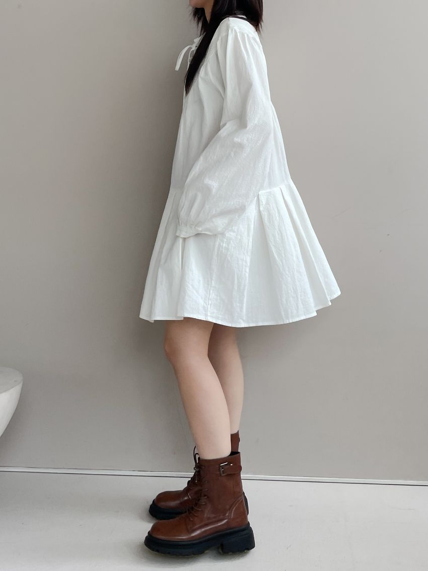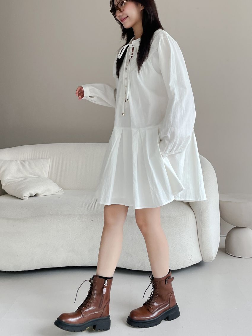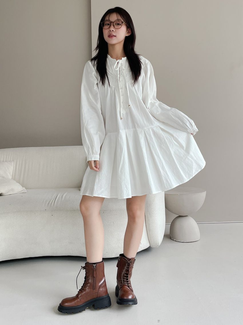 > 潔白蕾絲綁帶短洋裝(直播影片)(特)