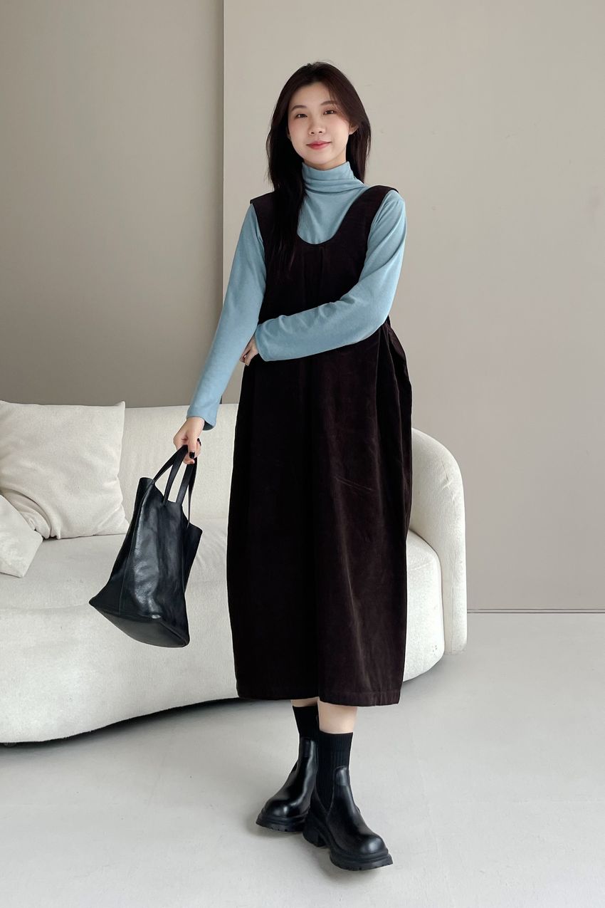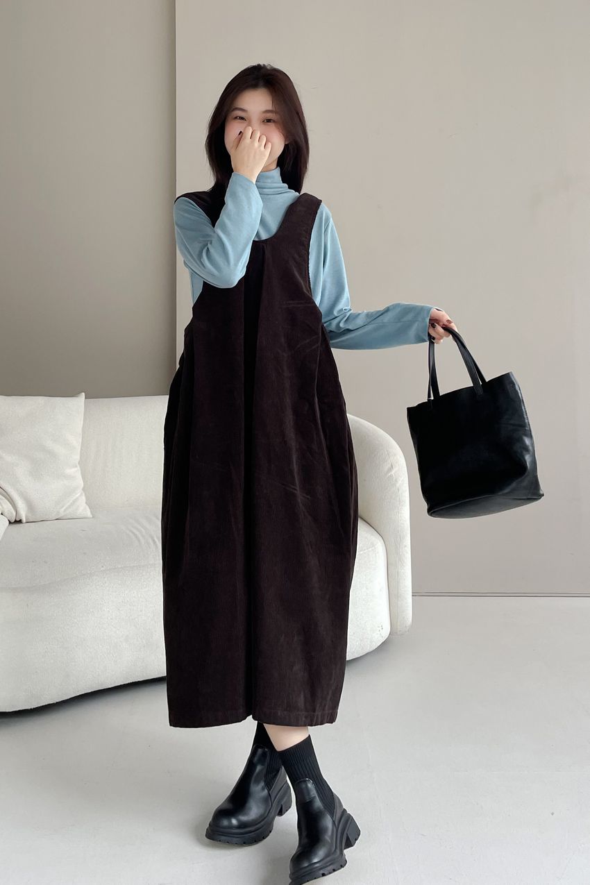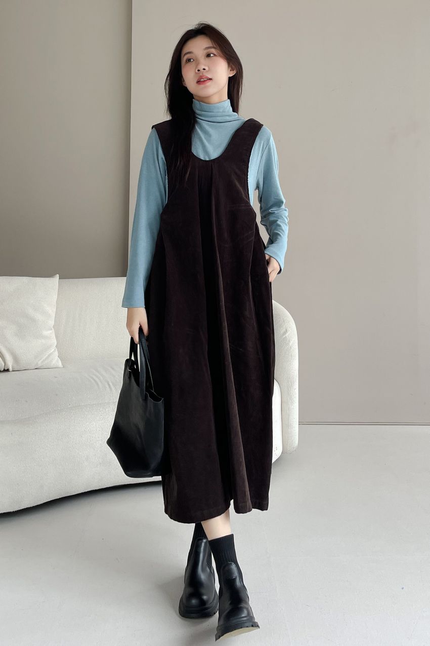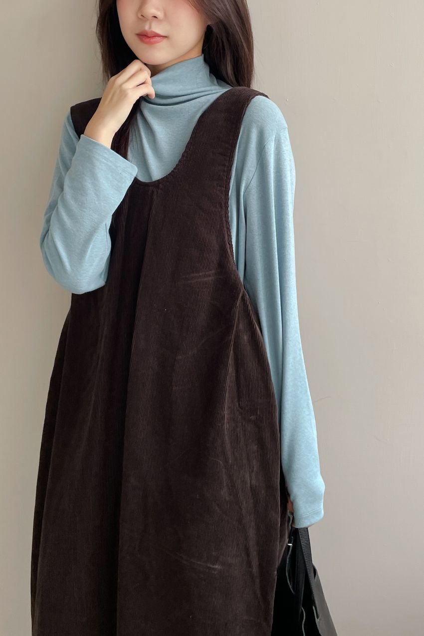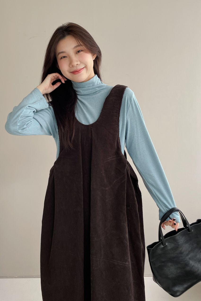 > 深U燈心絨繭型背心洋裝(直播影片)