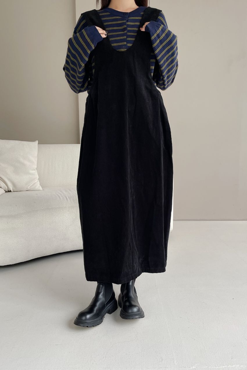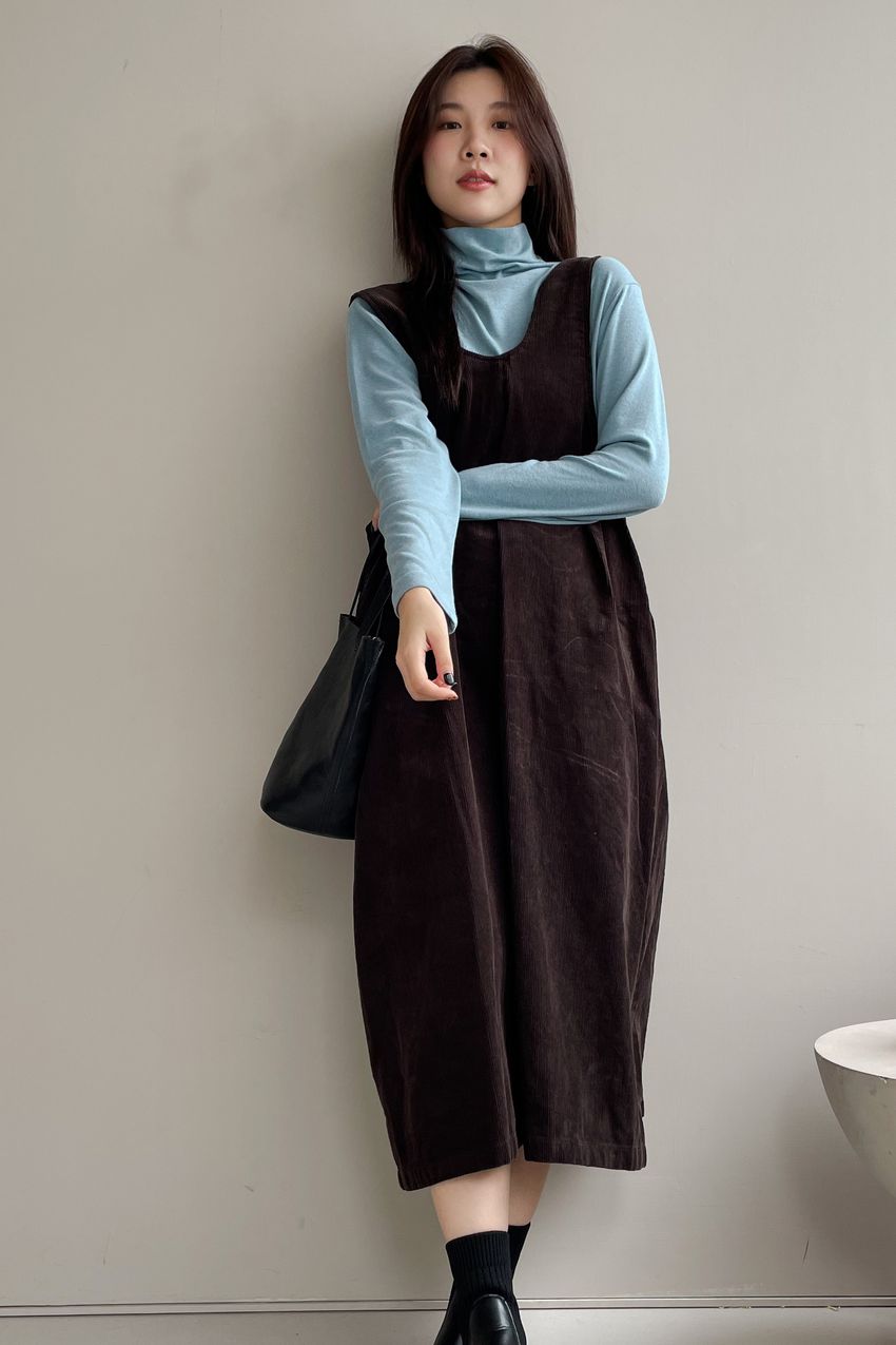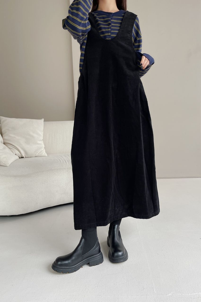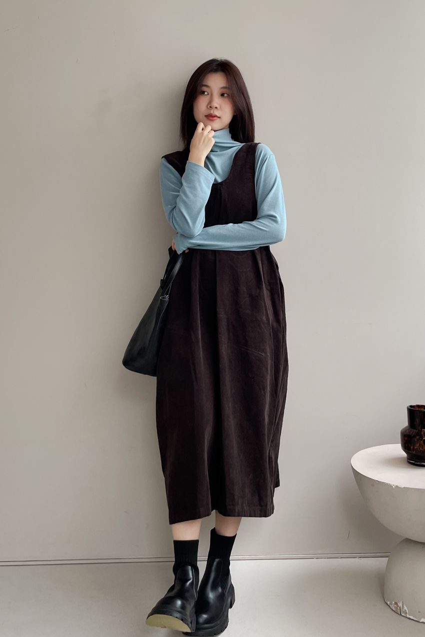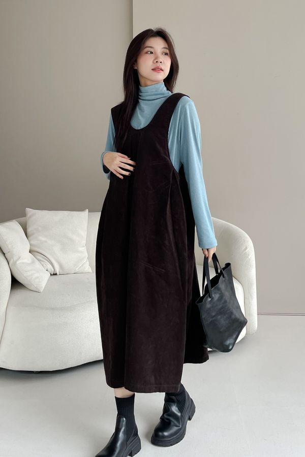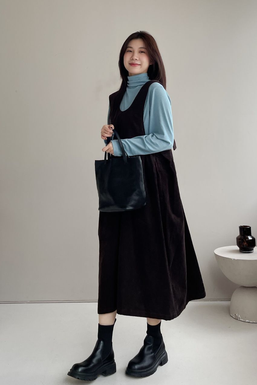 > 深U燈心絨繭型背心洋裝(直播影片)
