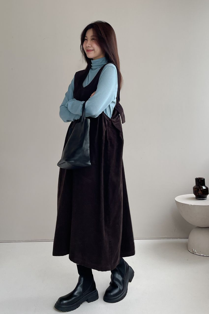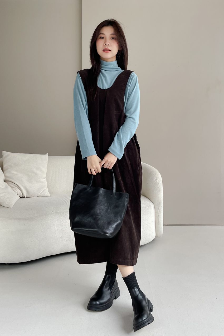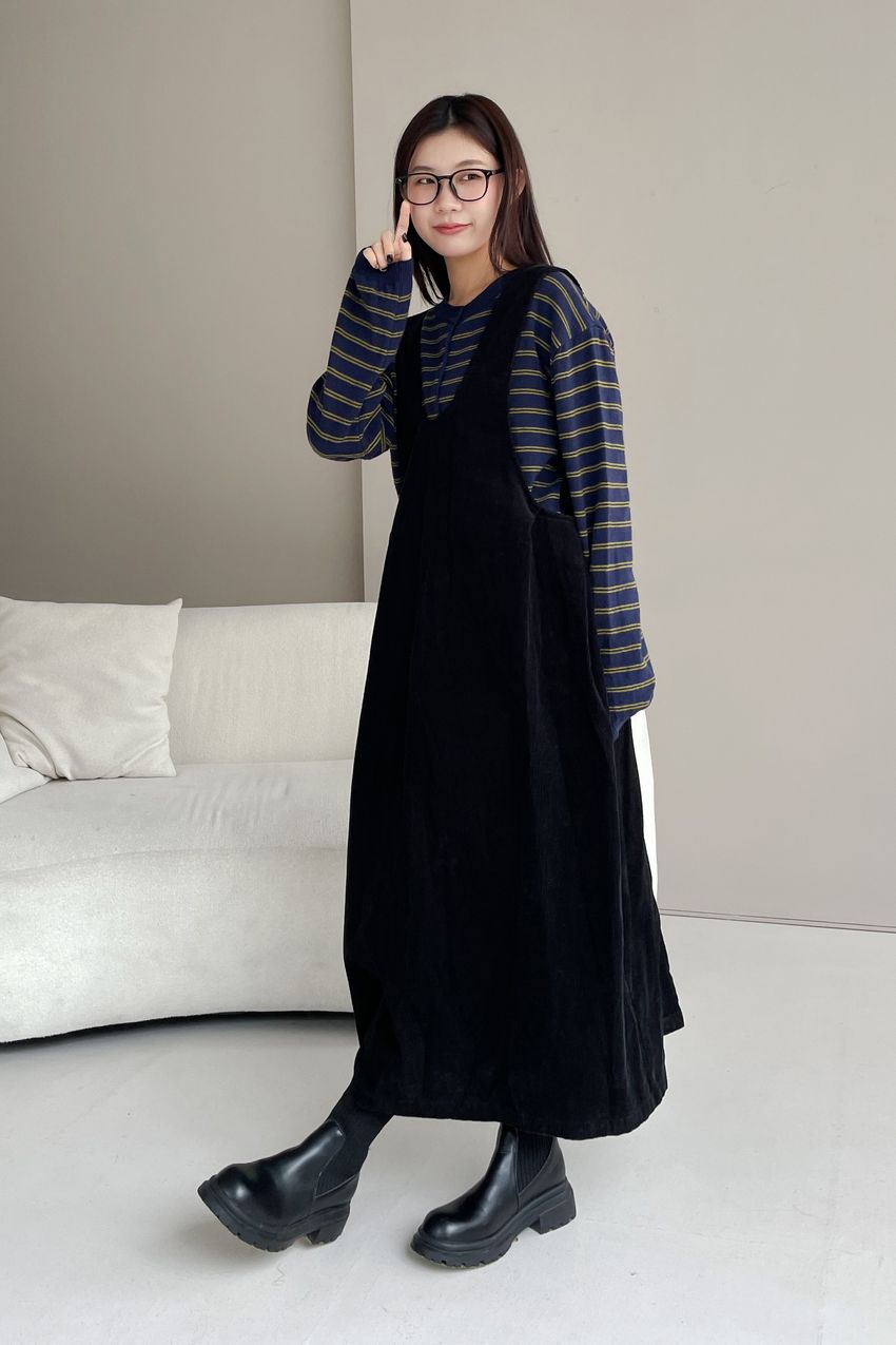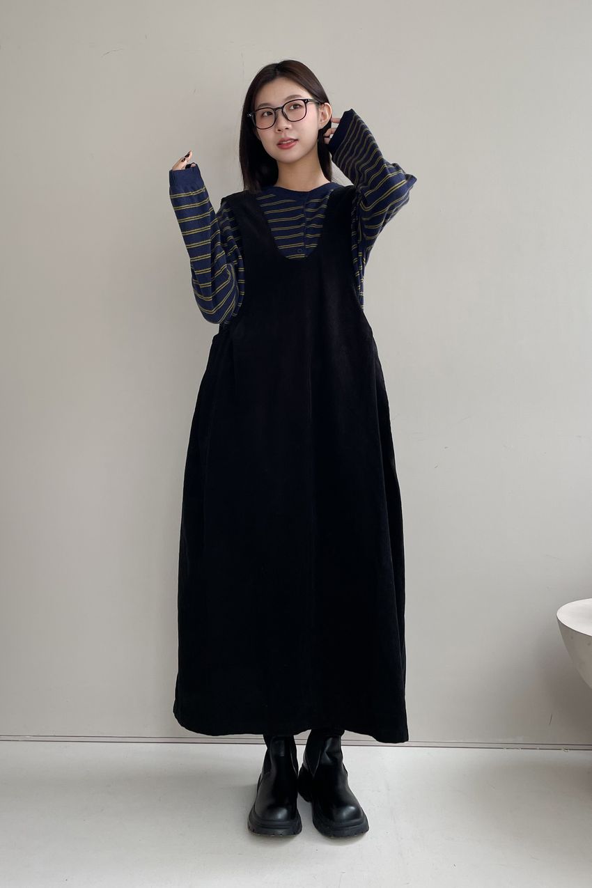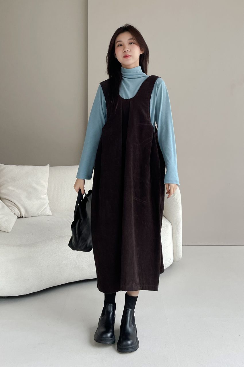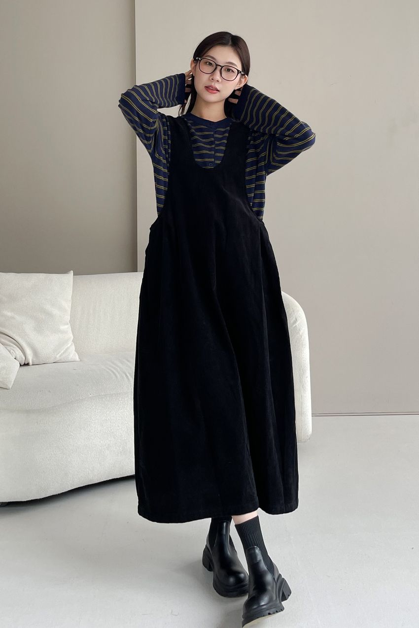 > 深U燈心絨繭型背心洋裝(直播影片)