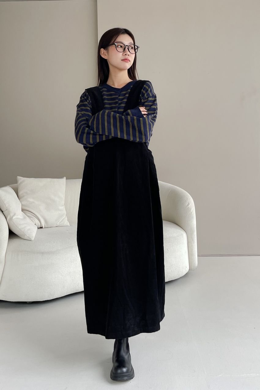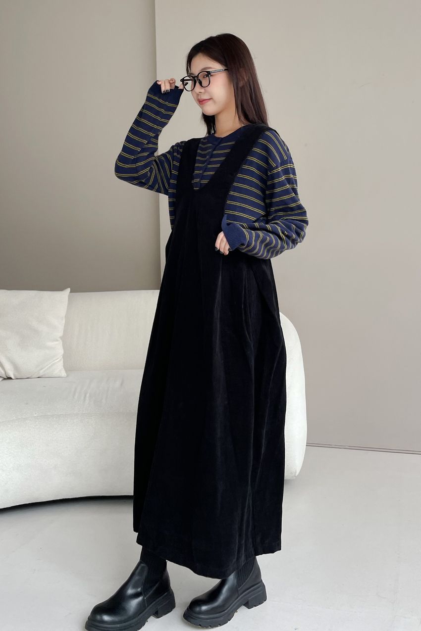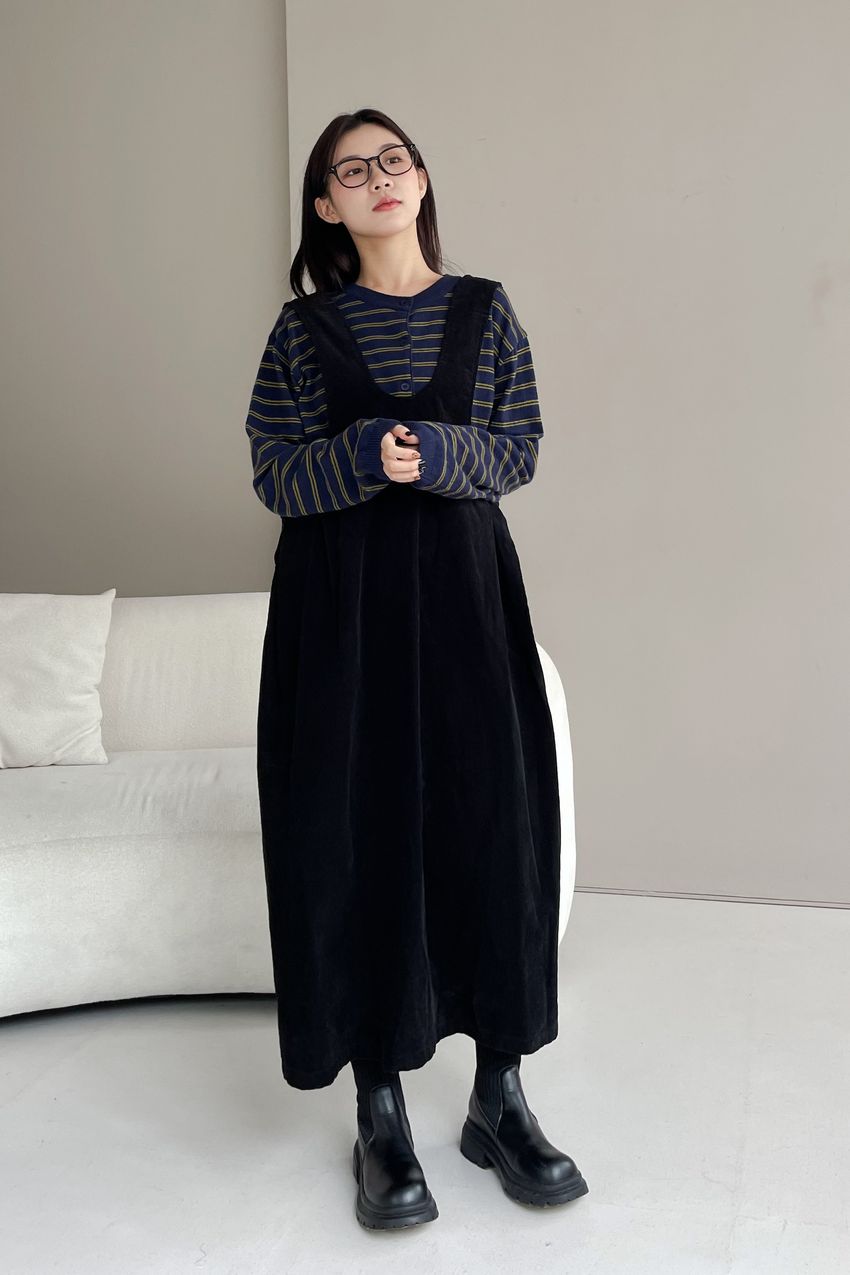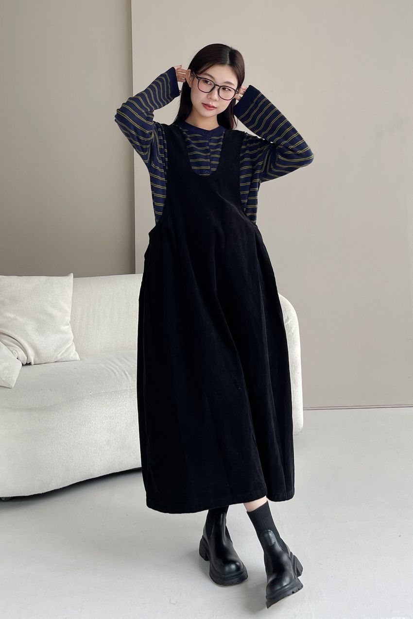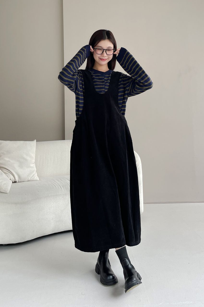 > 深U燈心絨繭型背心洋裝(直播影片)