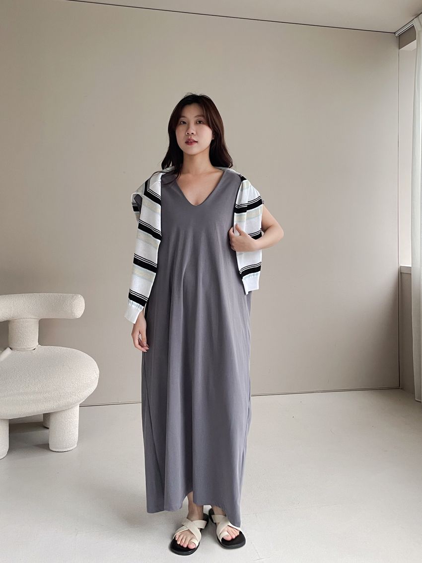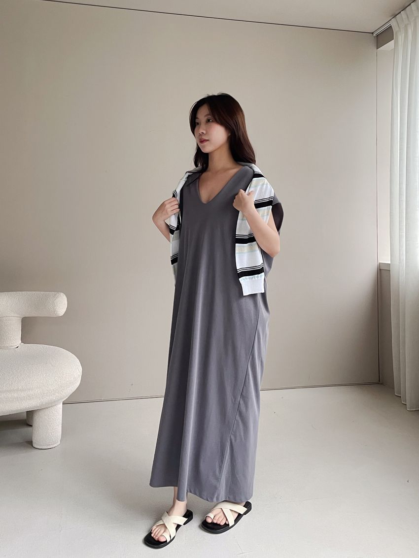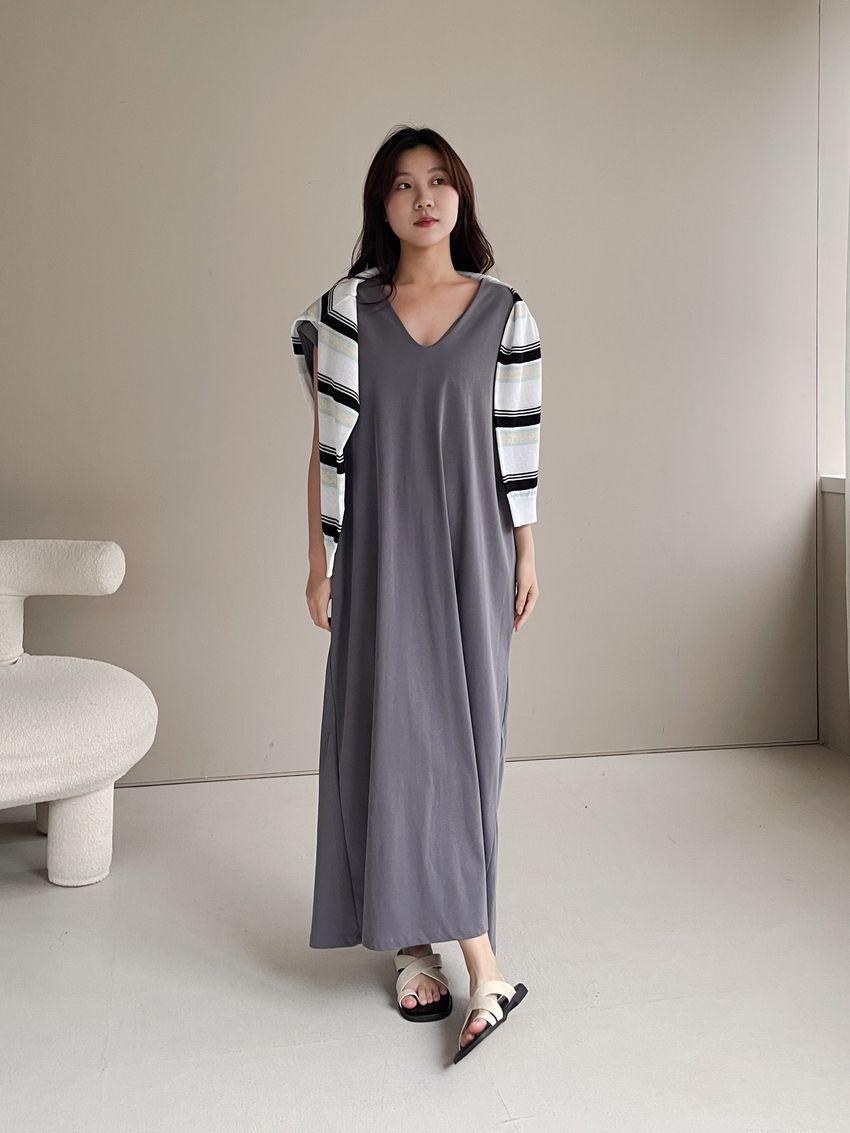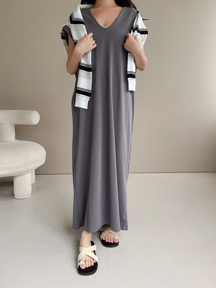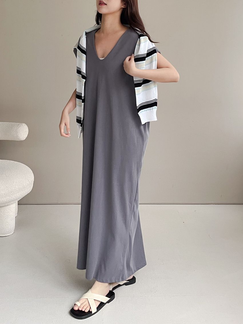> 自留款!極簡休閒V領棉質洋裝(直播款)(特)