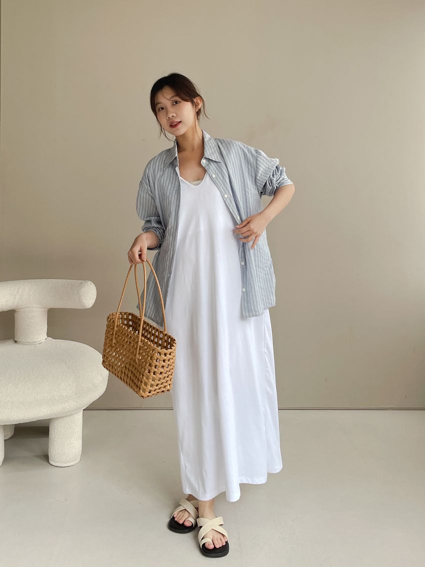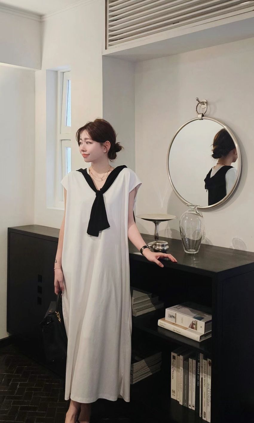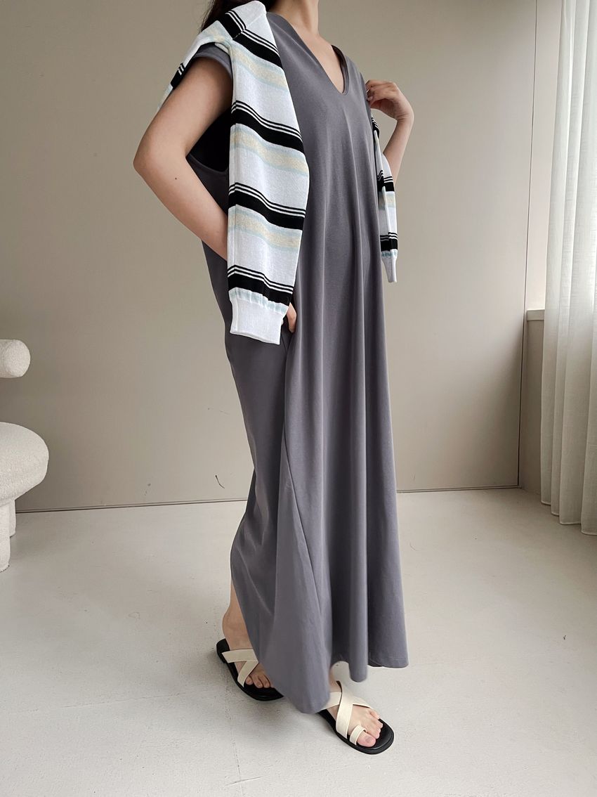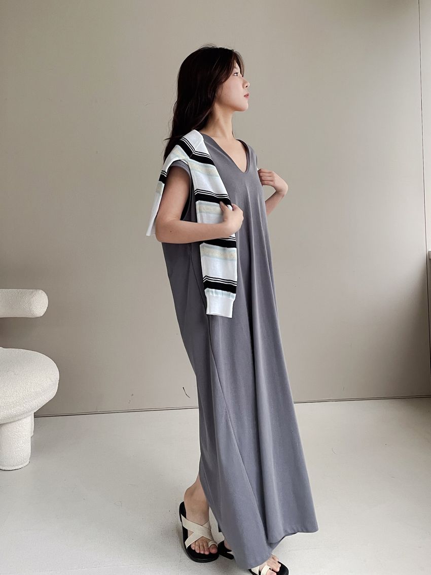 > 自留款!極簡休閒V領棉質洋裝(直播款)(特)