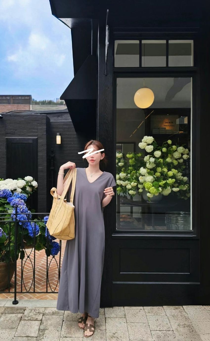 自留款!極簡休閒V領棉質洋裝(直播款)(特)