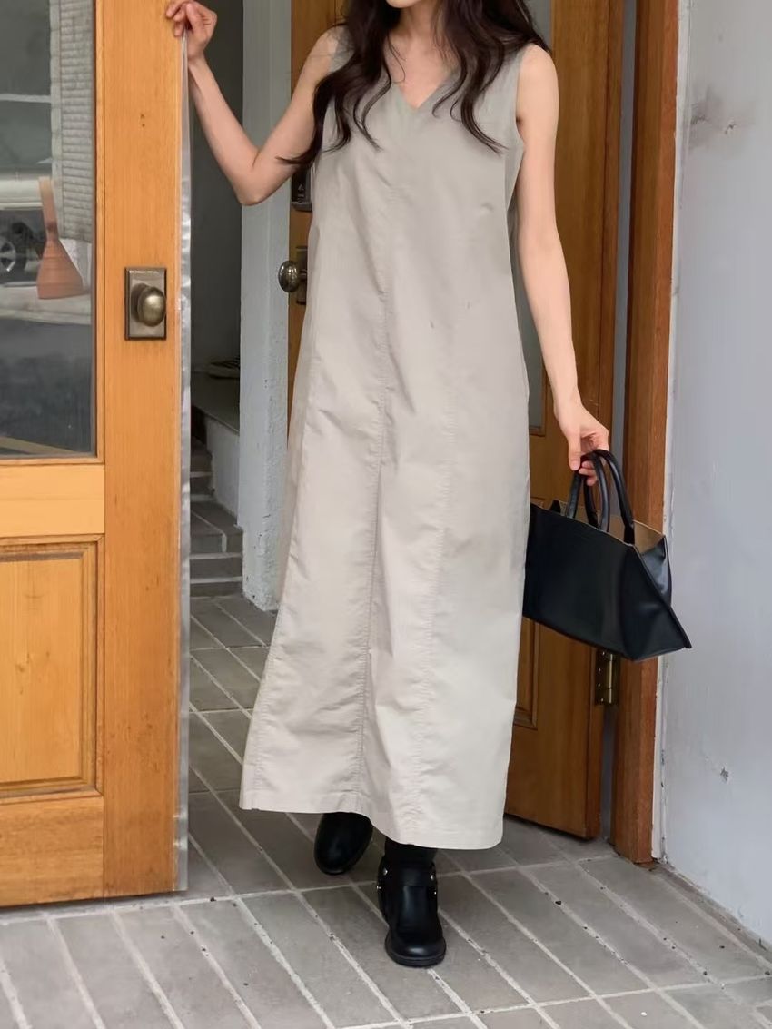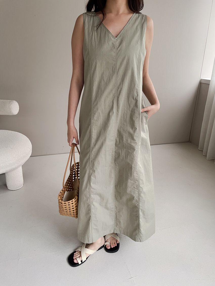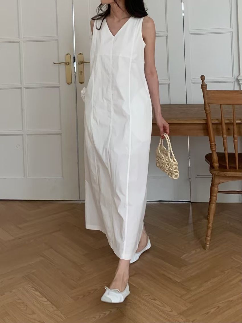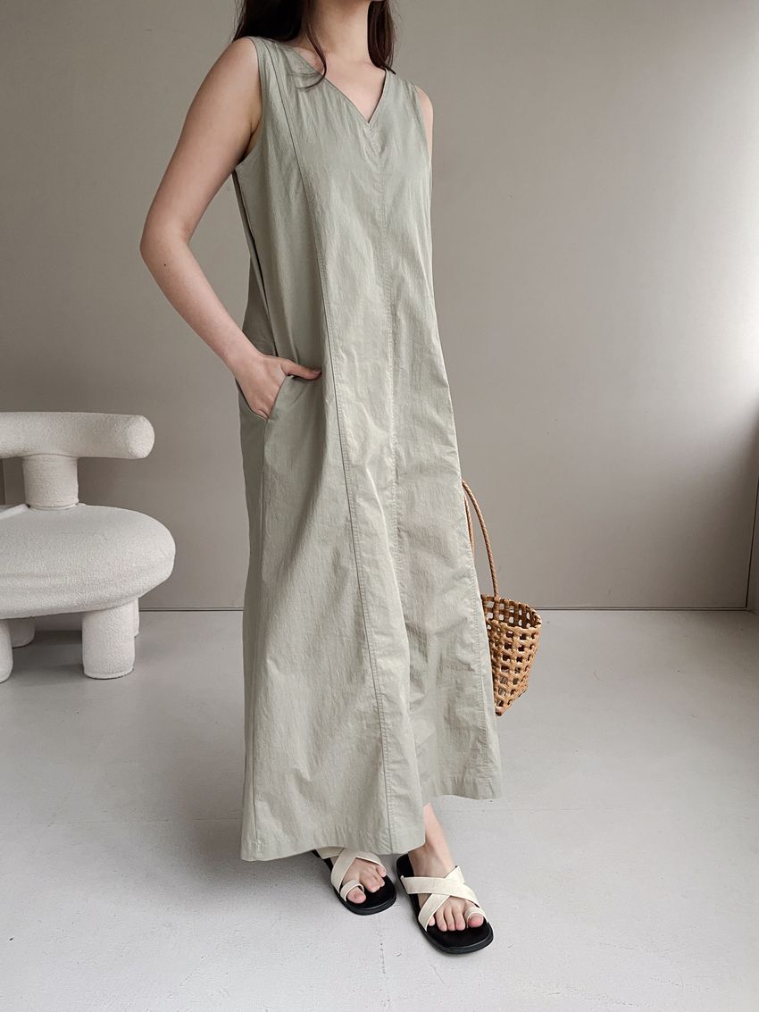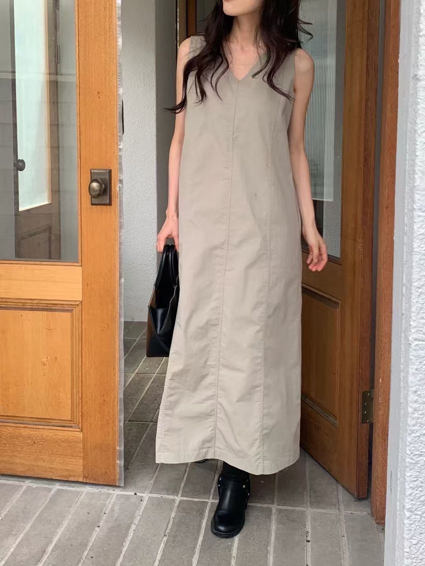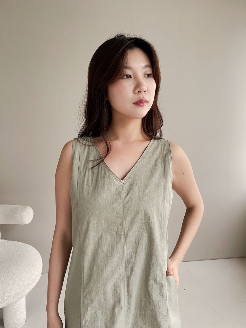 拼接縫線挺版背心洋裝(直播款)(特)
