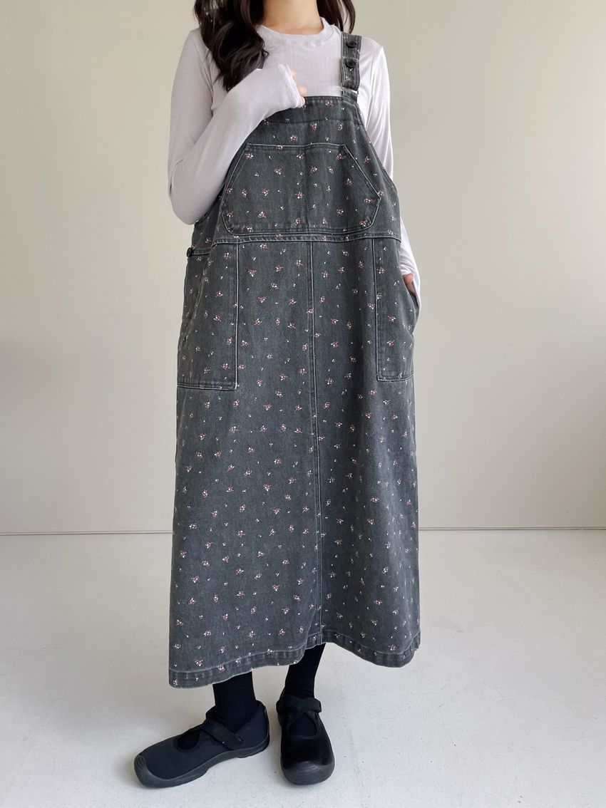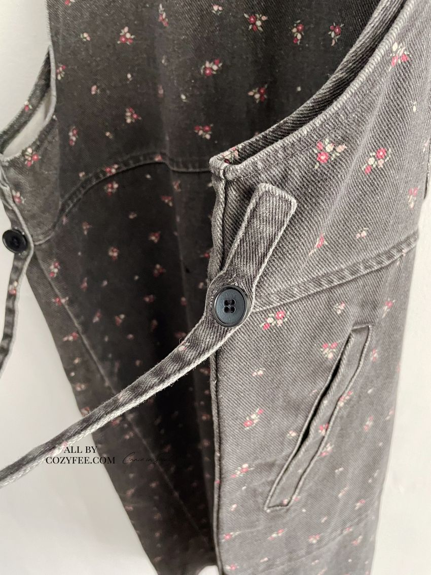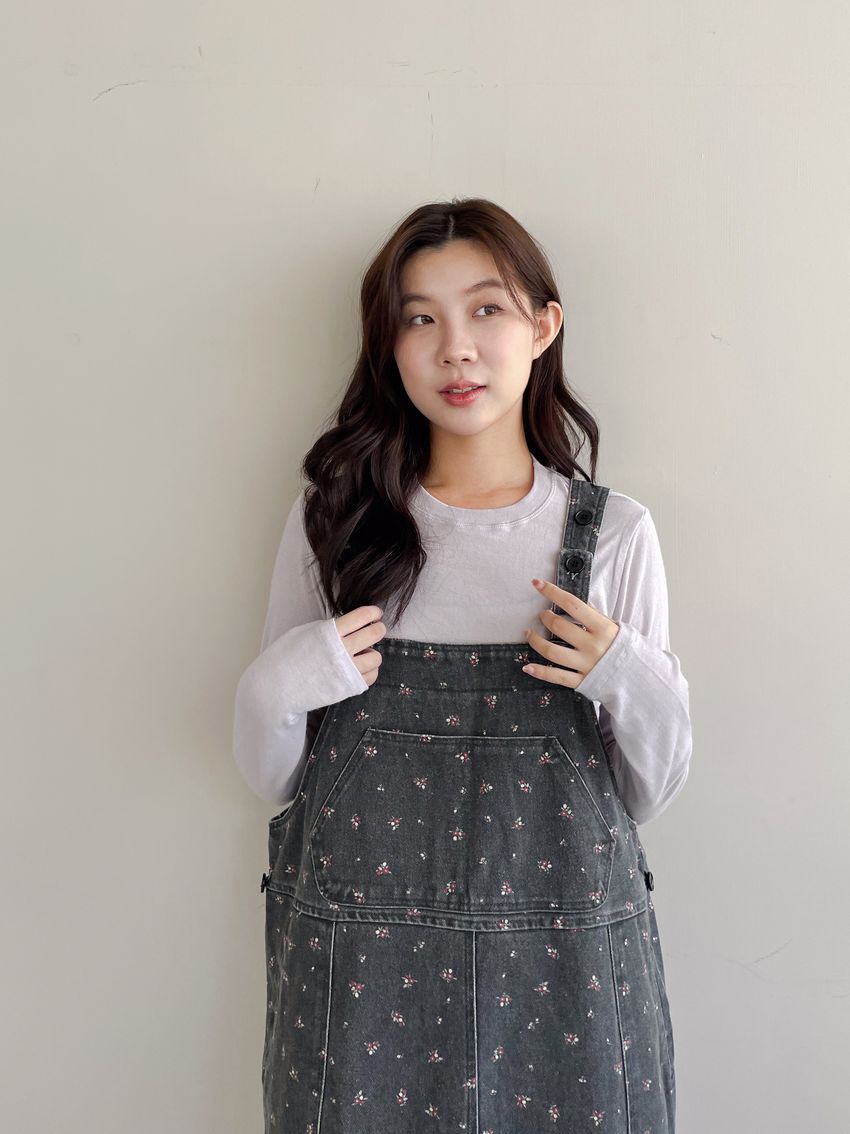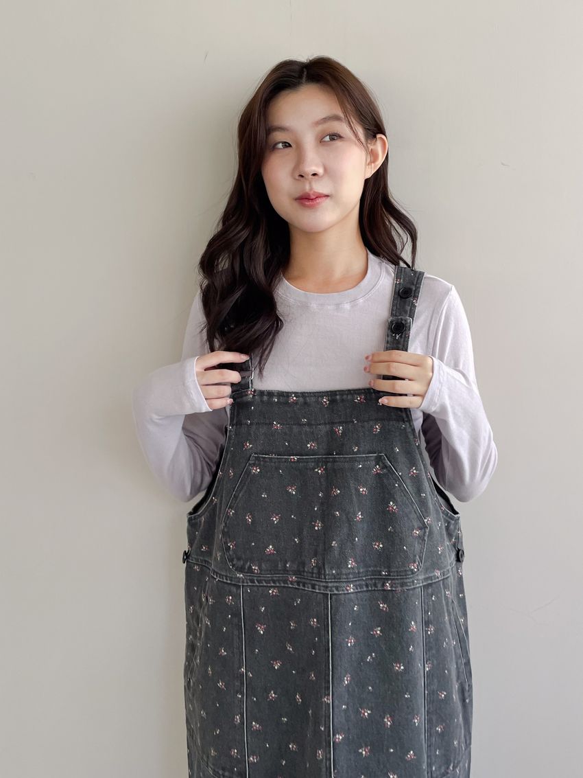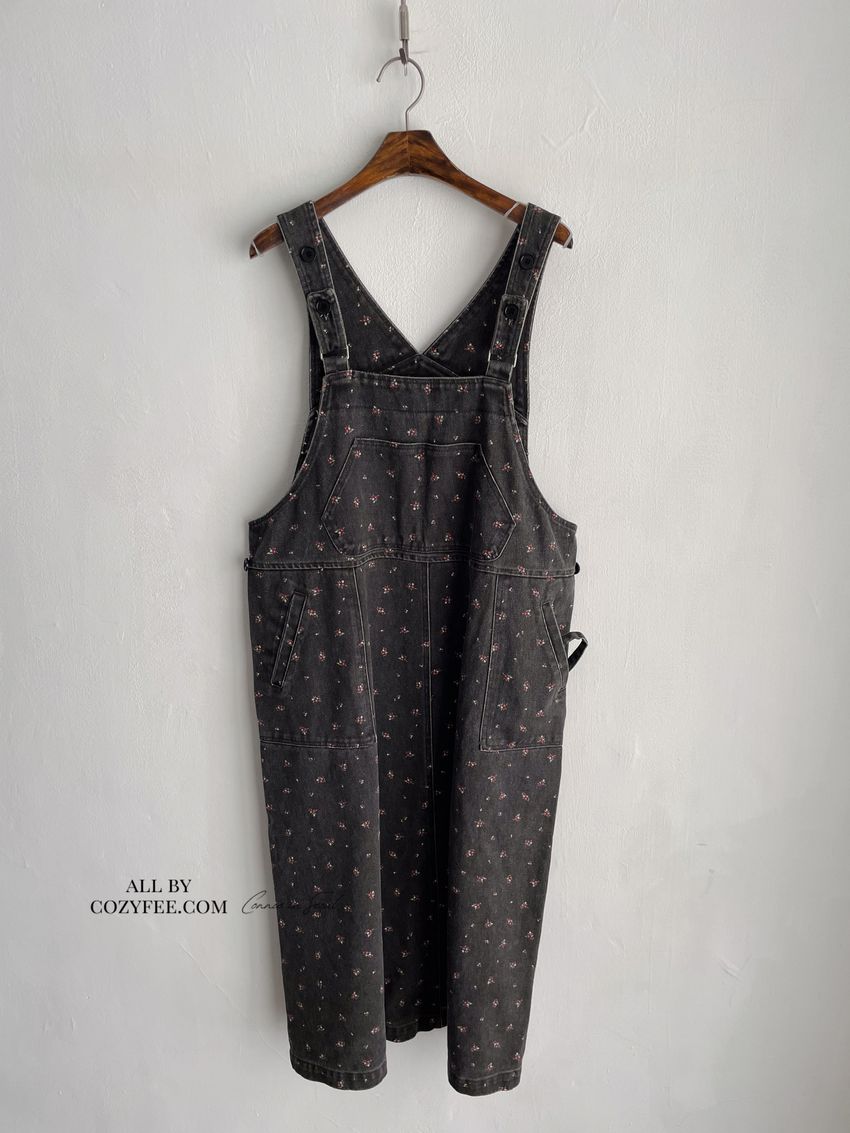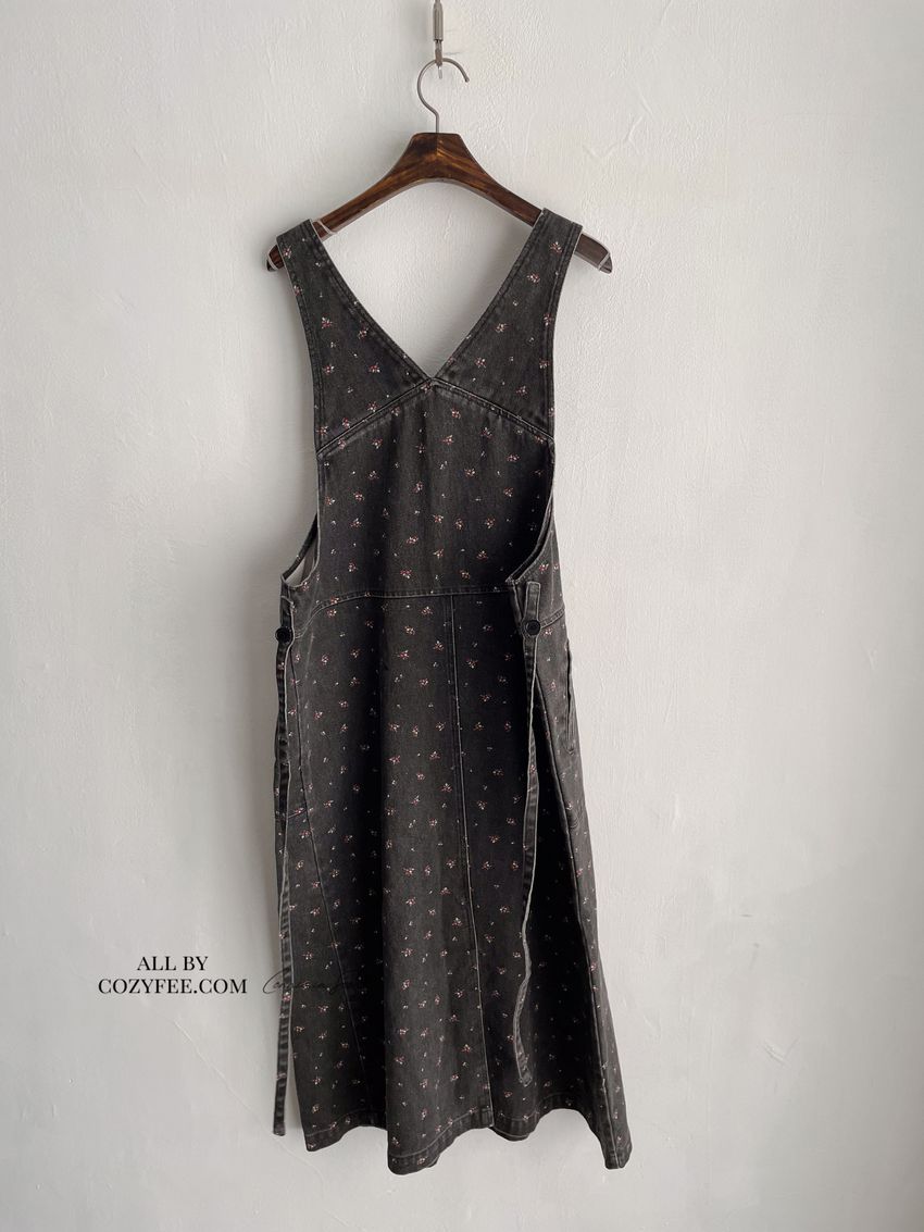 Connie推薦款!碎花單寧吊帶洋裝(直播款)