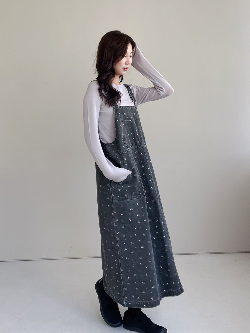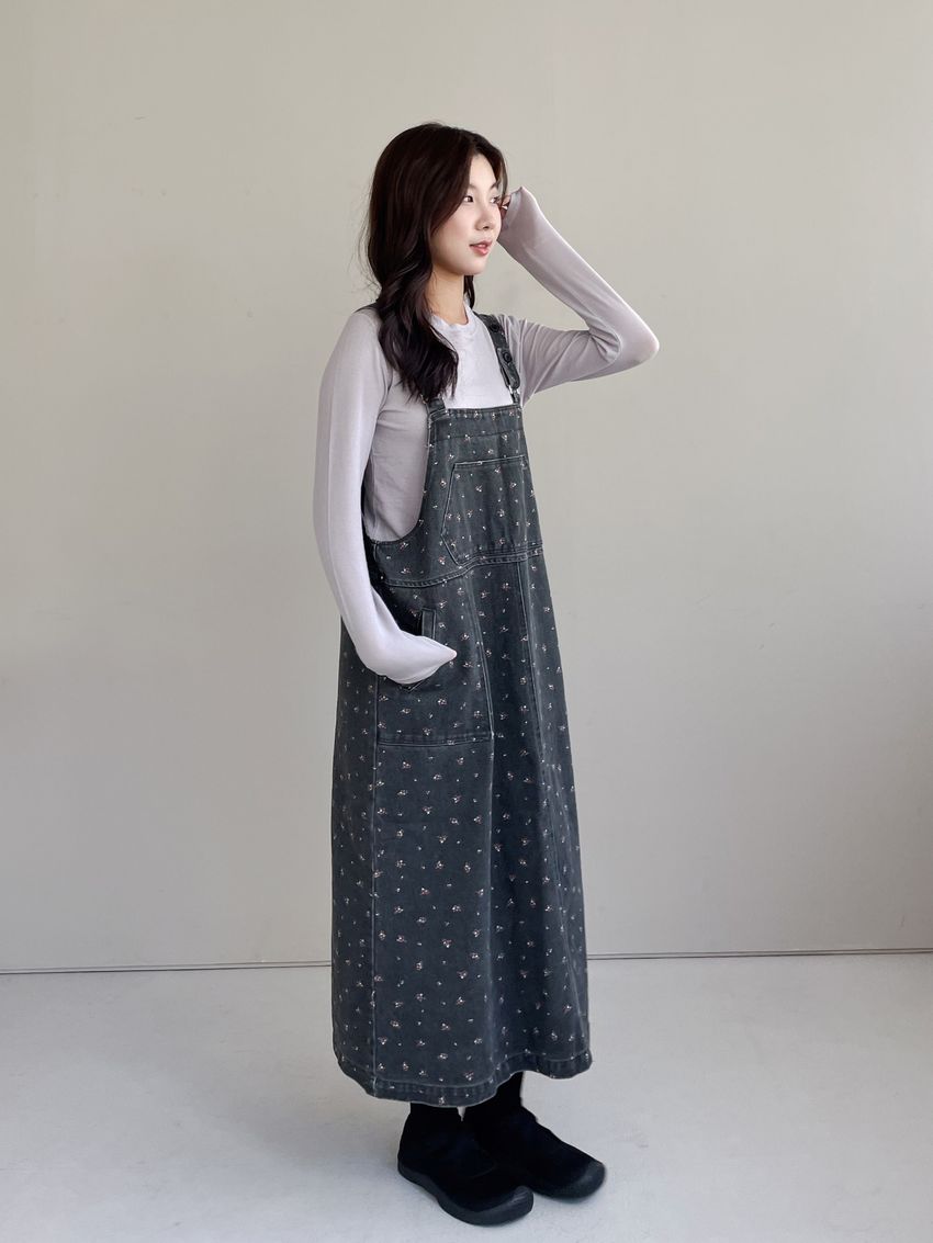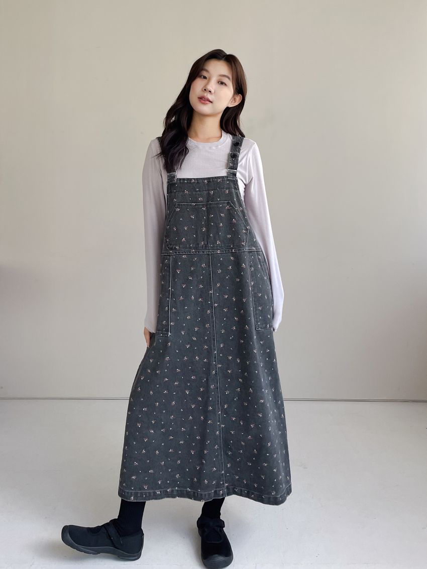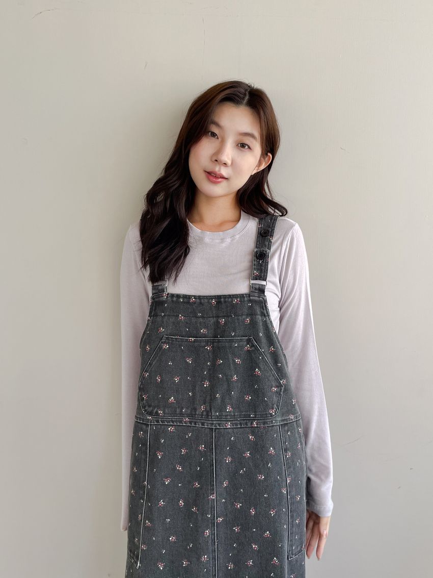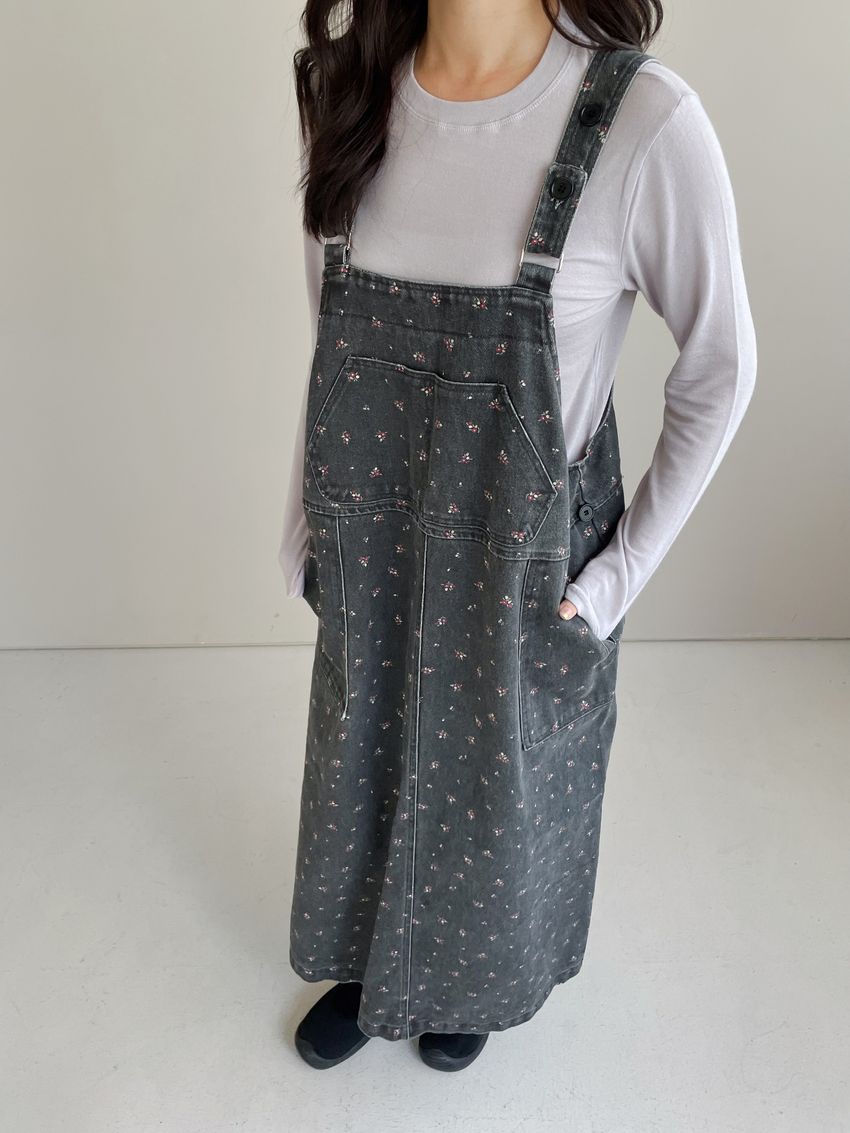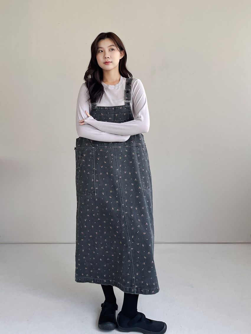 Connie推薦款!碎花單寧吊帶洋裝(直播款)