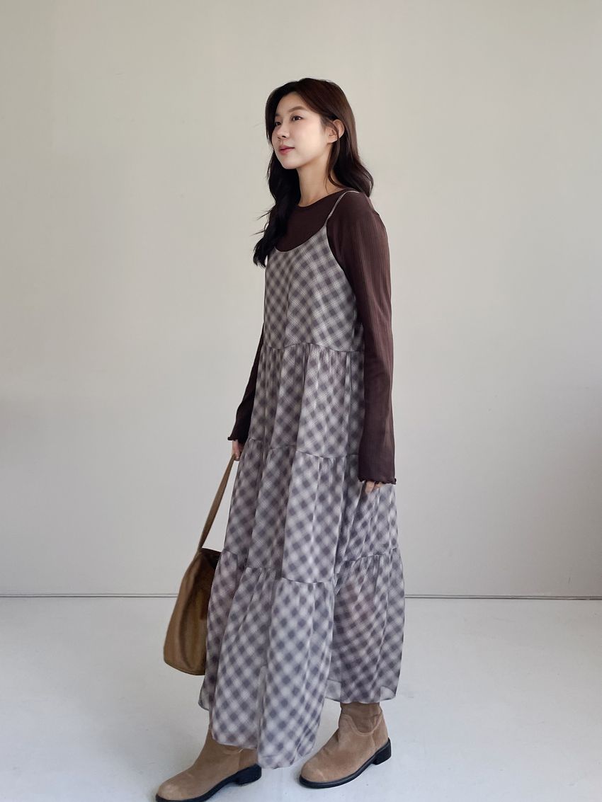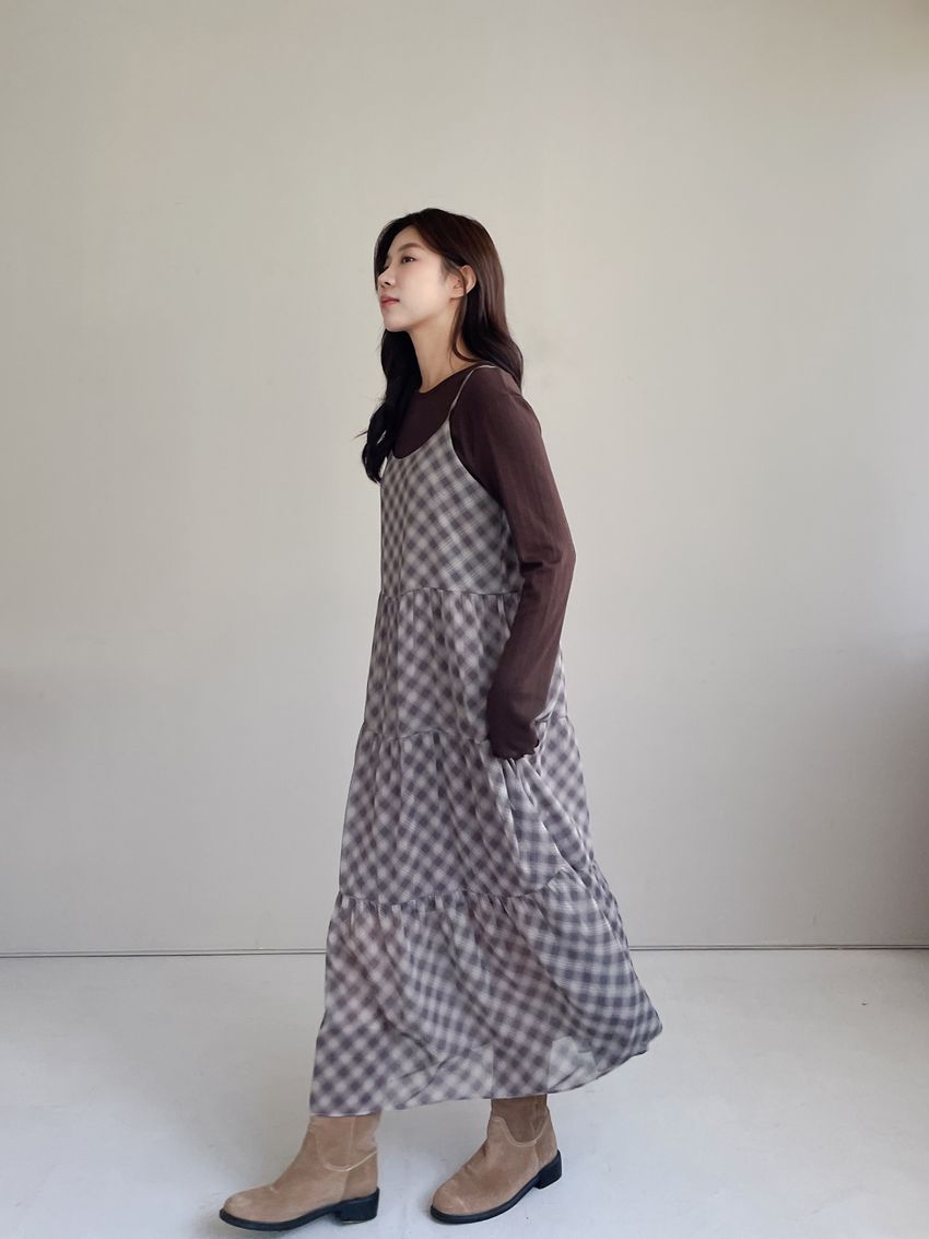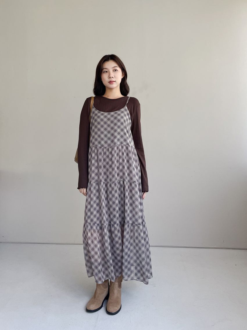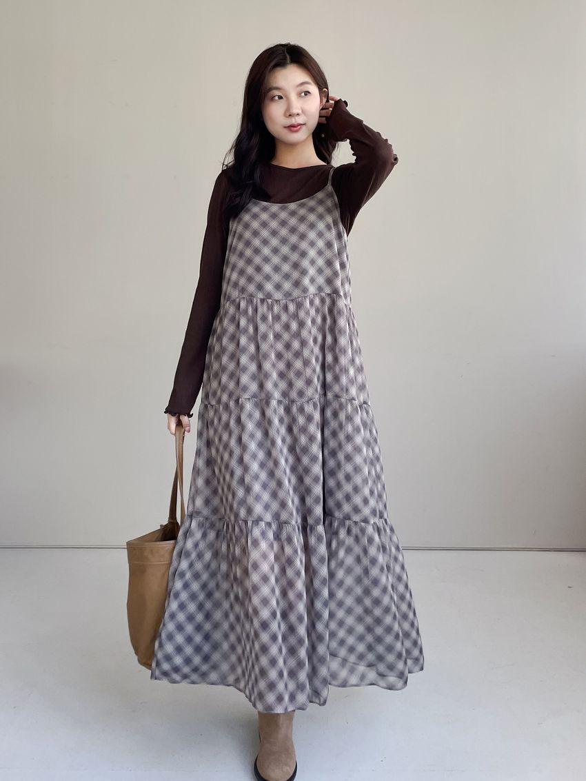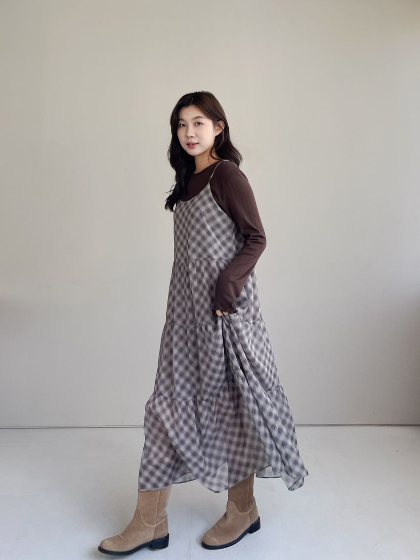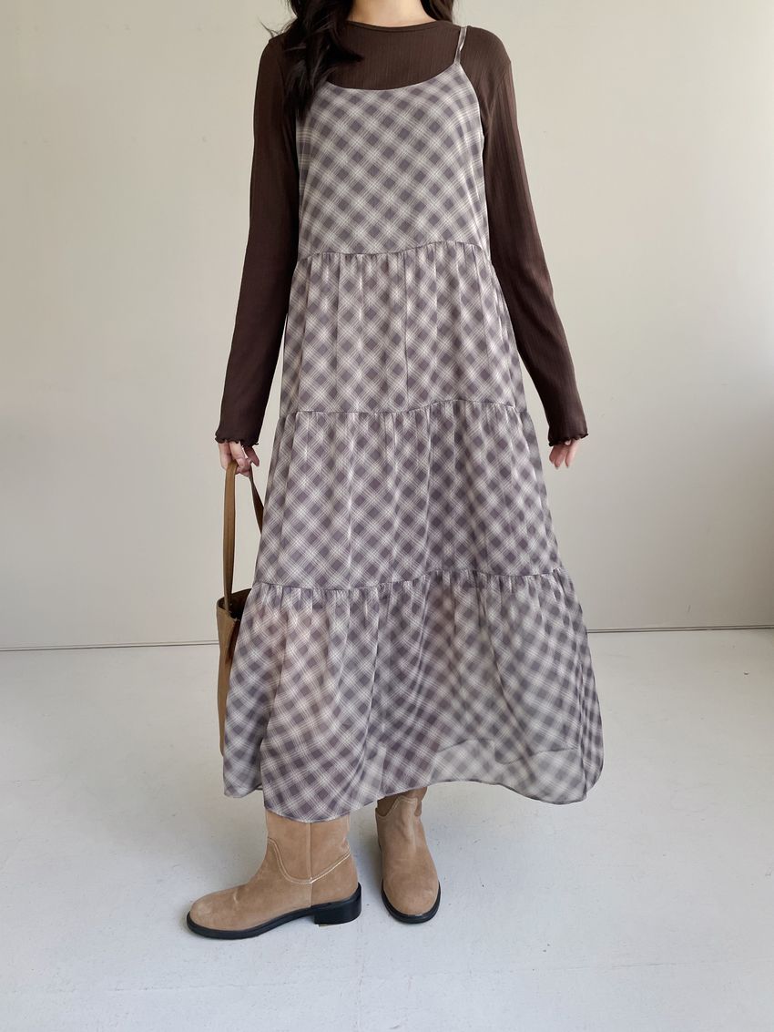 > Connie推薦款!蘇格蘭格紋雪紡蛋糕洋裝(直播款)