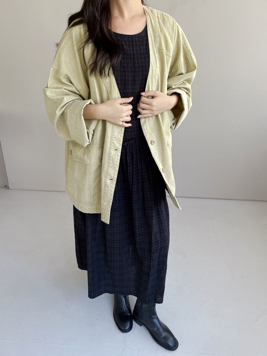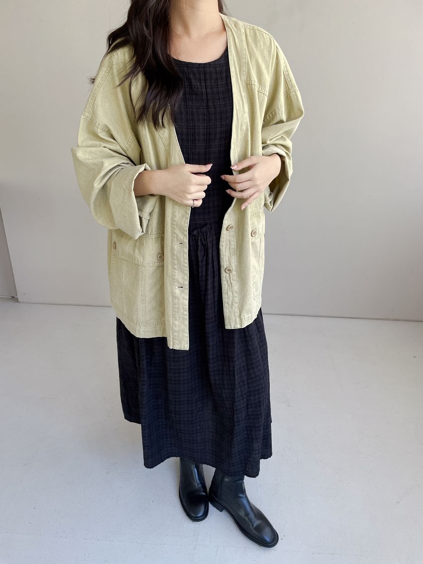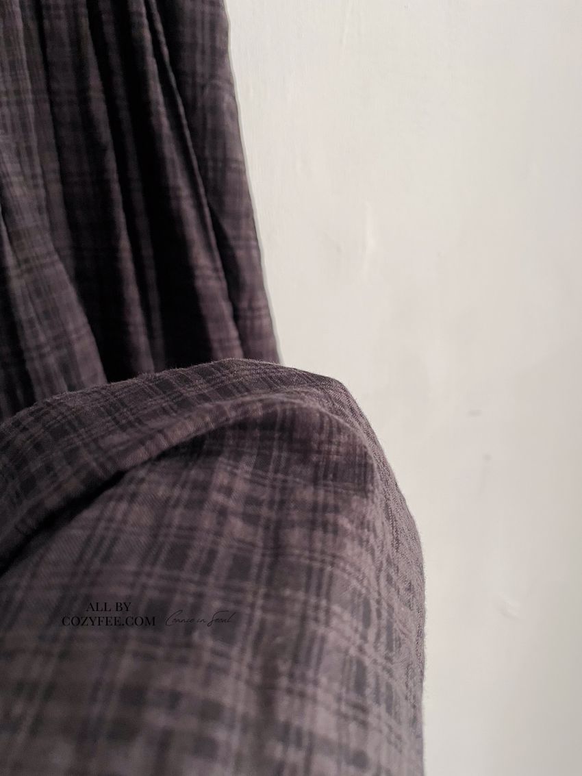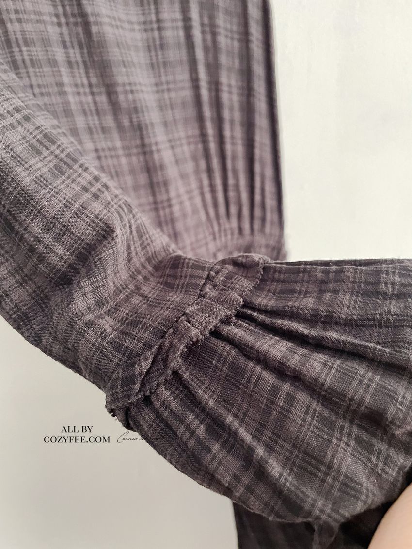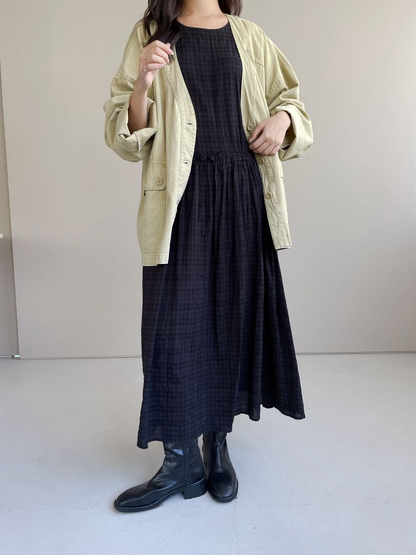 > 文青小格長版背心洋裝