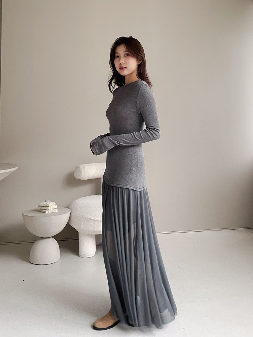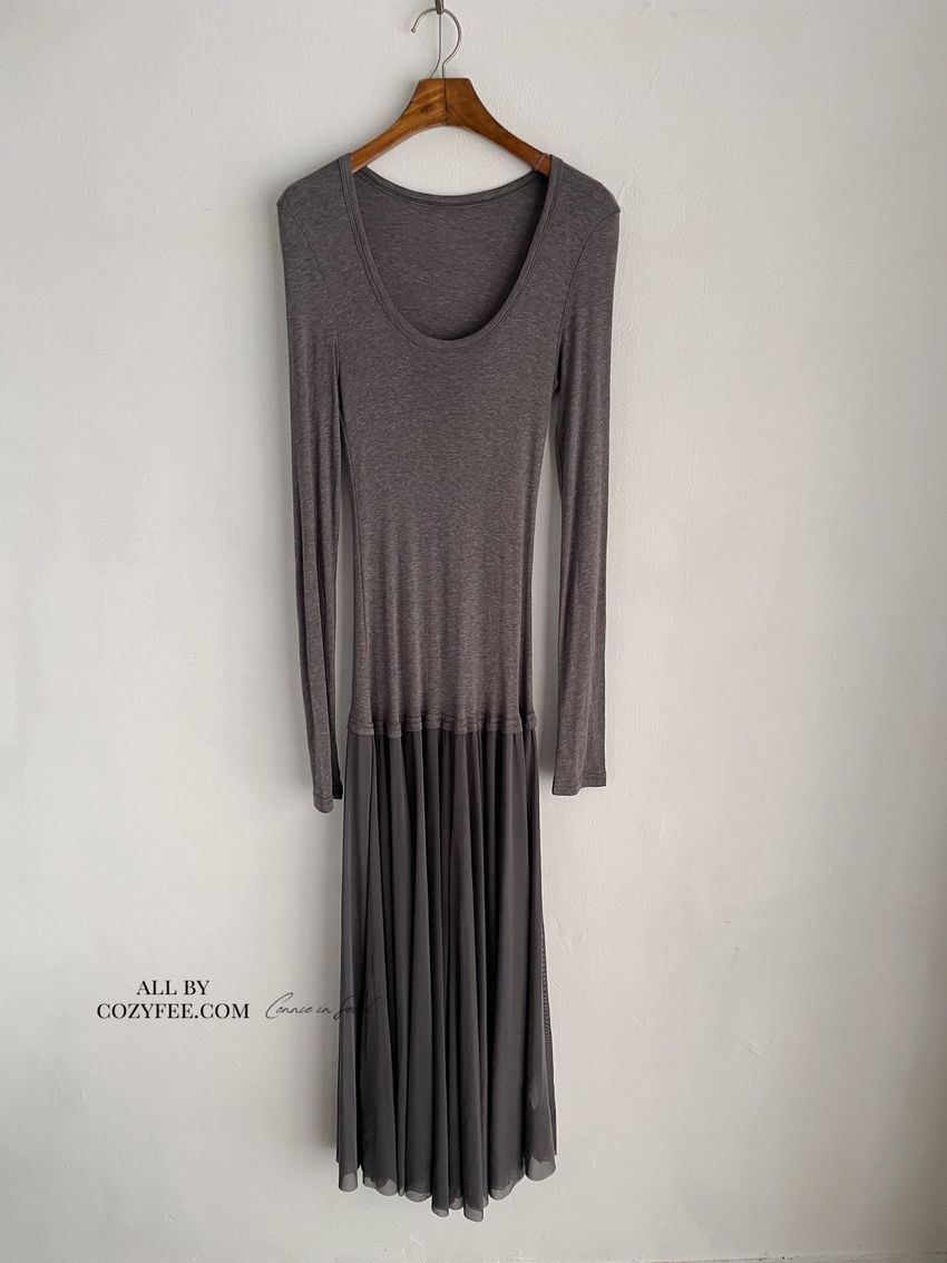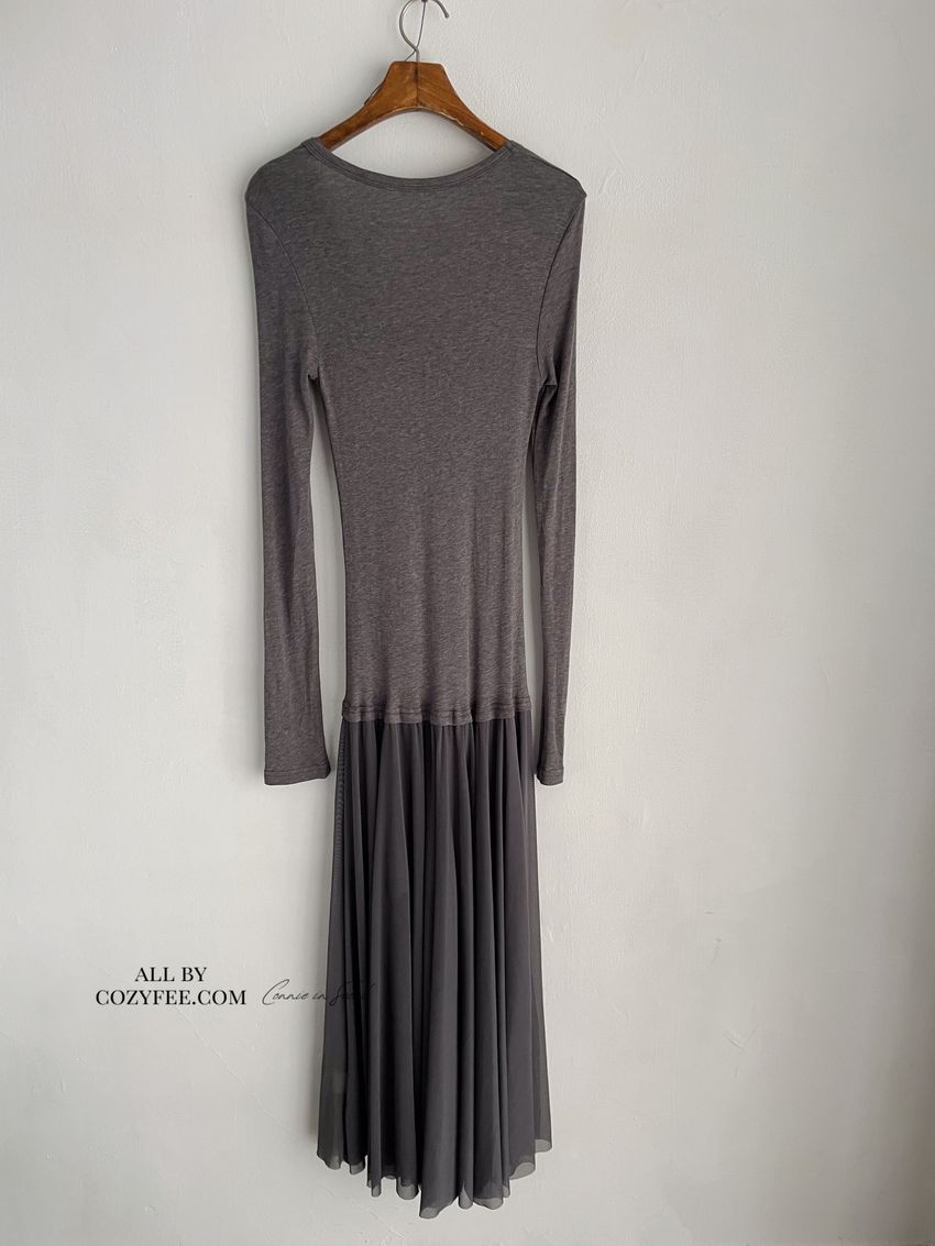 > 時髦貼身下接紗洋裝(直播款)