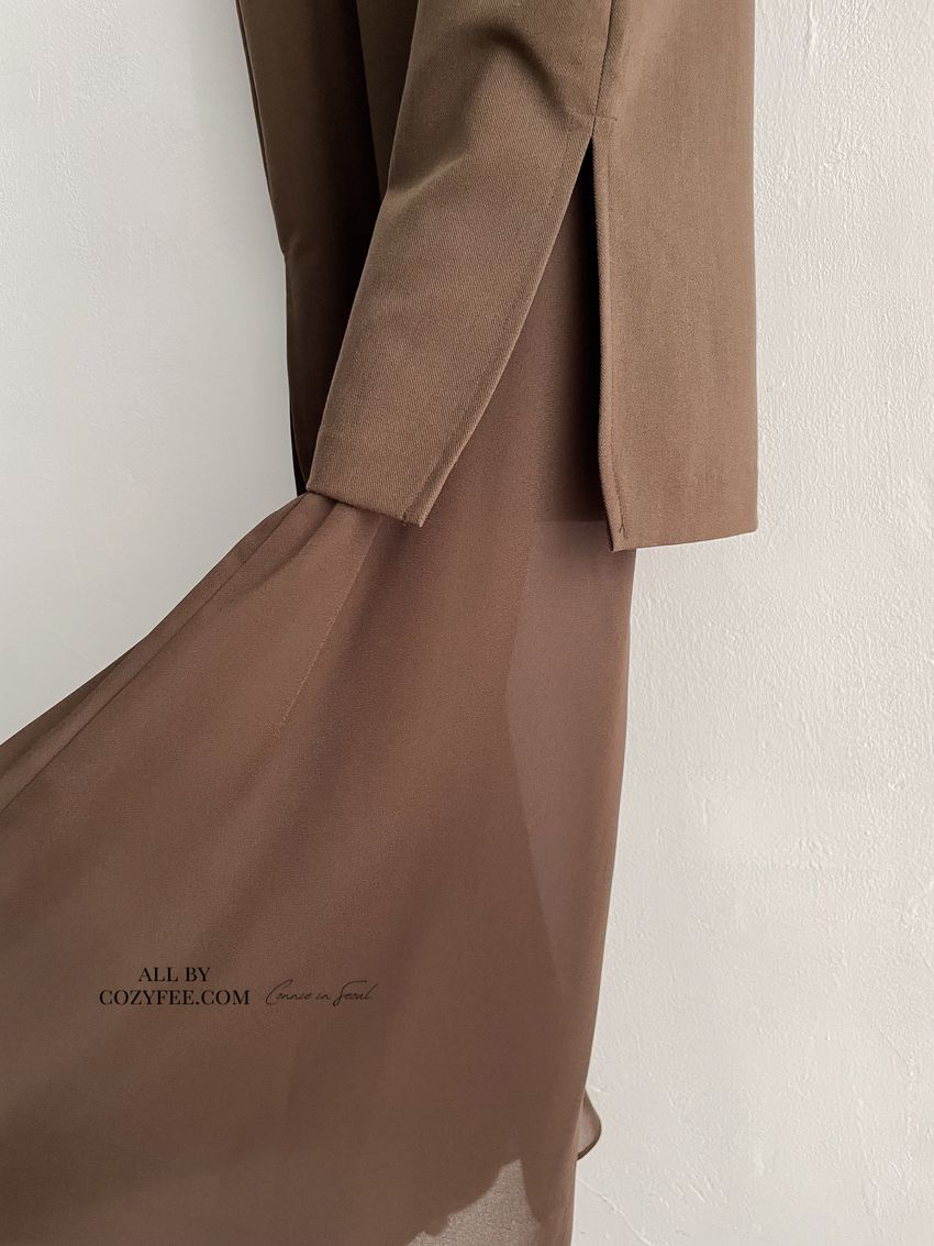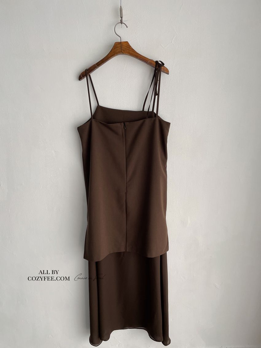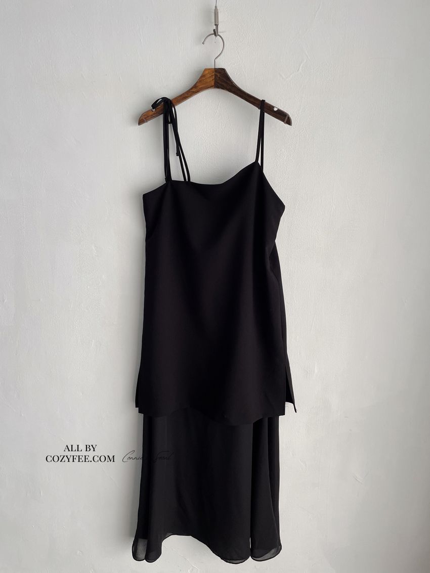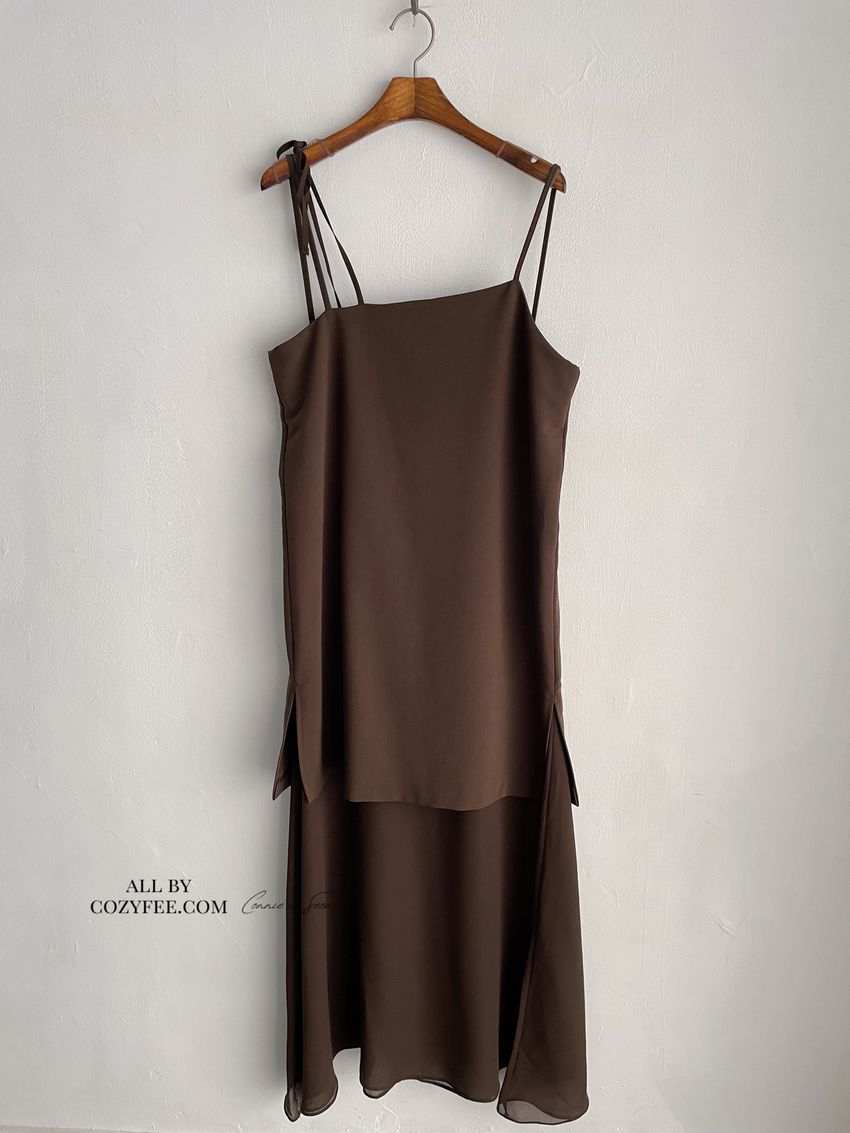 > 肩綁帶下拚透紗雪紡洋裝(直播款)