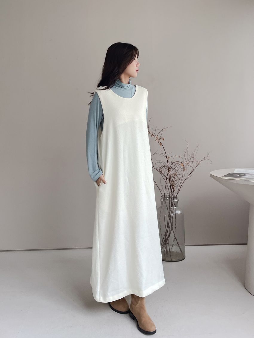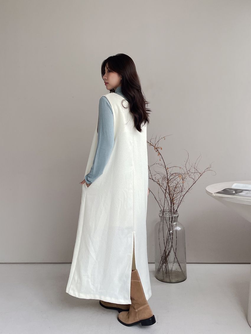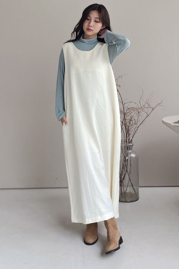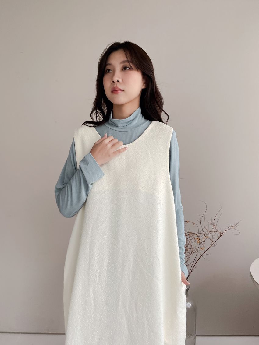 > 顆粒毛呢背心洋裝(附綁帶)