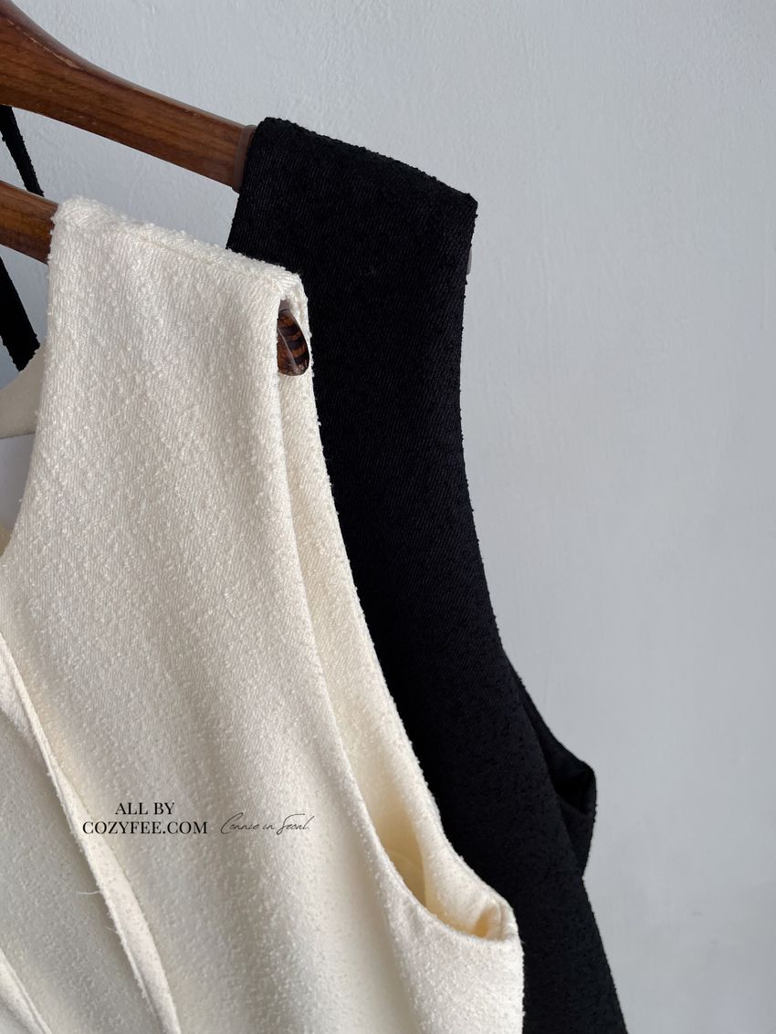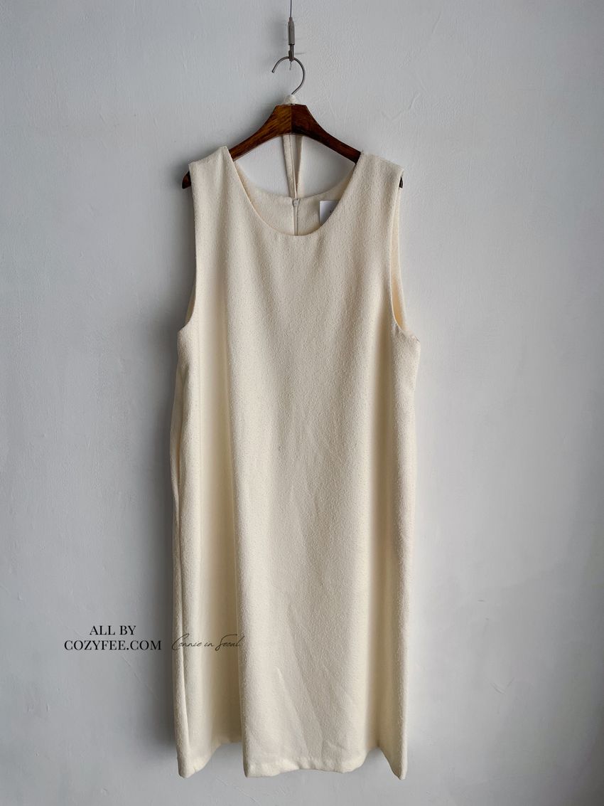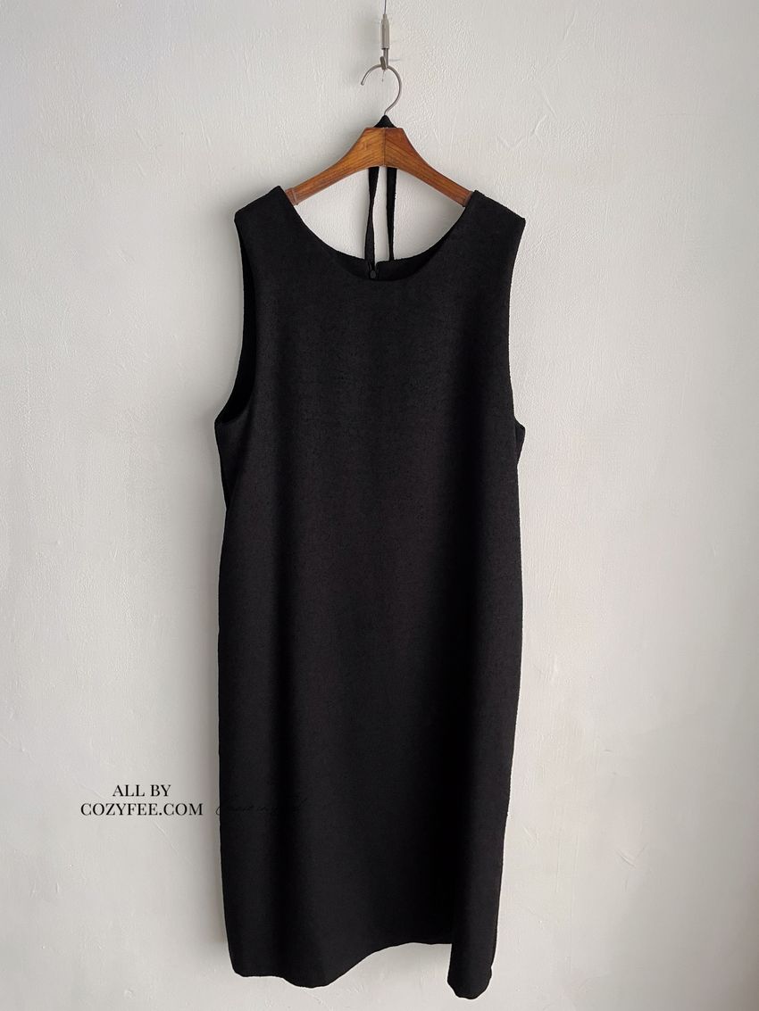 > 顆粒毛呢背心洋裝(附綁帶)(直播款)
