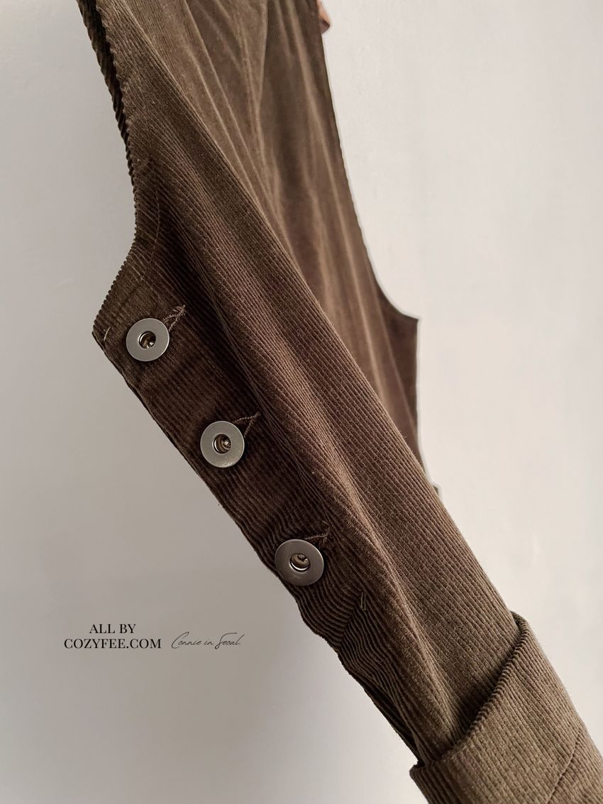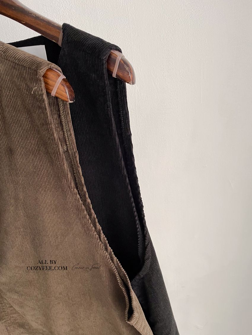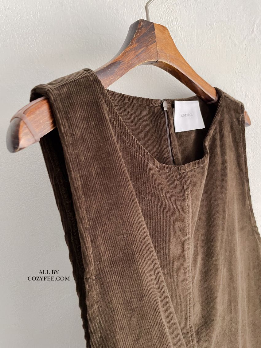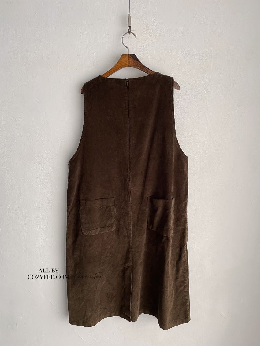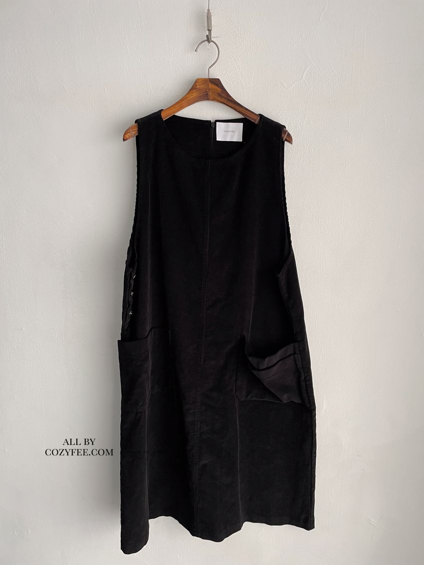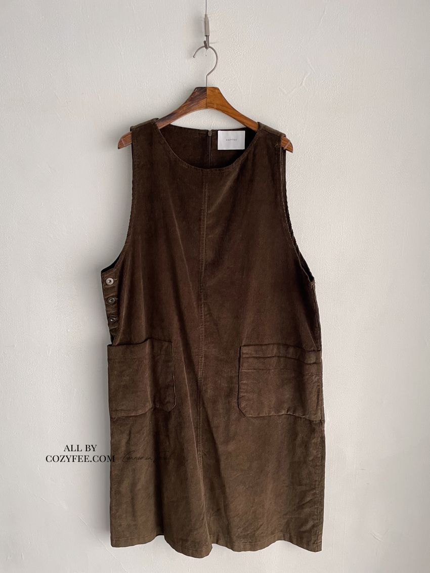 > 燈芯絨側釦口袋背心洋裝(直播款)