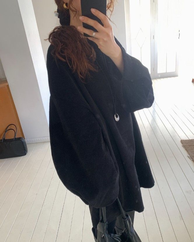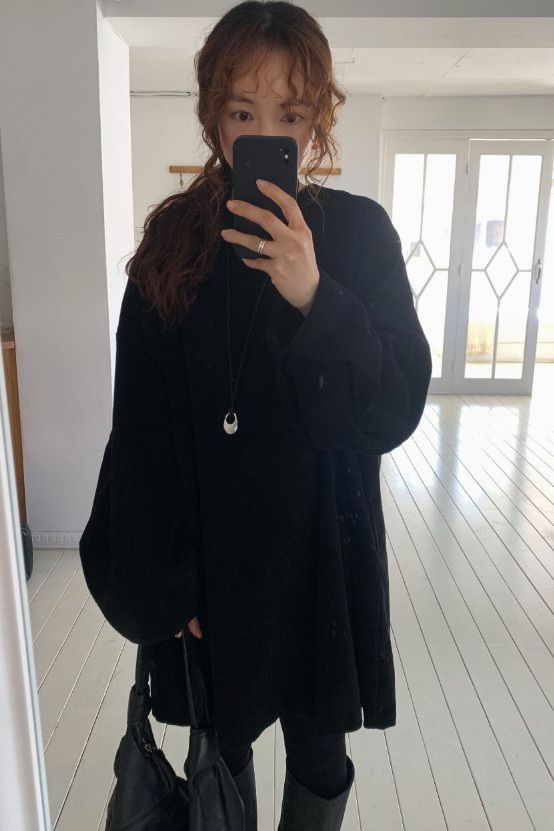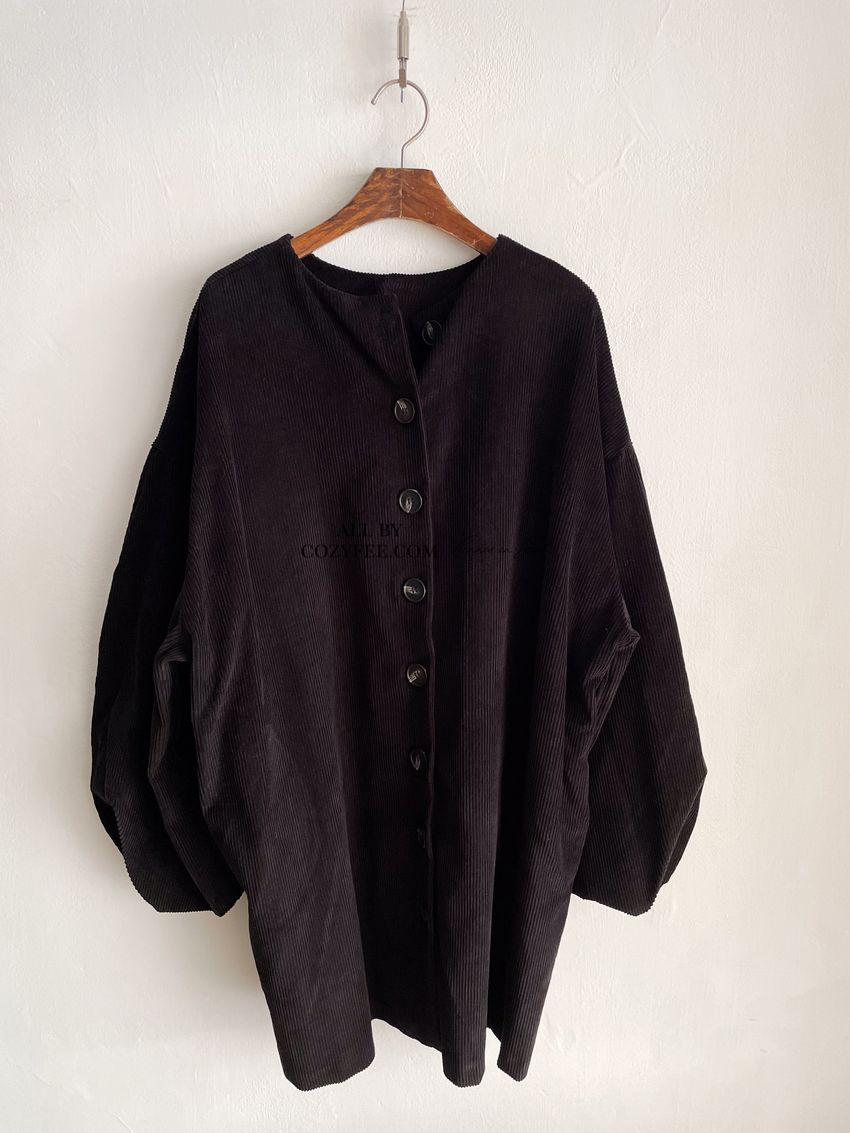 > 南瓜澎袖燈心絨排釦洋裝(特)
