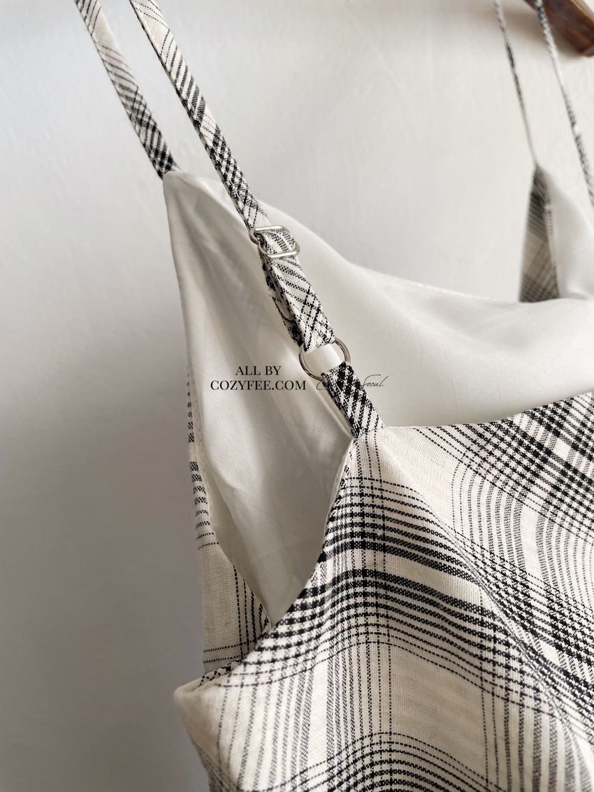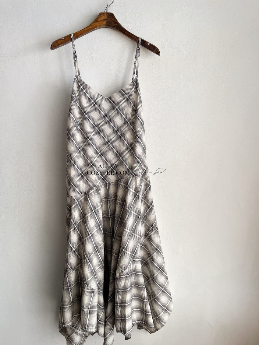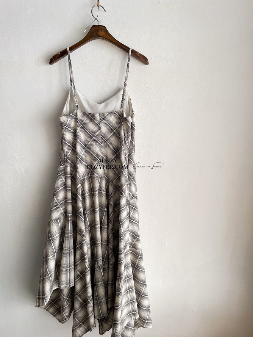 > 格紋不規則裙襬細肩洋裝(特)