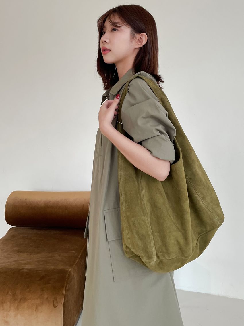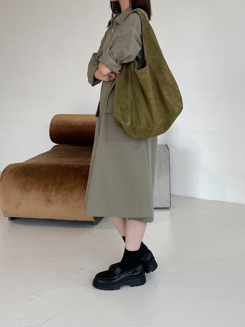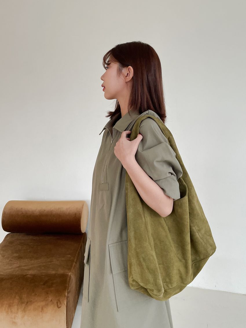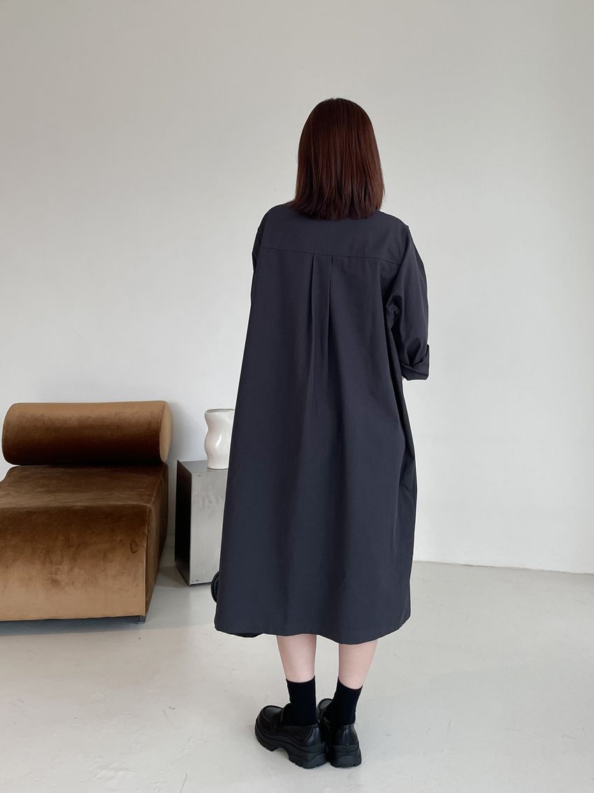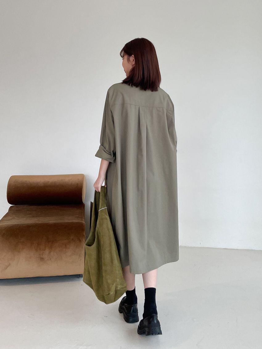 > 拉鍊翻領口袋洋裝