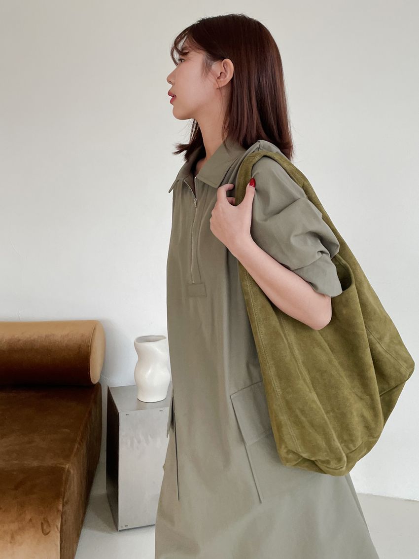 拉鍊翻領口袋洋裝