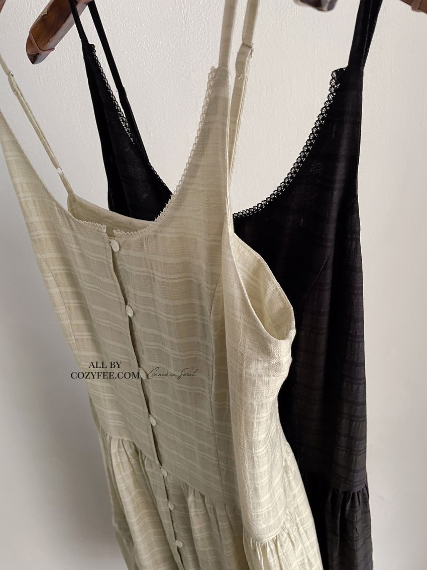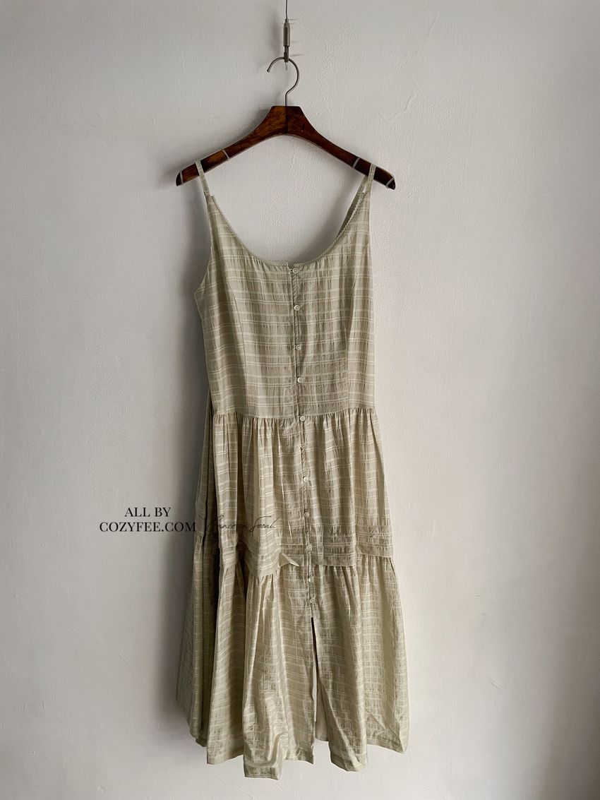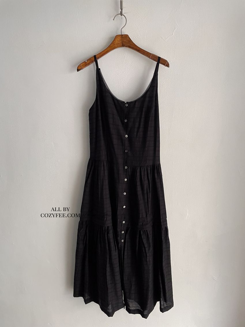 > 細肩勾釦蛋糕洋裝