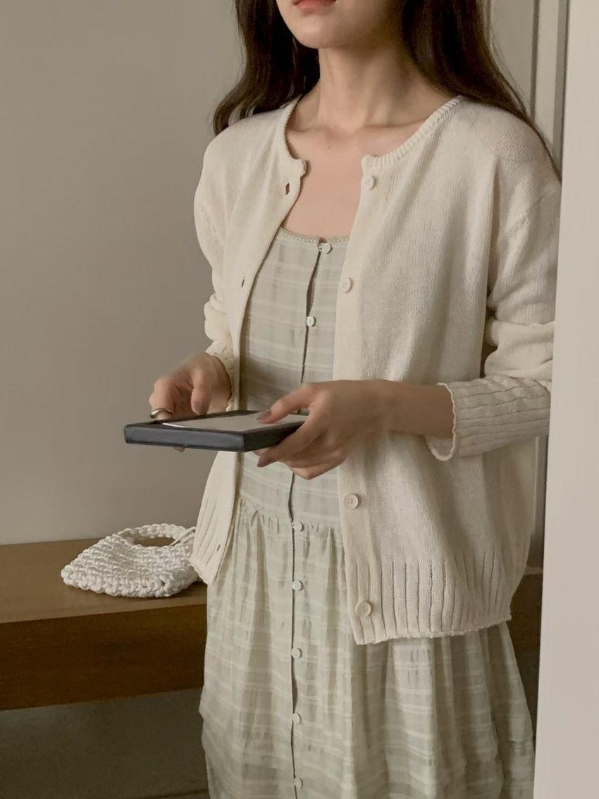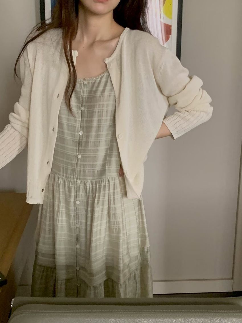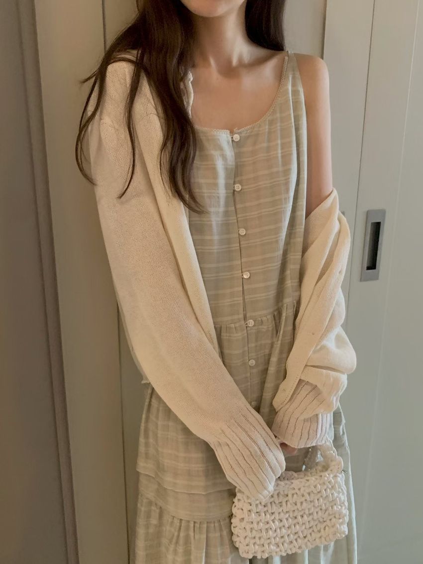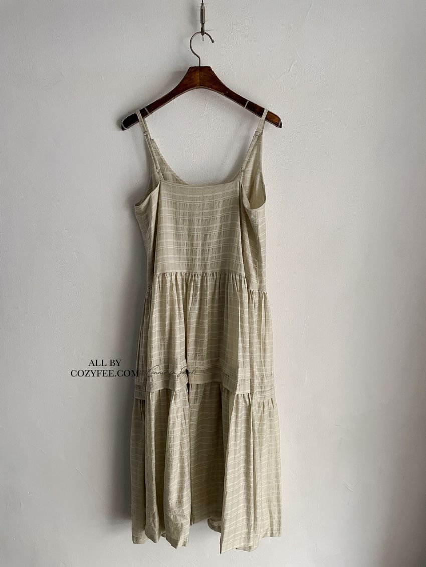 > 細肩勾釦蛋糕洋裝