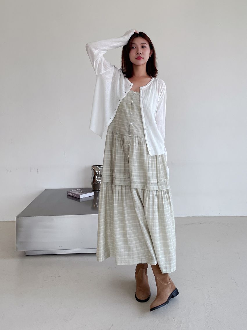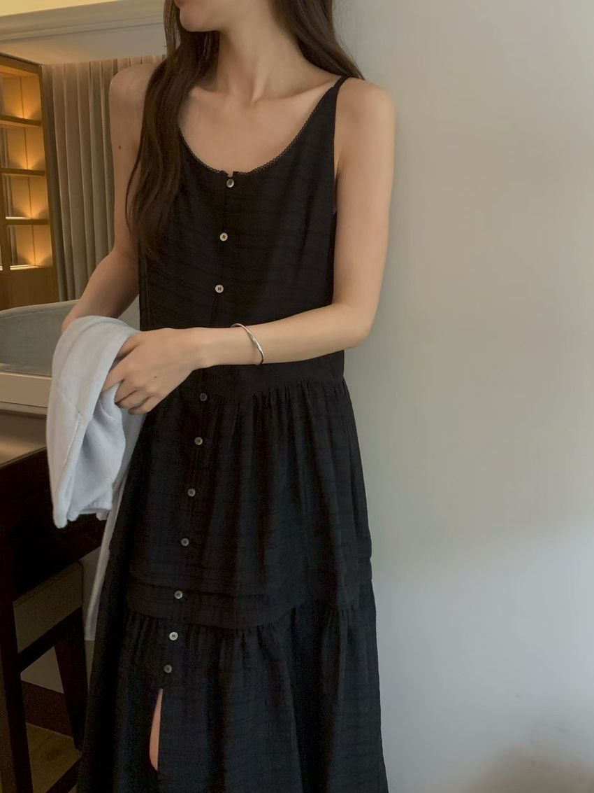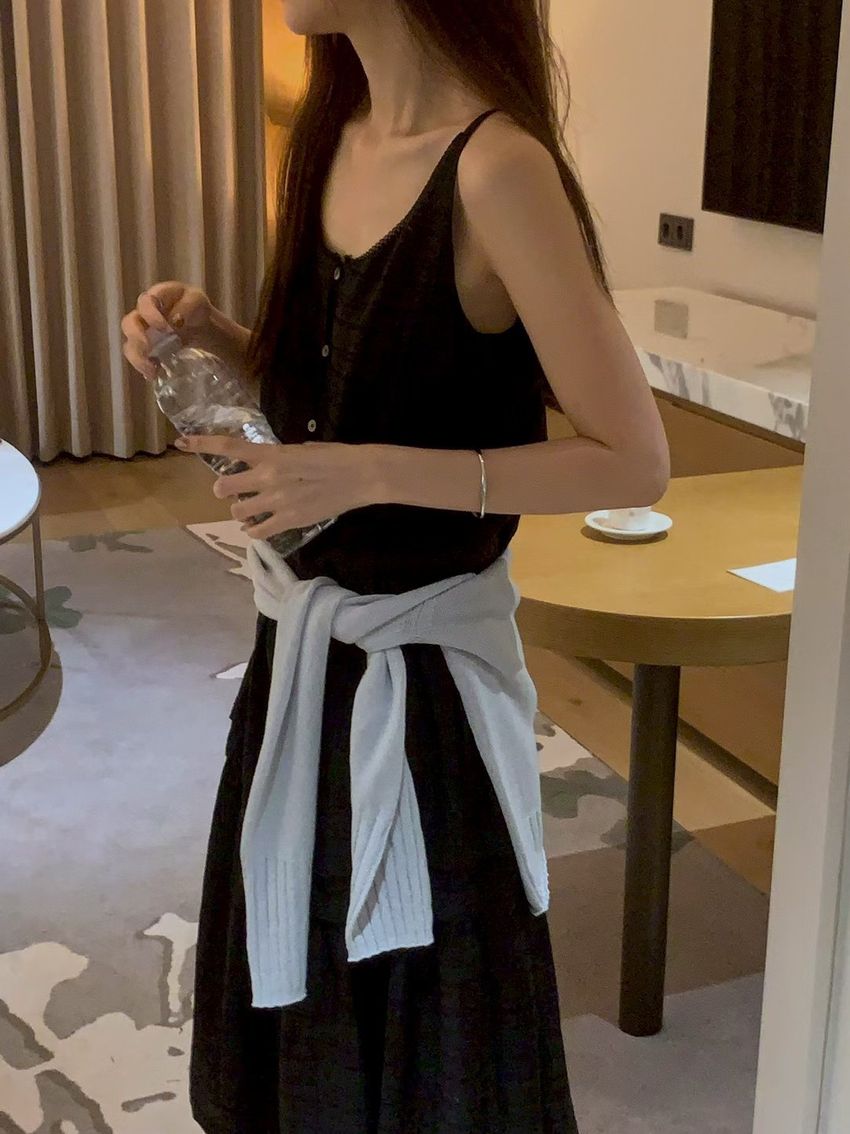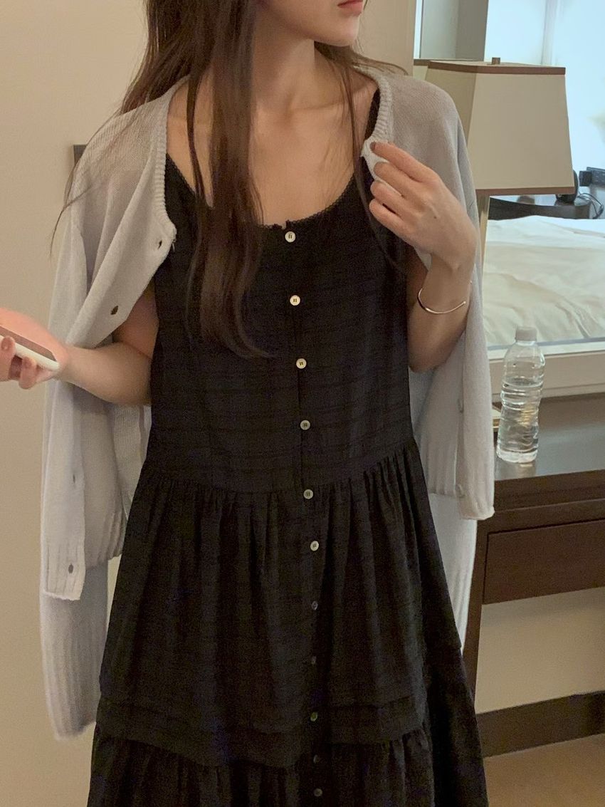 細肩勾釦蛋糕洋裝