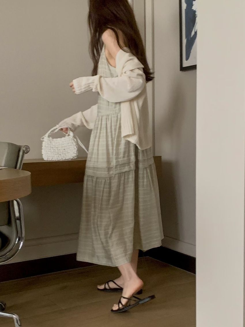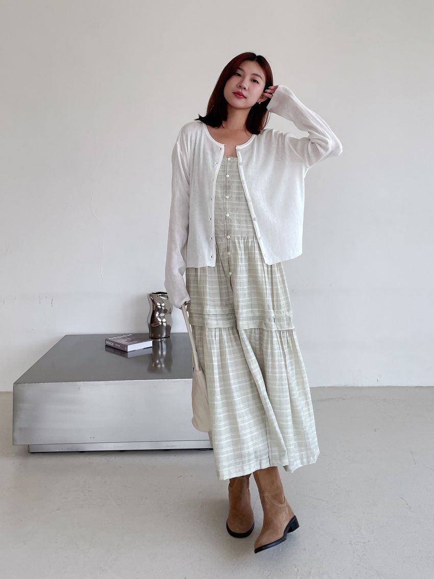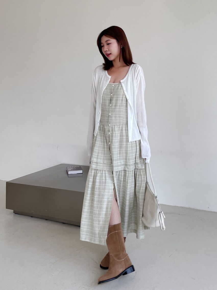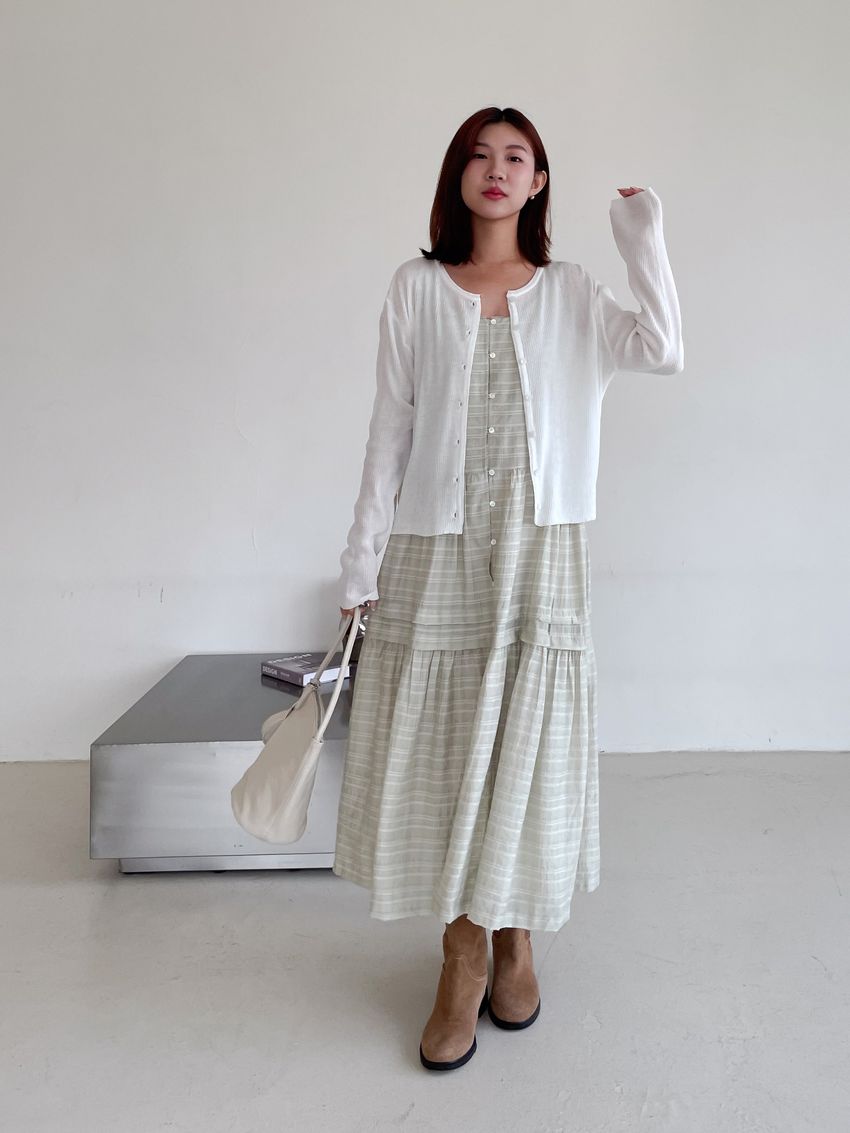 細肩勾釦蛋糕洋裝