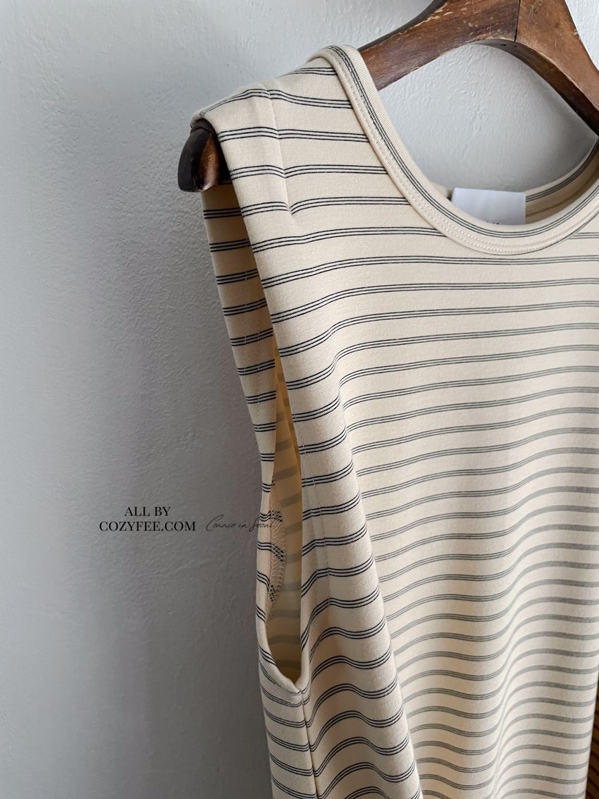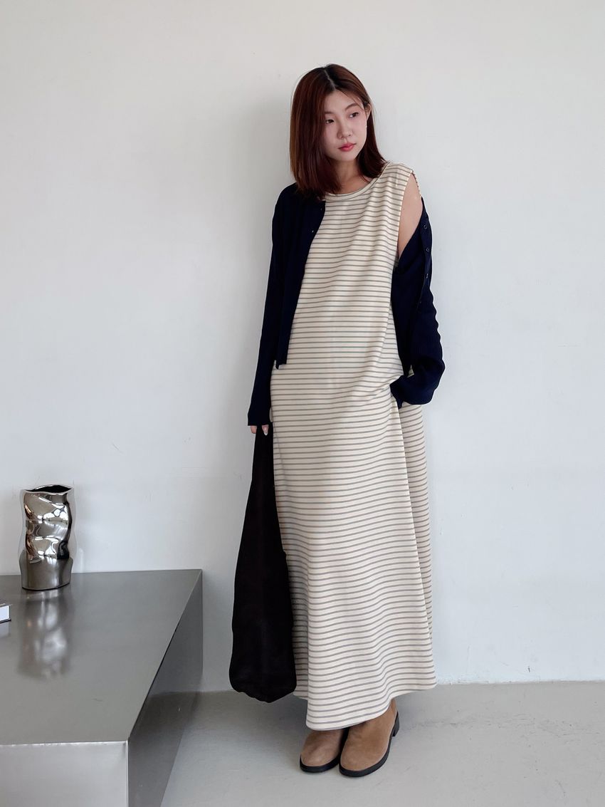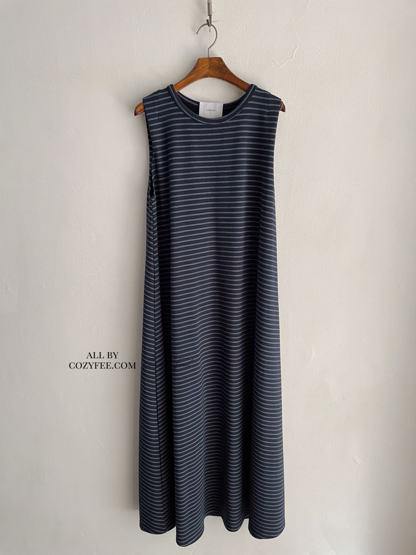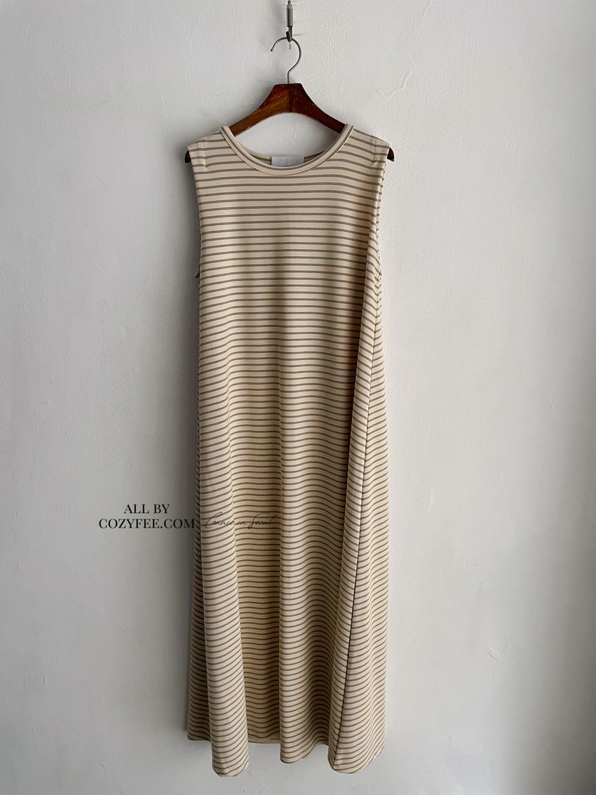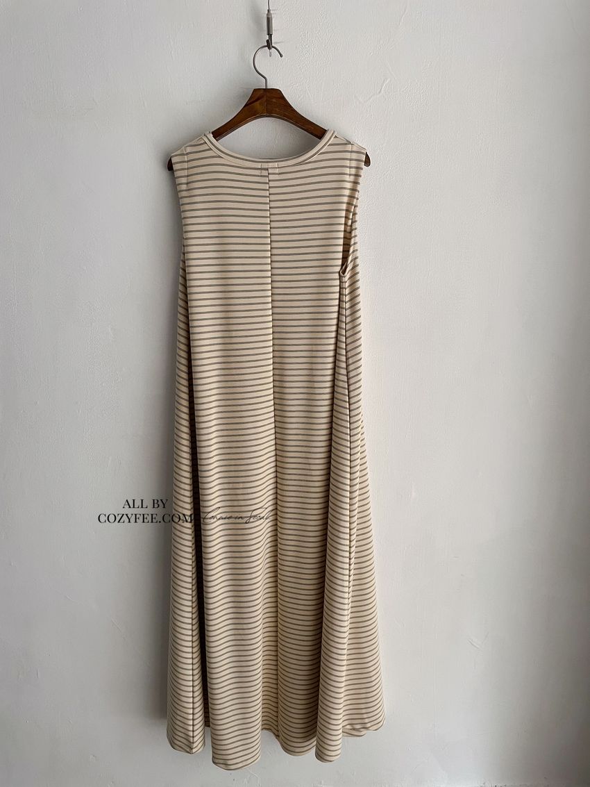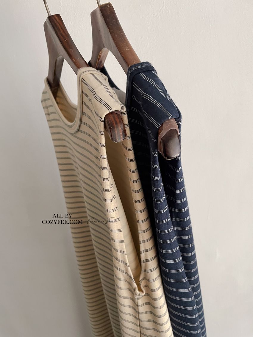 > Connie推薦款!三線橫條棉質背心長洋裝(直播款)