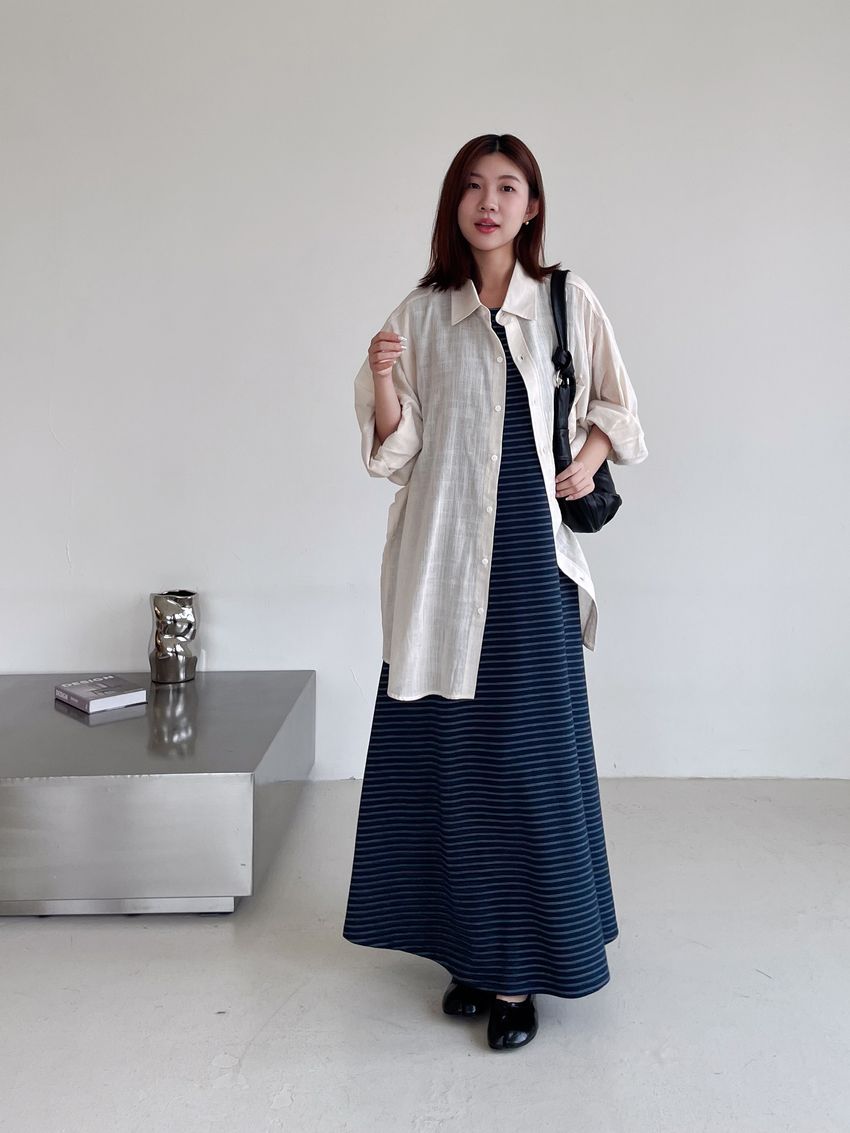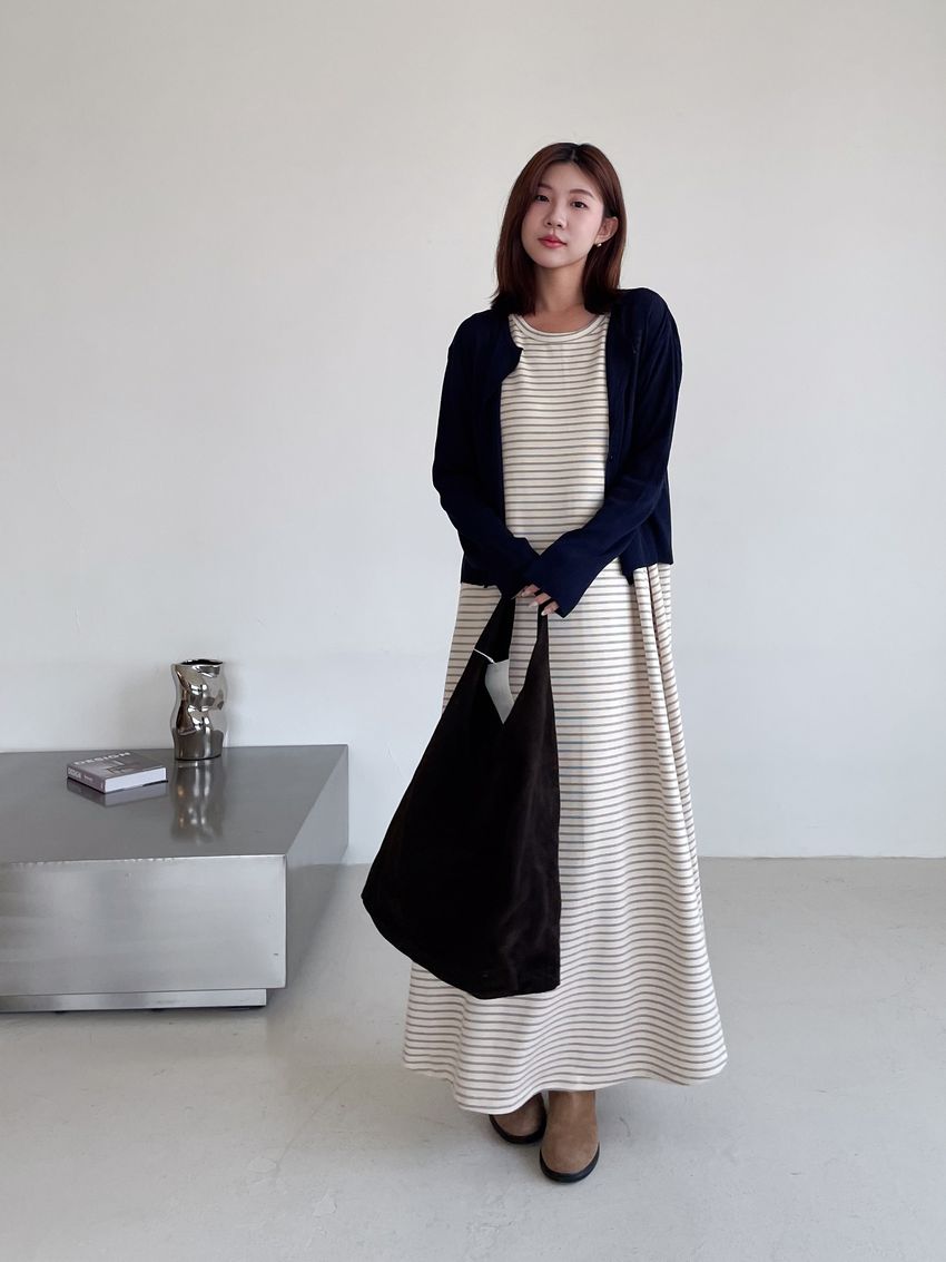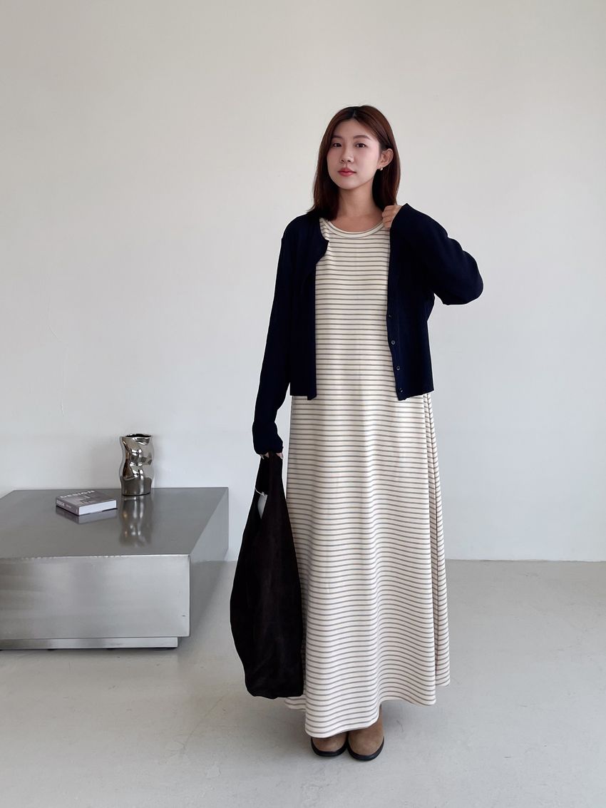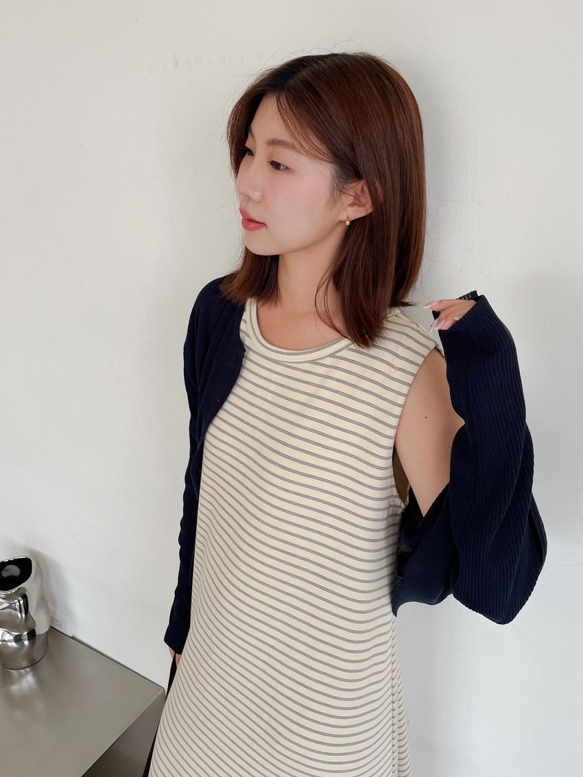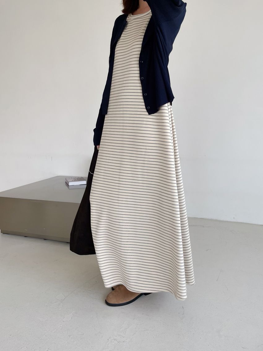 > Connie推薦款!三線橫條棉質背心長洋裝(直播款)