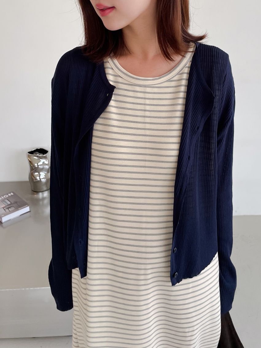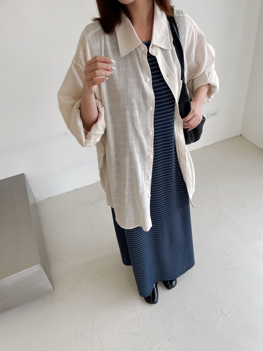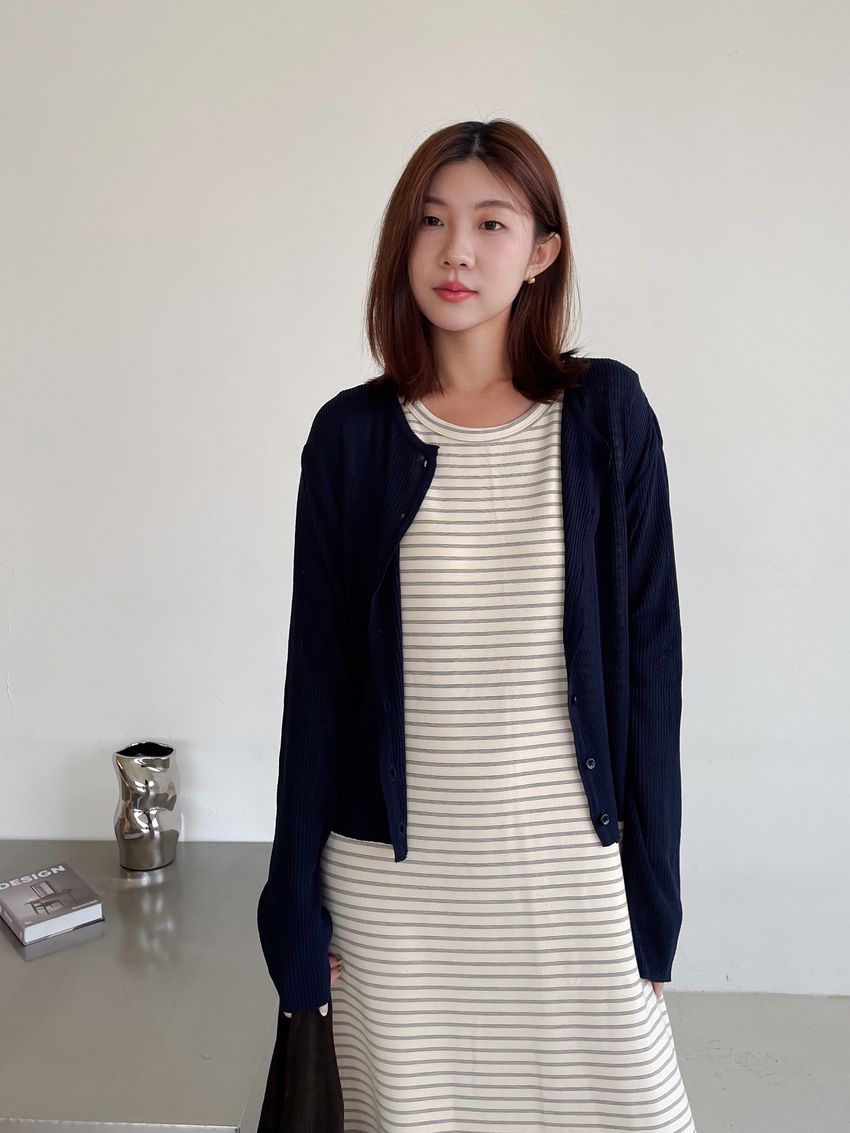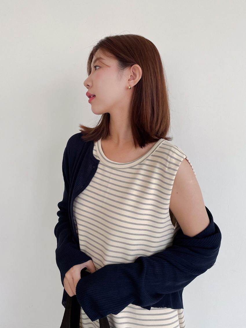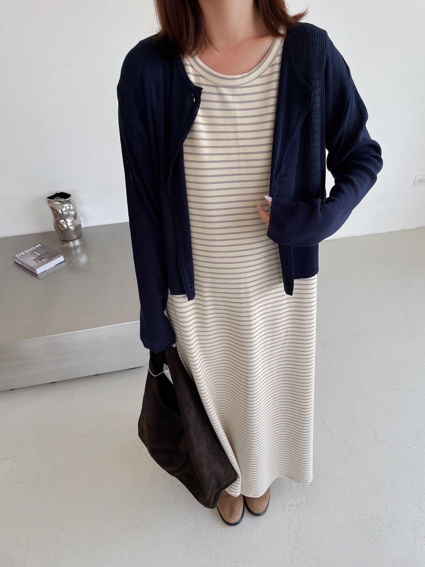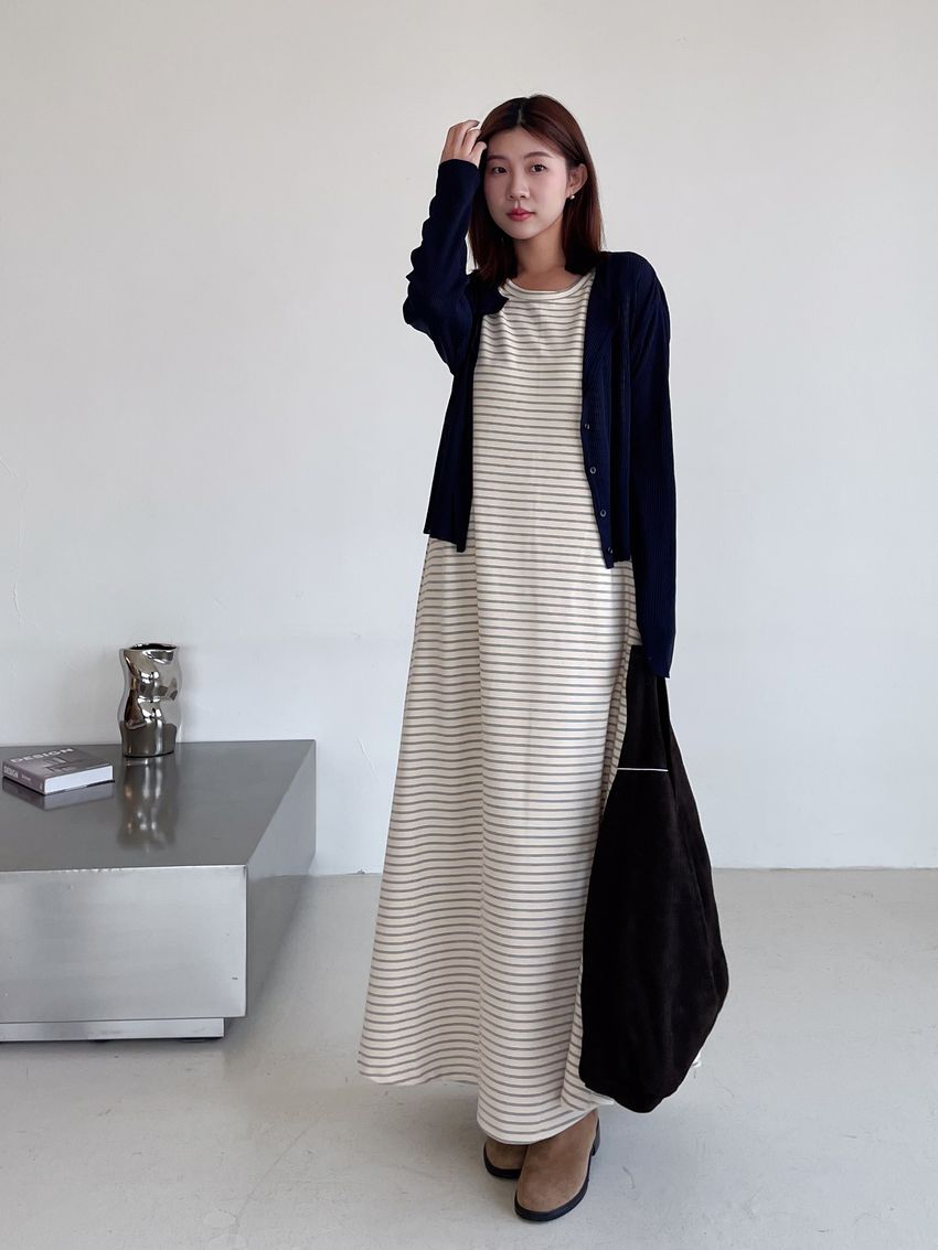 > Connie推薦款!三線橫條棉質背心長洋裝(直播款)