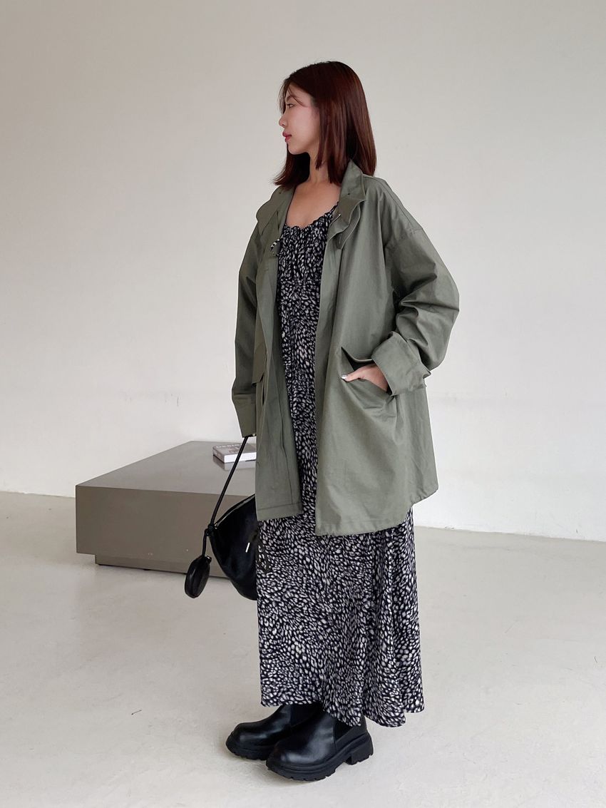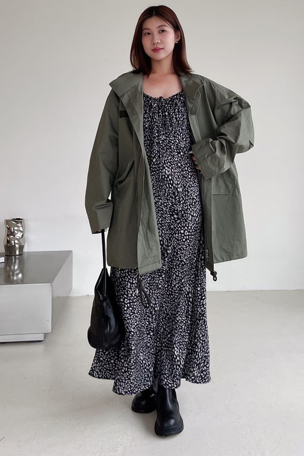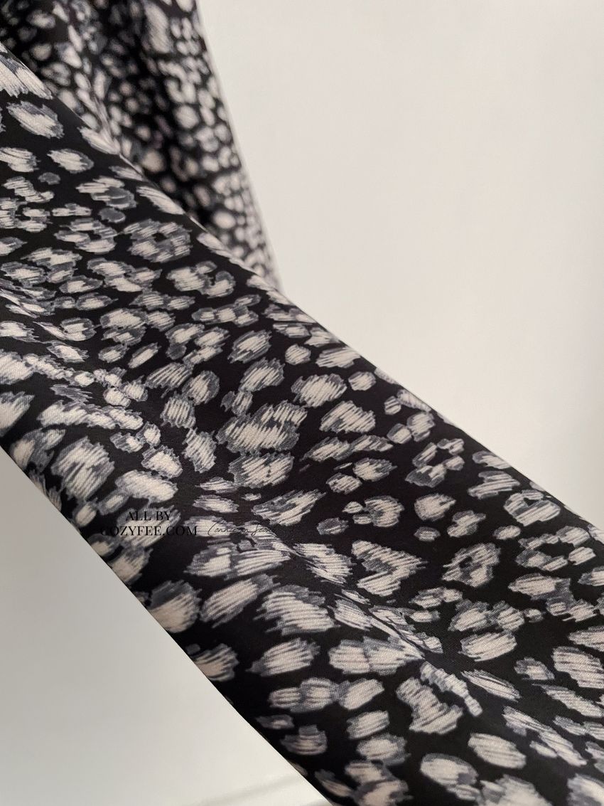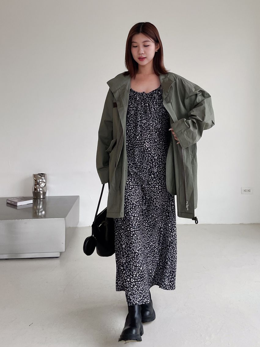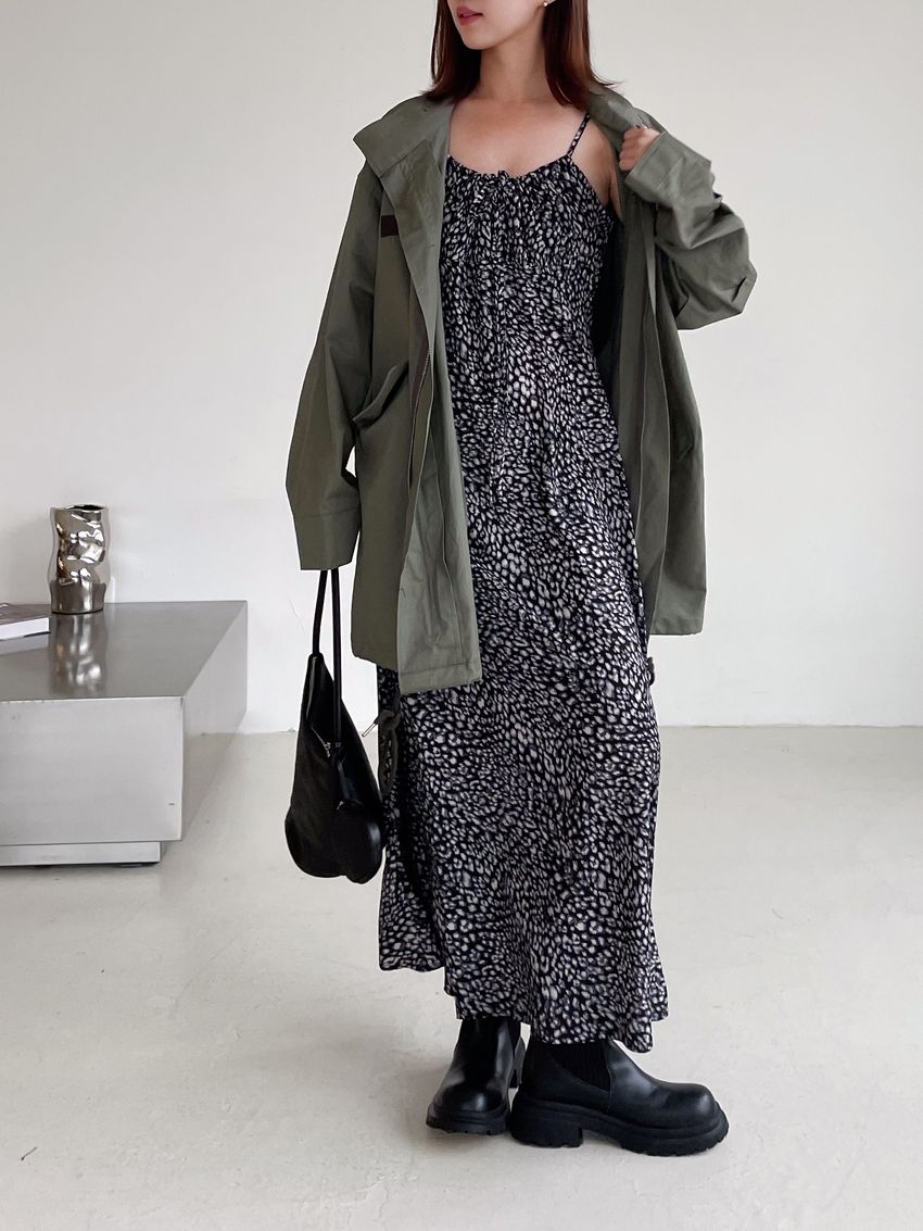 > 領口綁帶豹紋細肩雪紡洋裝(直播款)