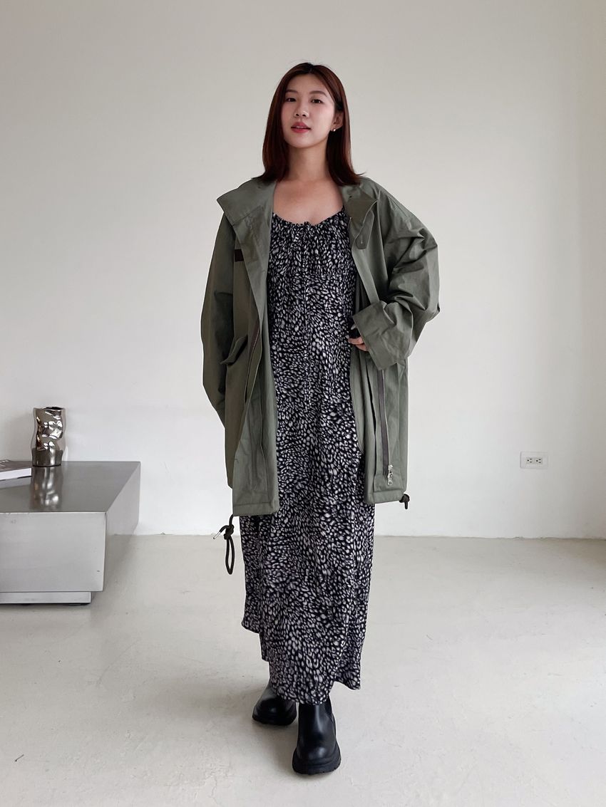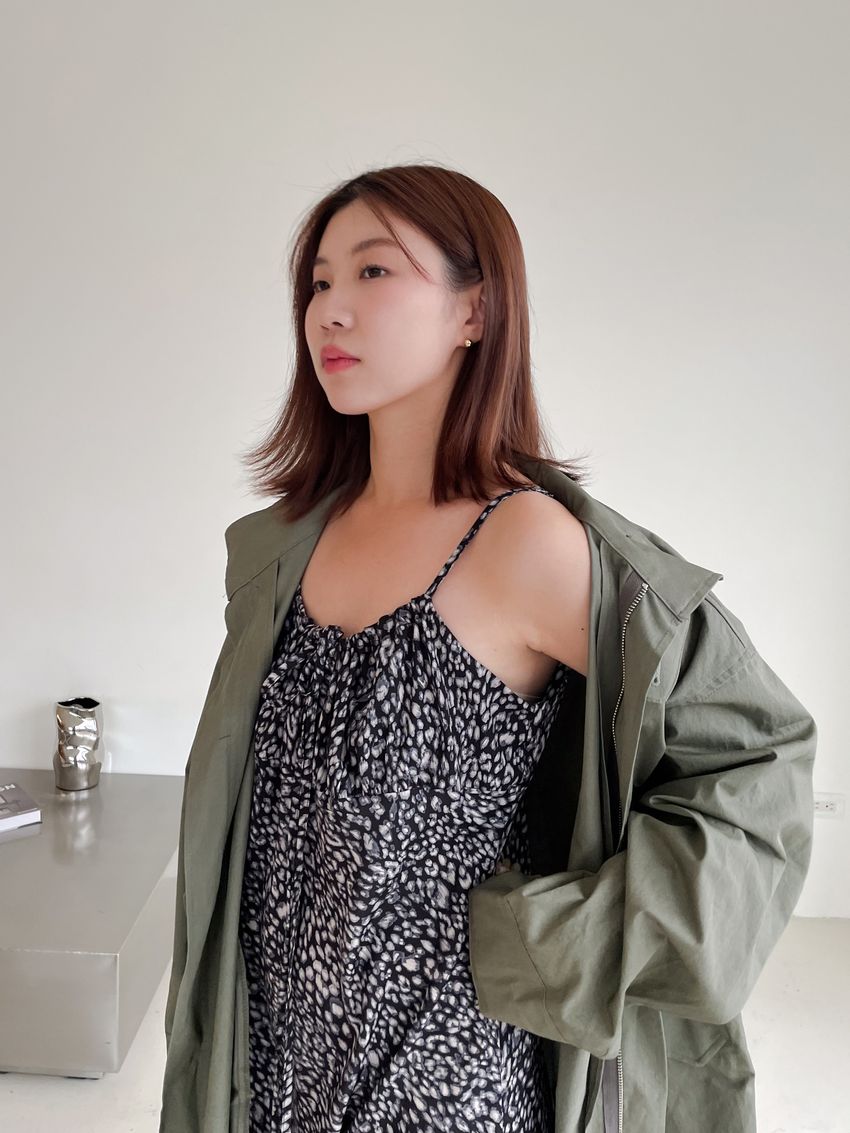領口綁帶豹紋細肩雪紡洋裝(直播款)