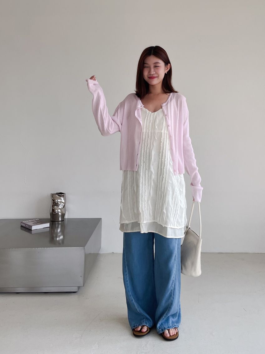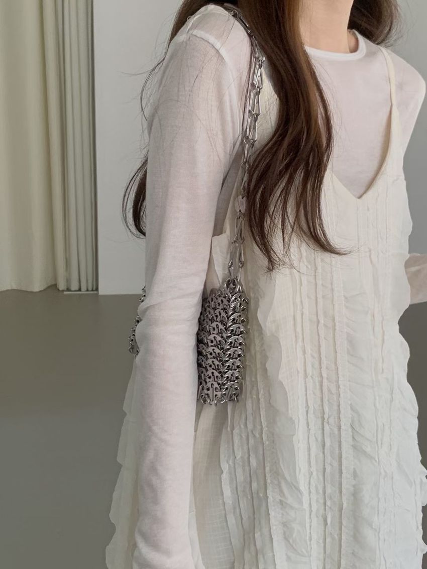 > Connie推薦款!立體雙層花紗細肩短洋裝/上衣(直播款)