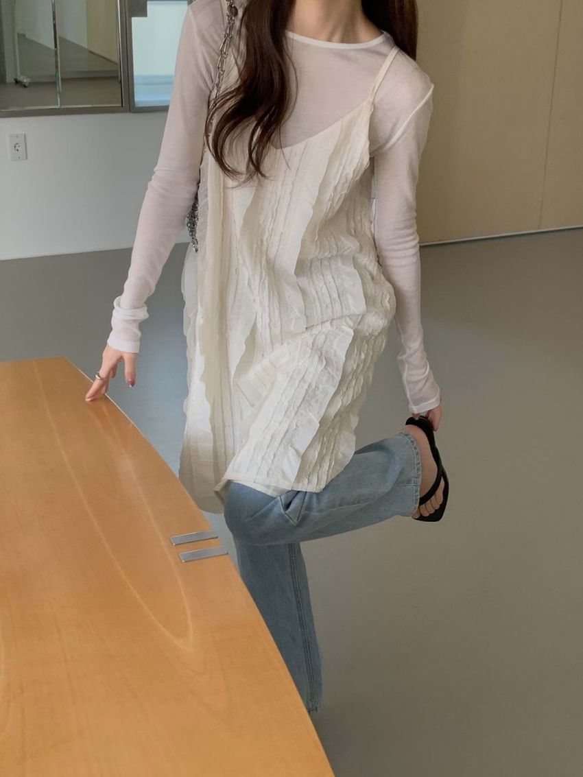 Connie推薦款!立體雙層花紗細肩短洋裝/上衣(直播款)