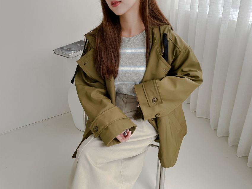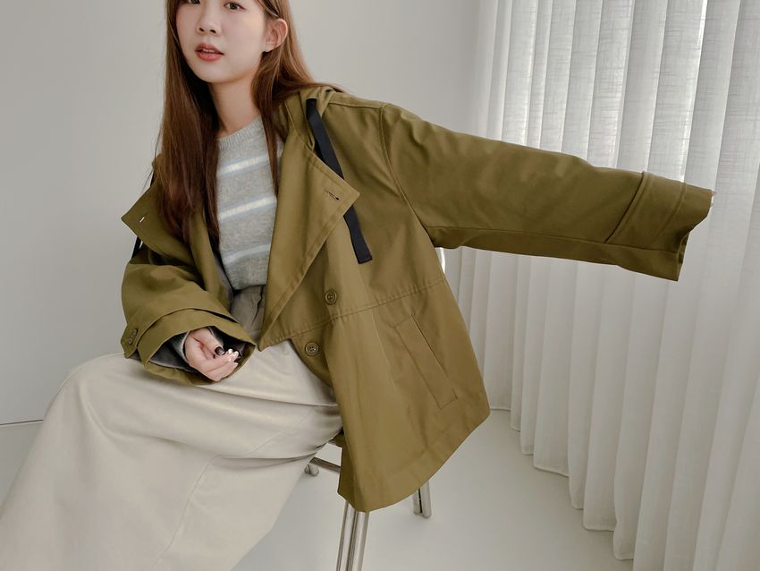 > 私服推薦款!!滑布雙排釦斗篷鋪棉外套(特)(直播影片)