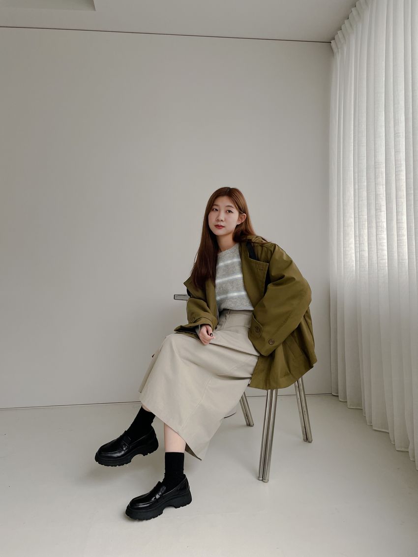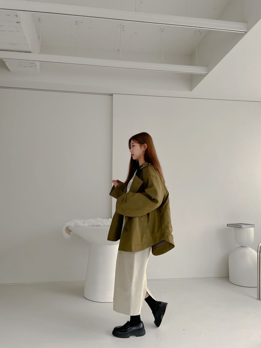 整件外套帶有圓弧的線條 又帥氣又可愛的