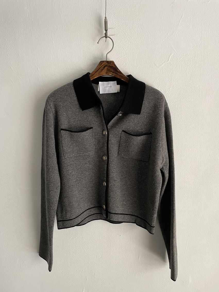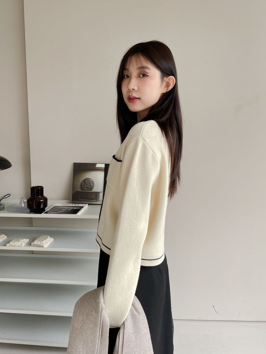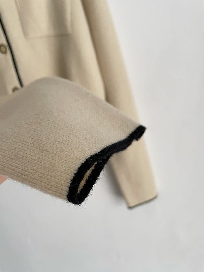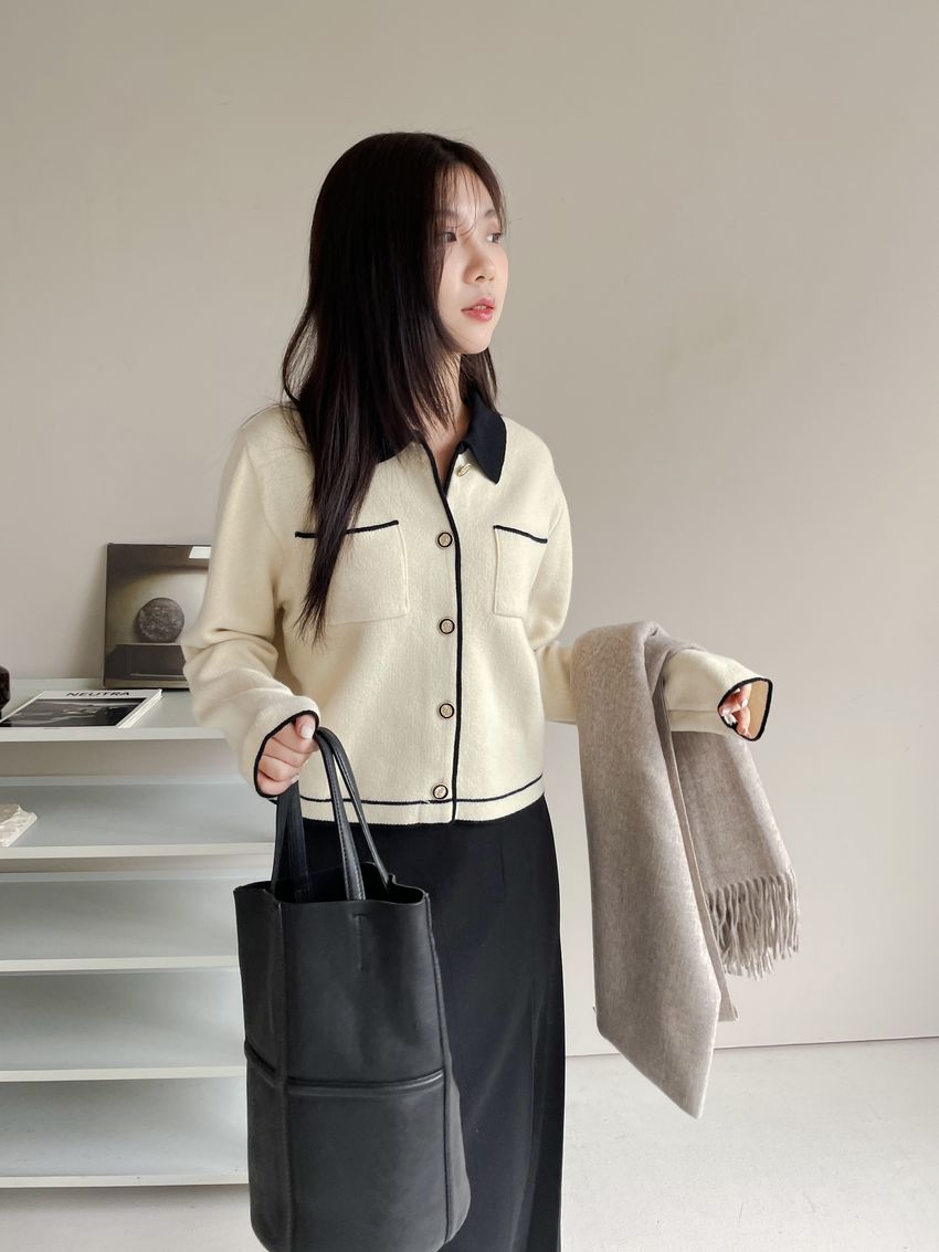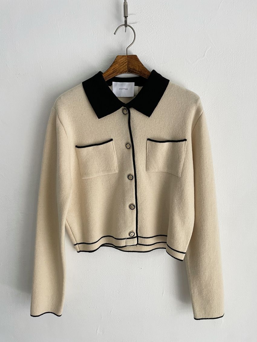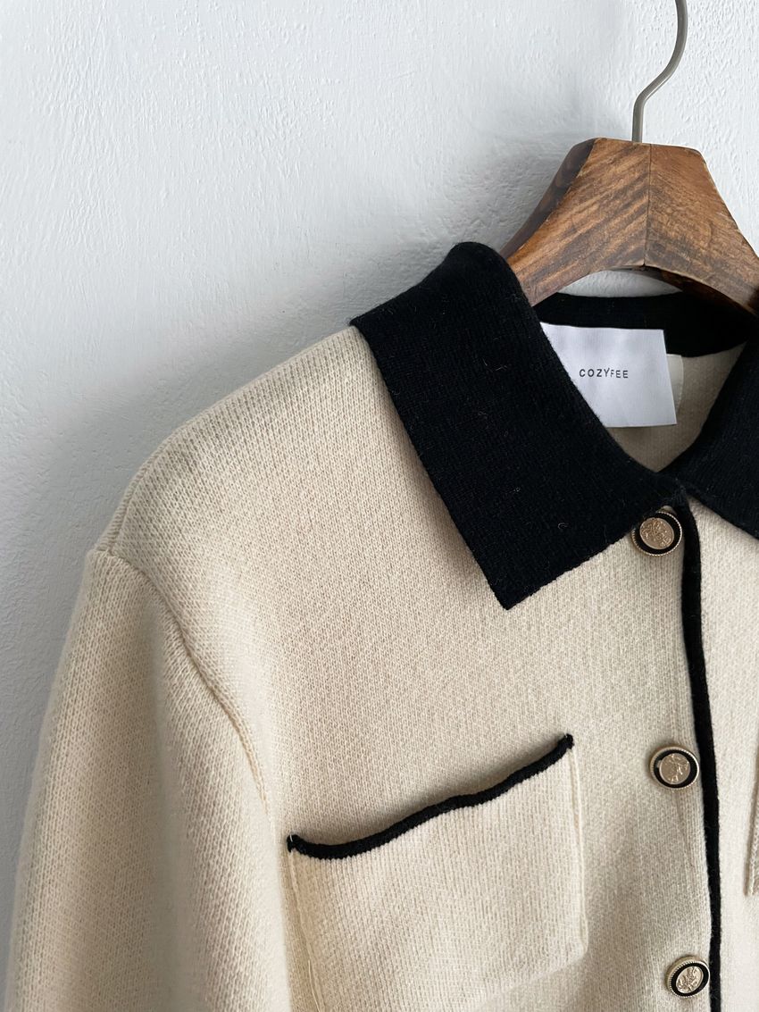 > 配色領滾邊羊毛針織外套(直播影片)