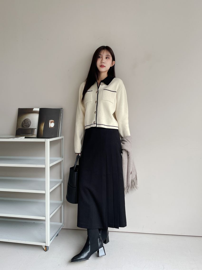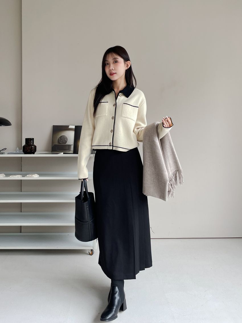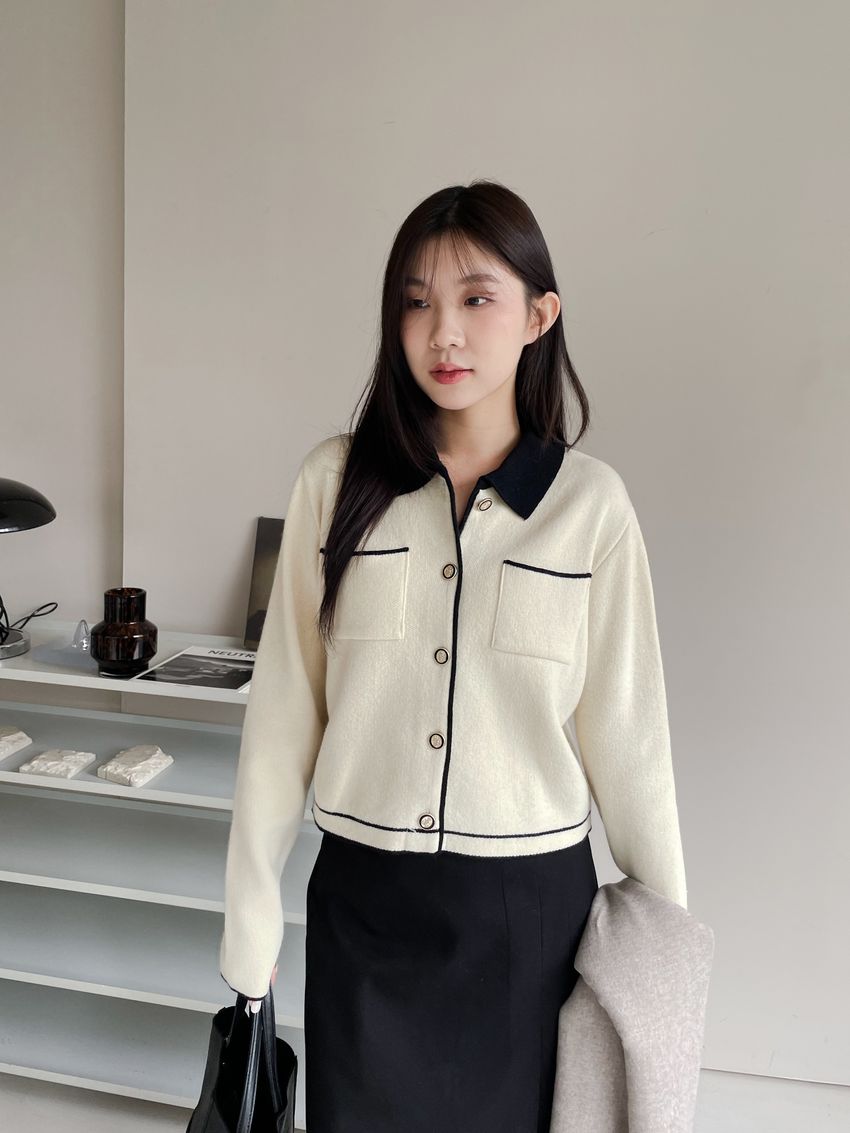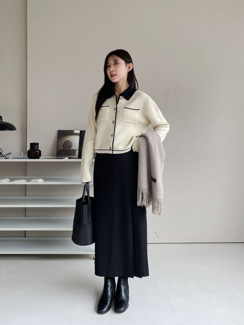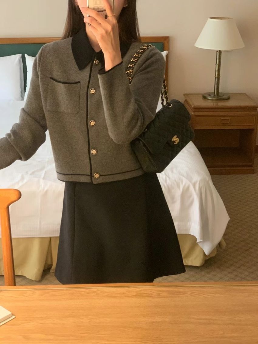 > 配色領滾邊羊毛針織外套(直播影片)