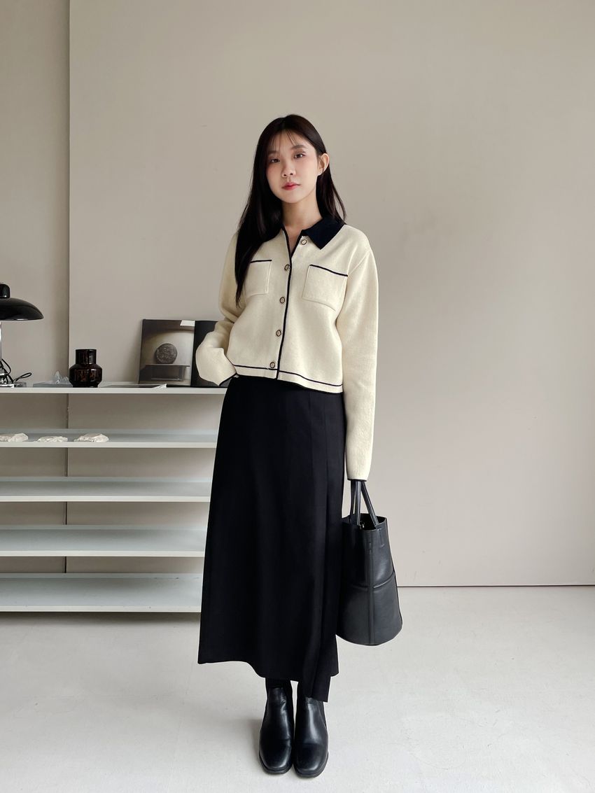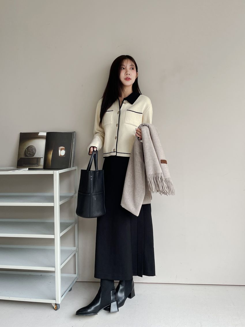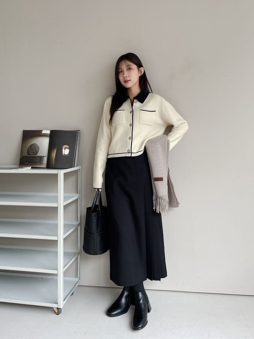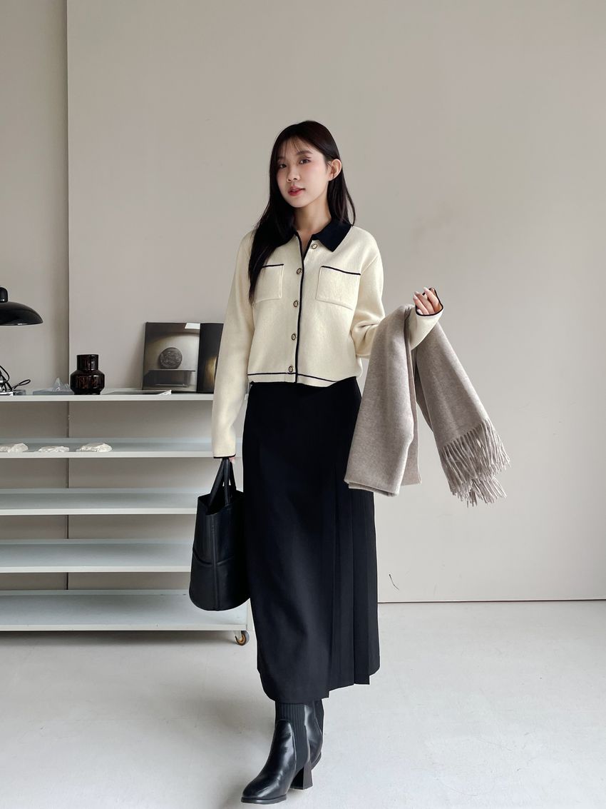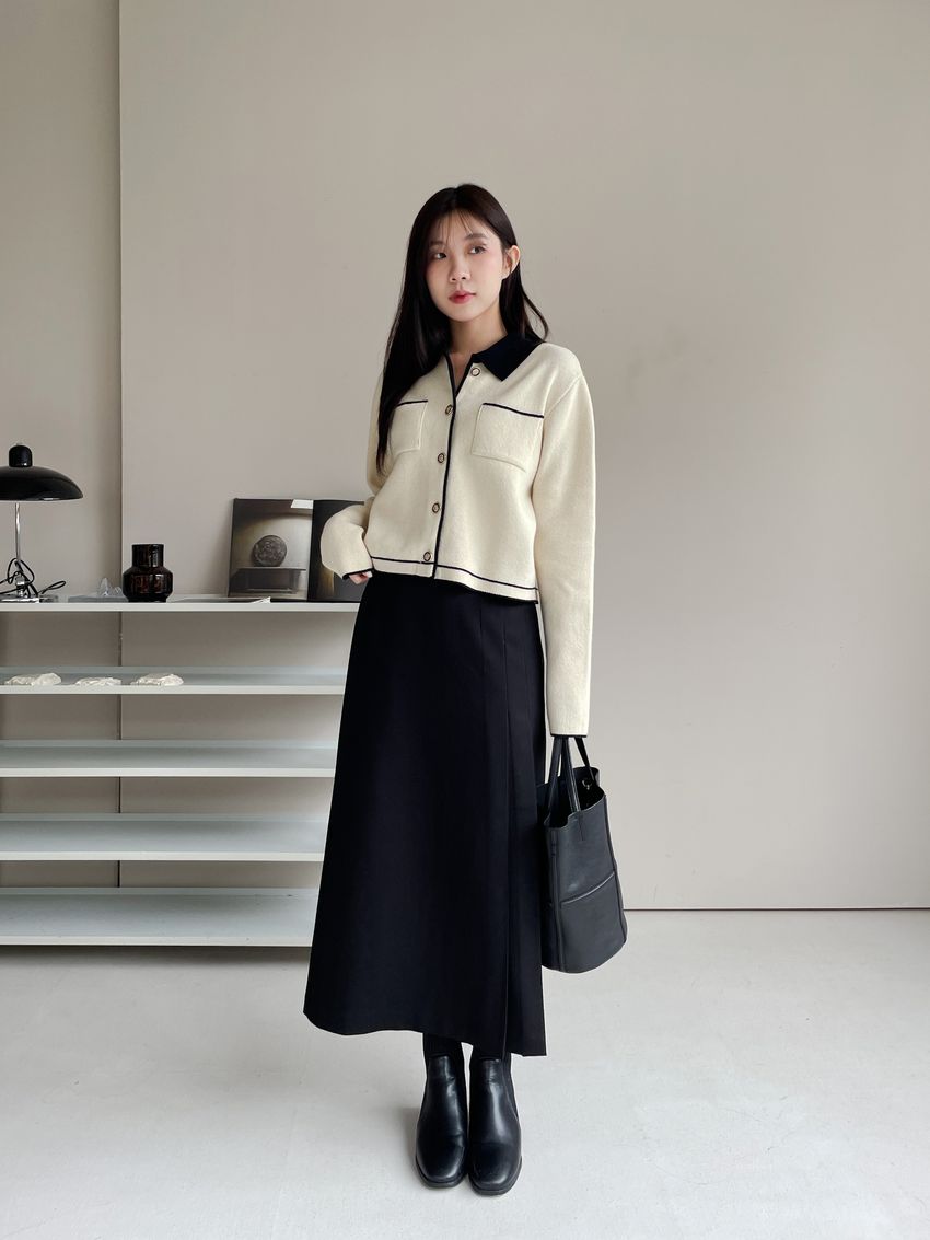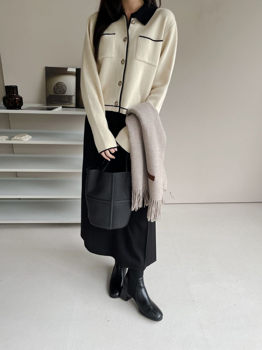 > 配色領滾邊羊毛針織外套(直播影片)