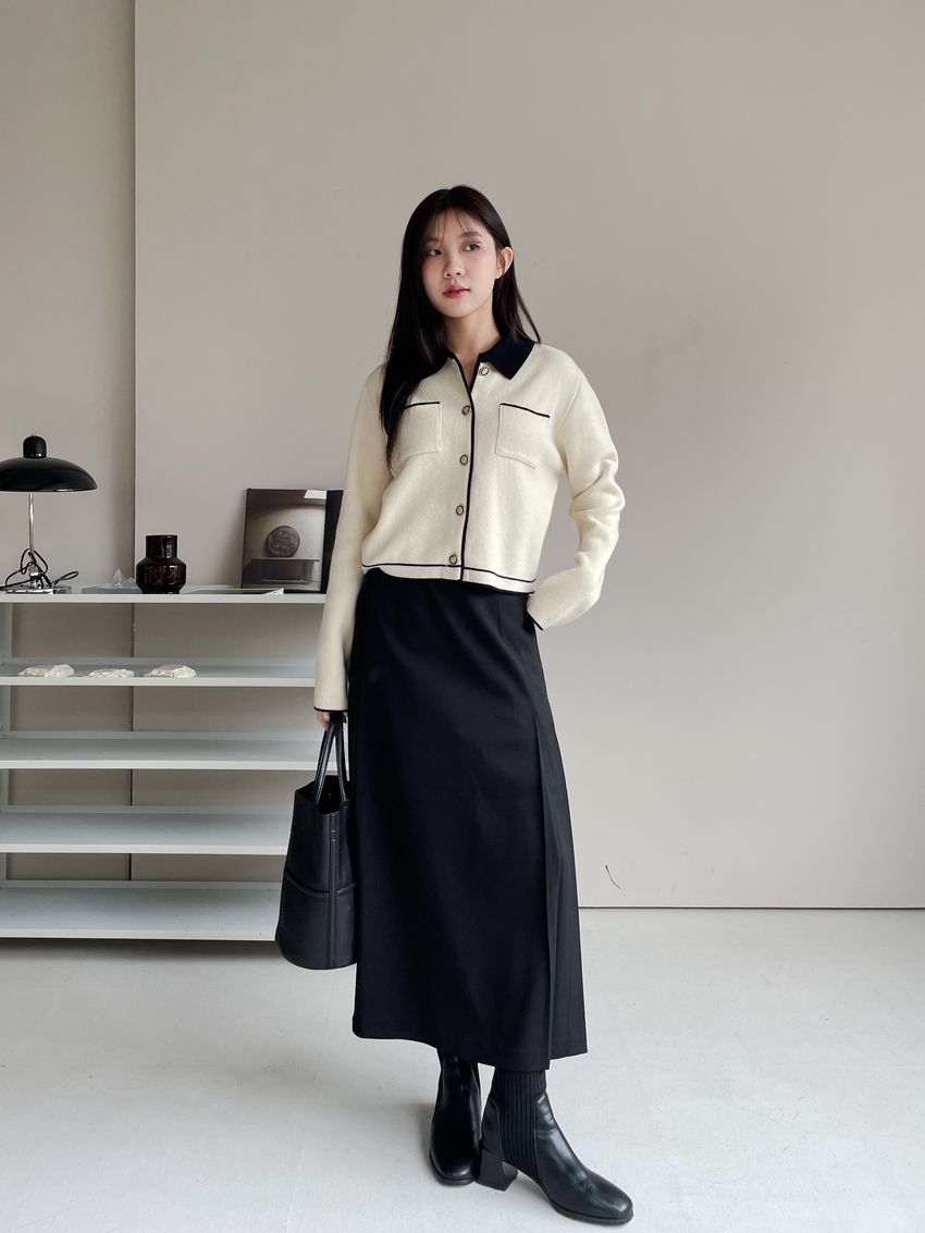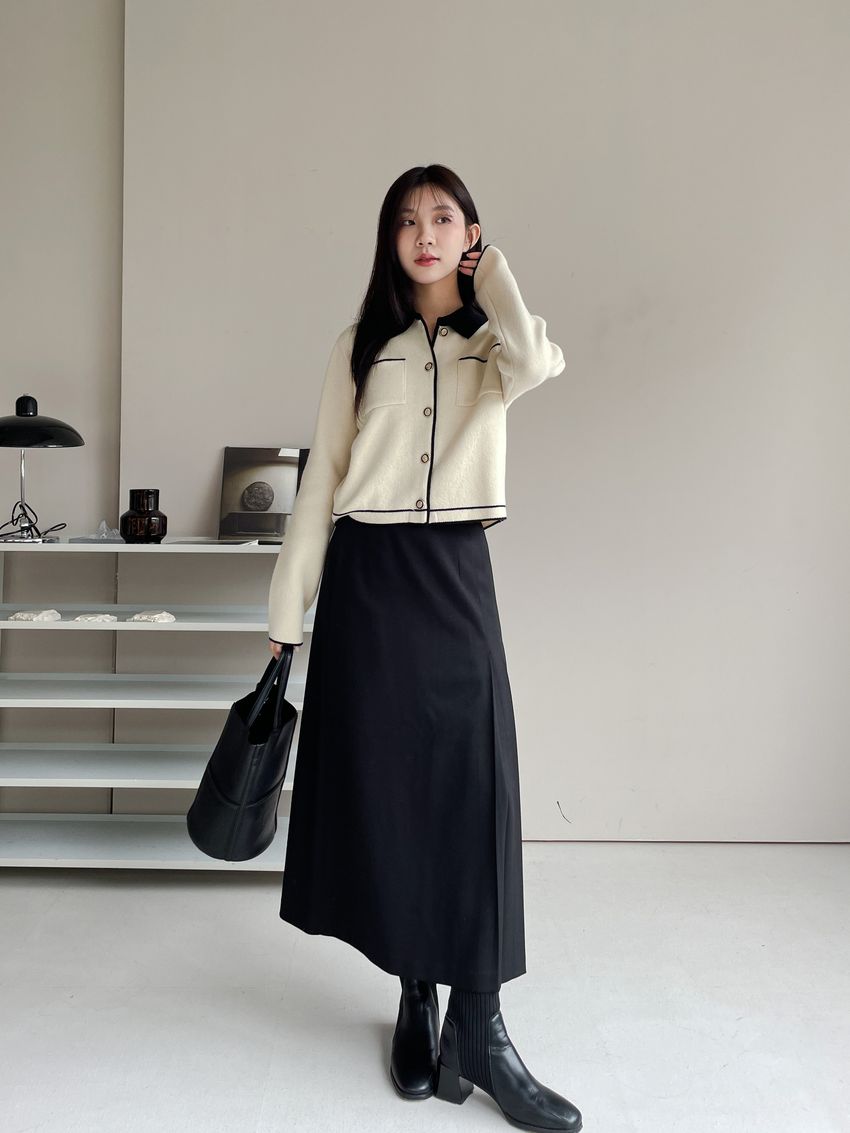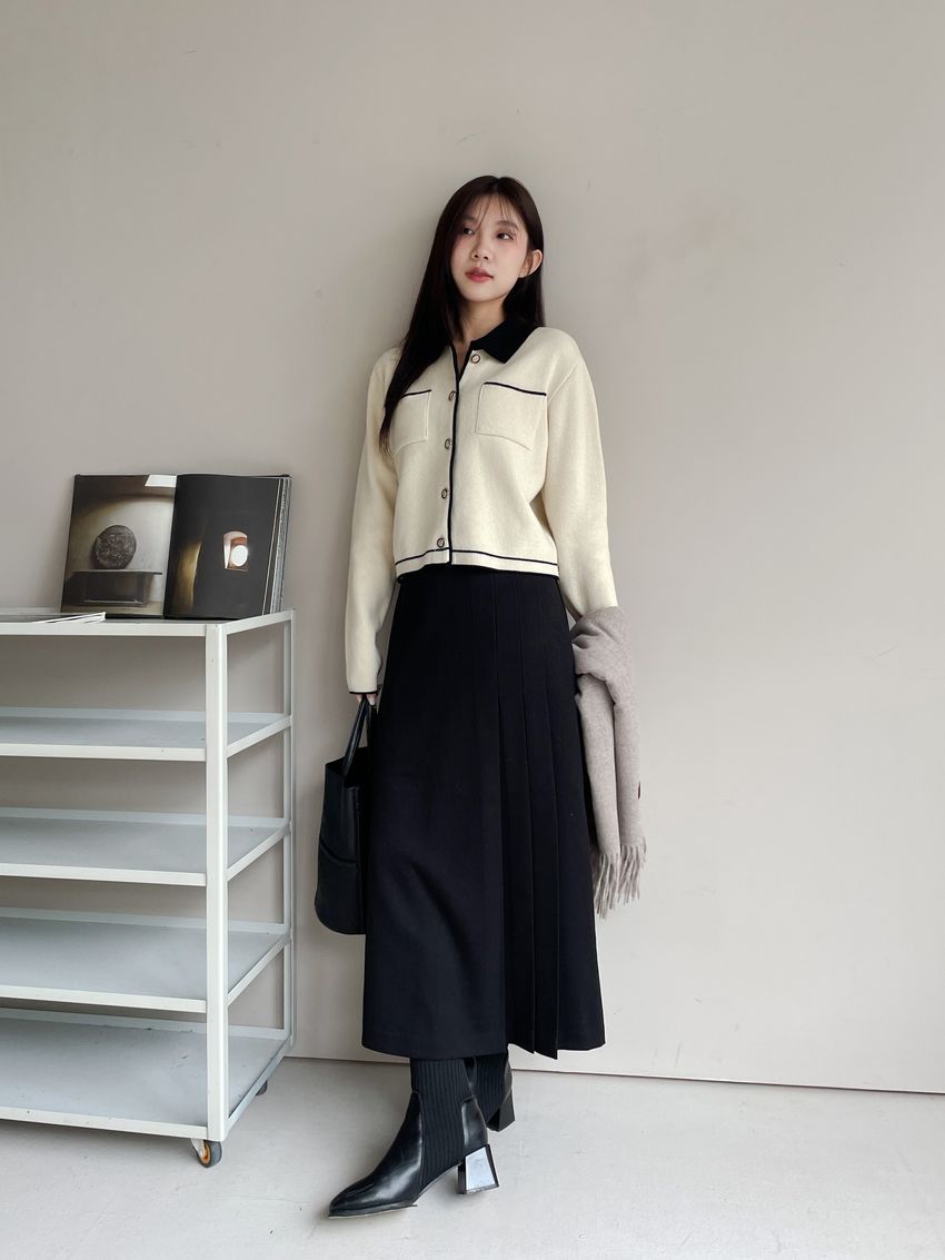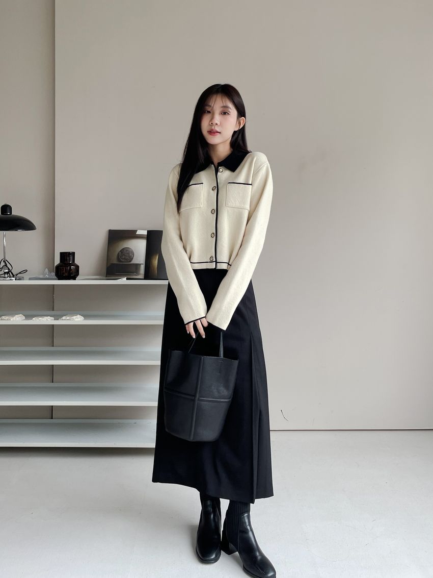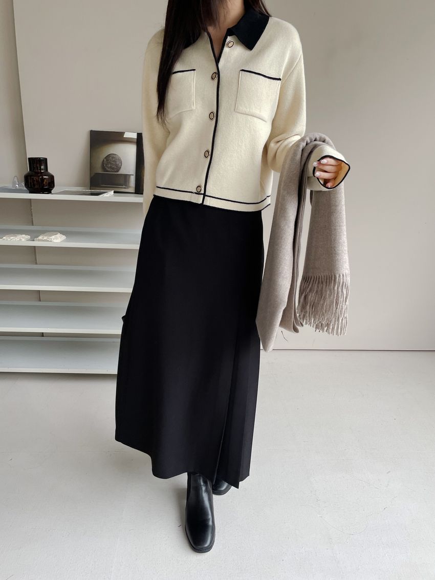 > 配色領滾邊羊毛針織外套(直播影片)