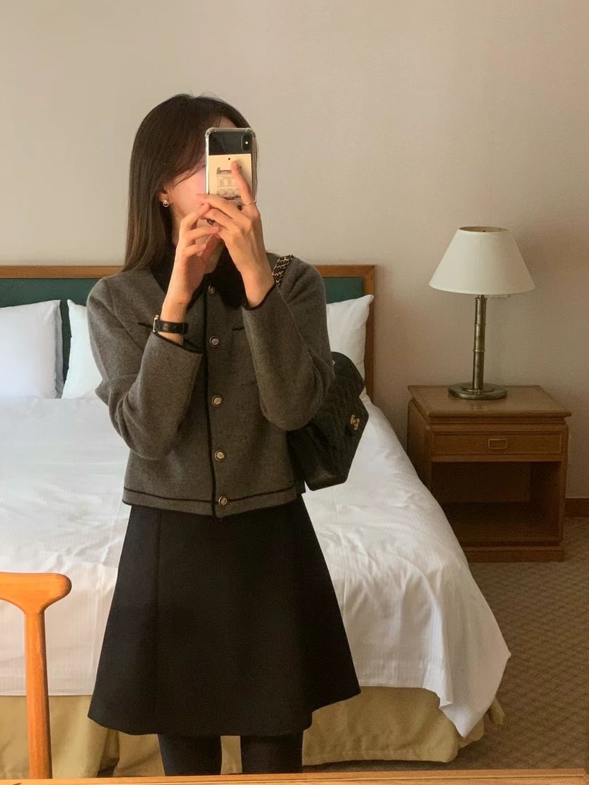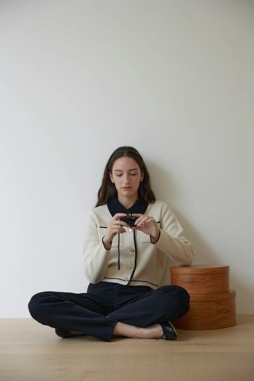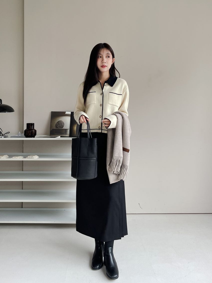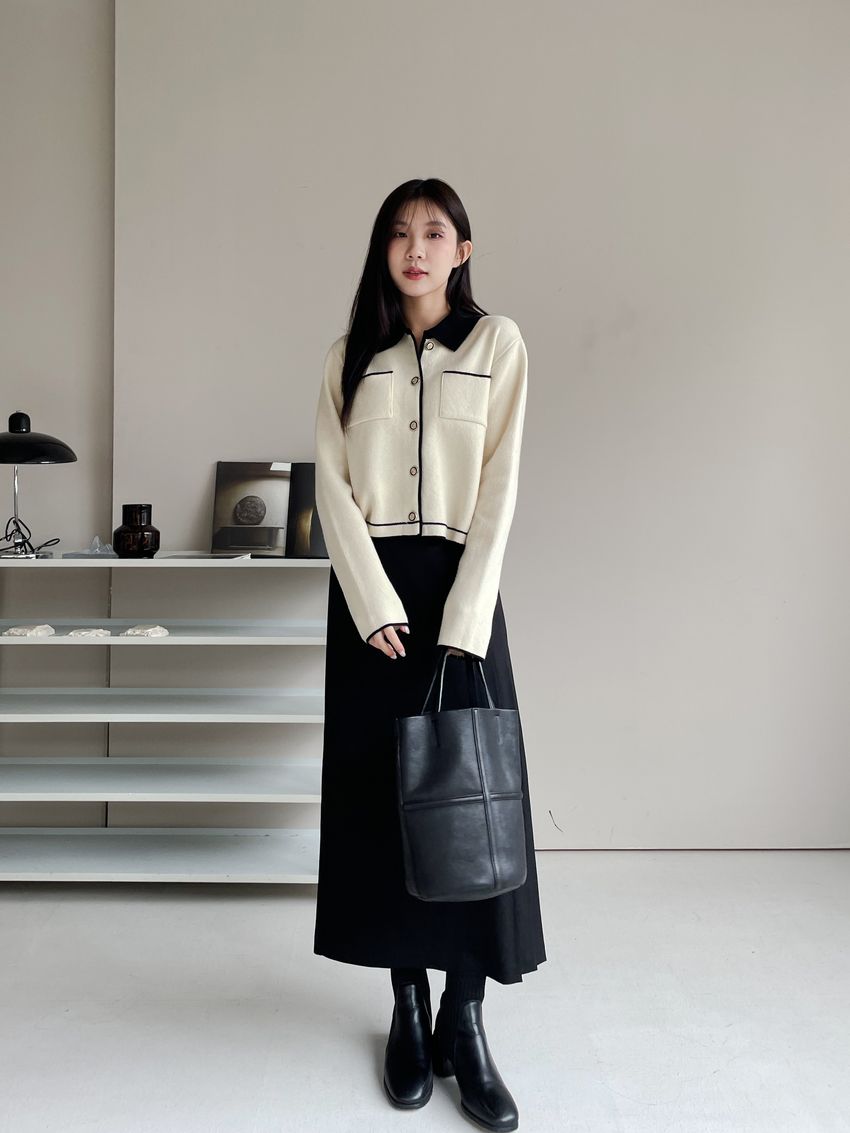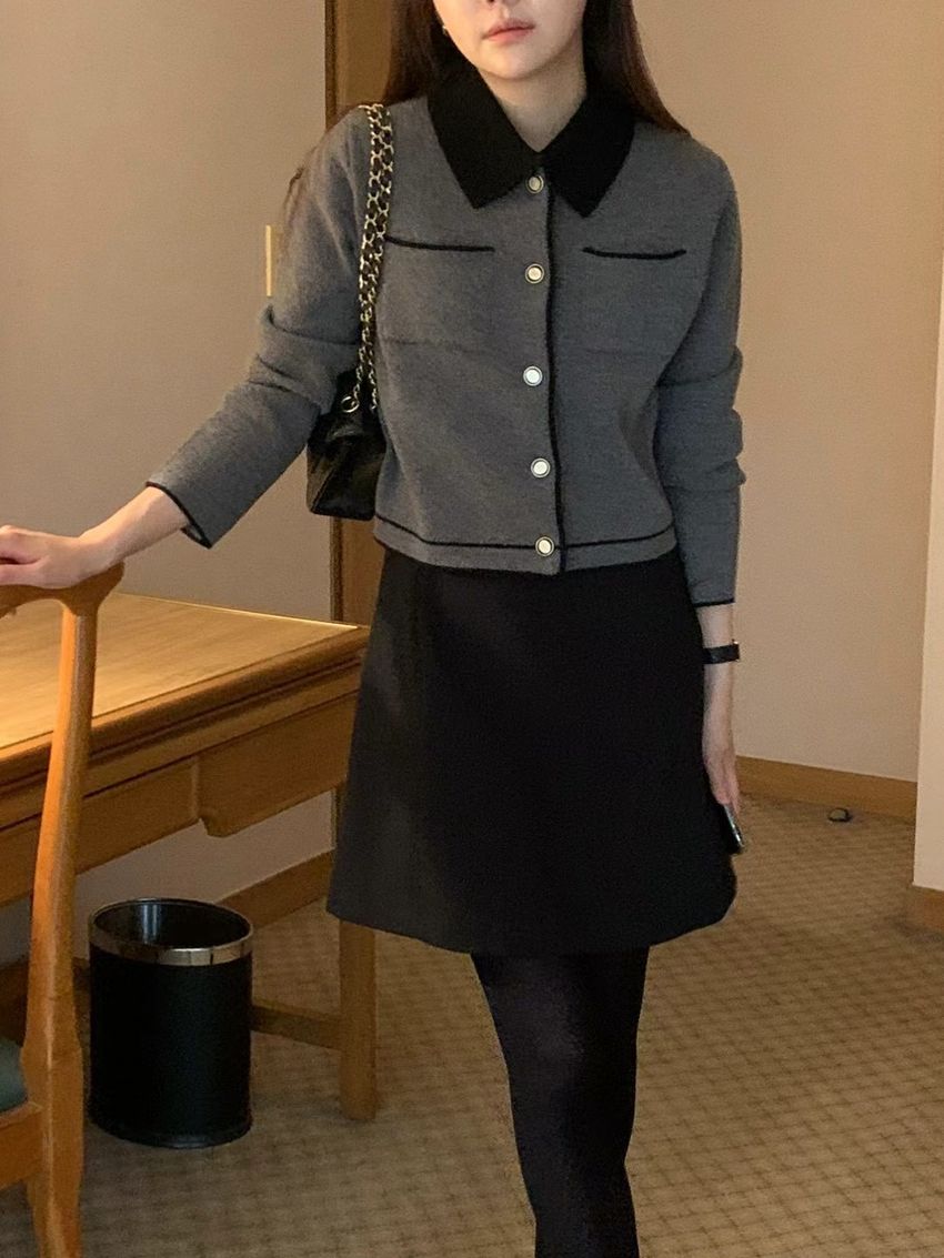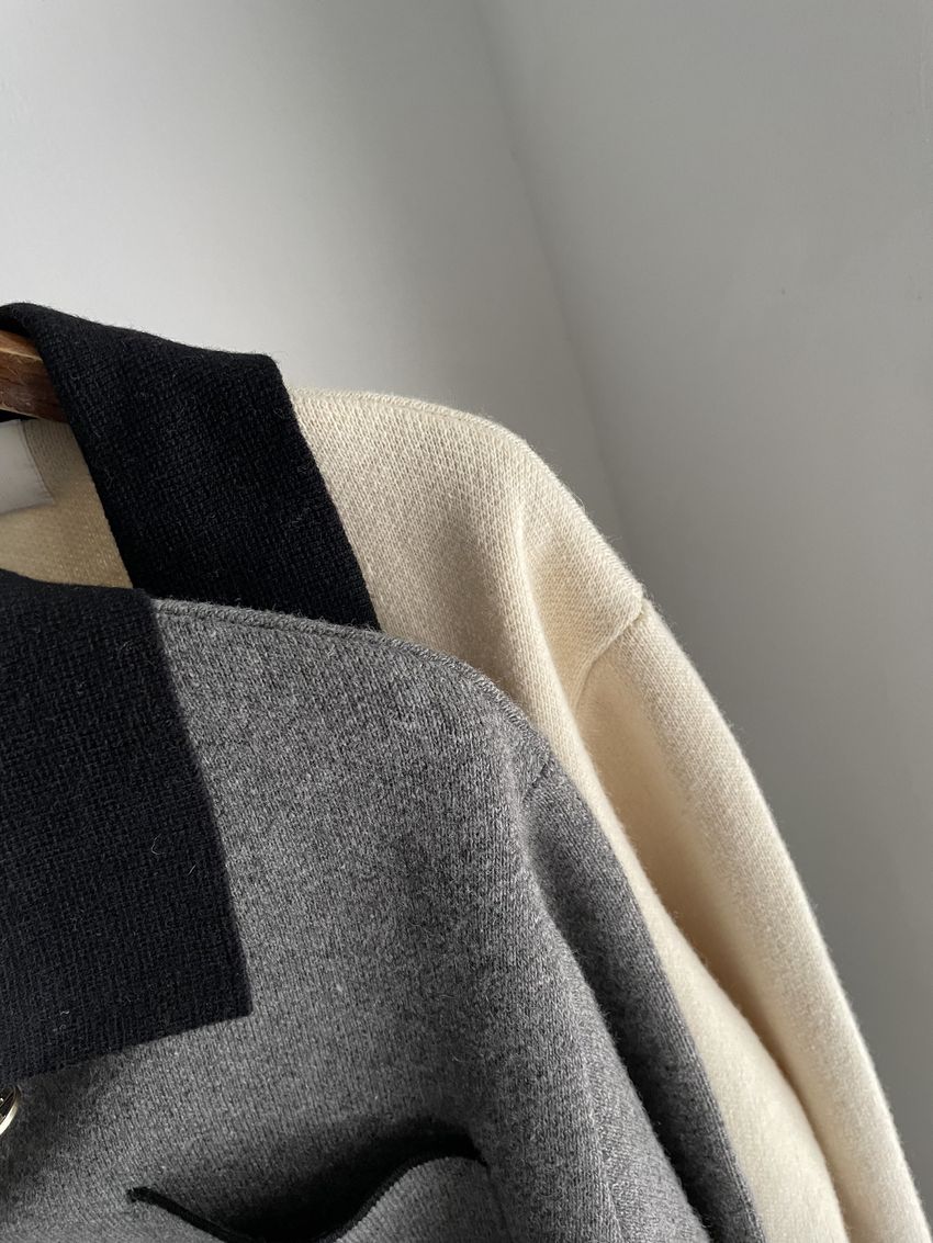 > 配色領滾邊羊毛針織外套(直播影片)