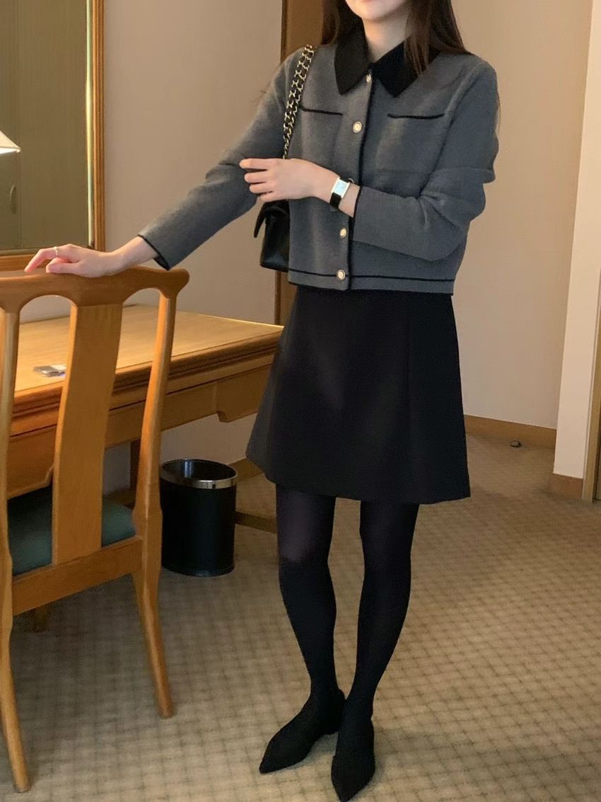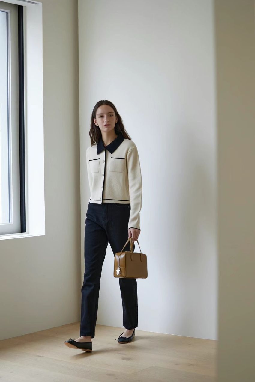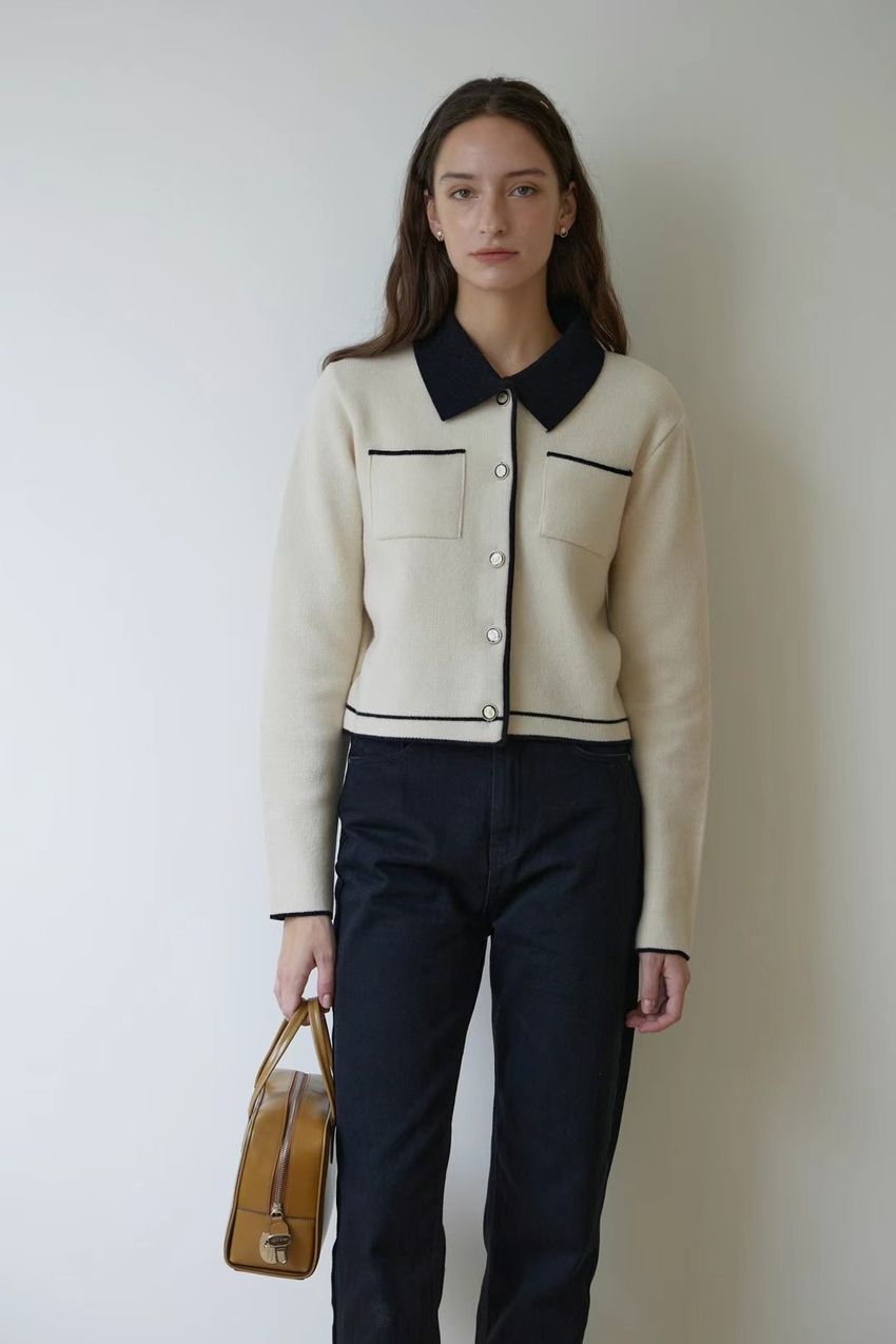 配色領滾邊羊毛針織外套(直播影片)