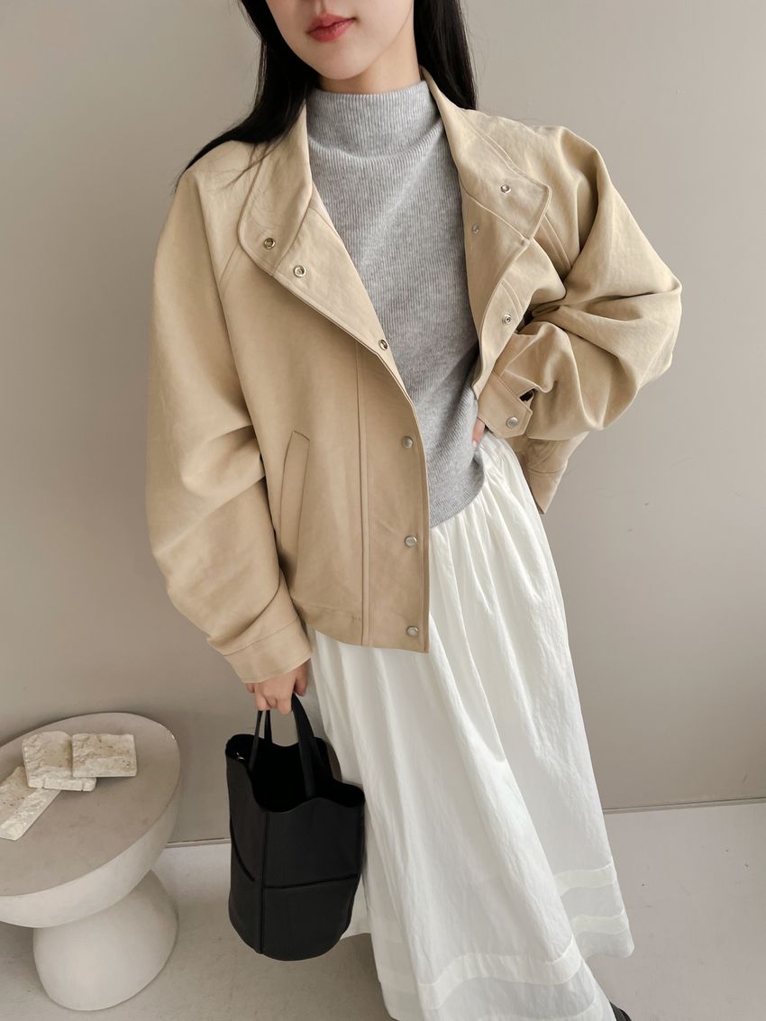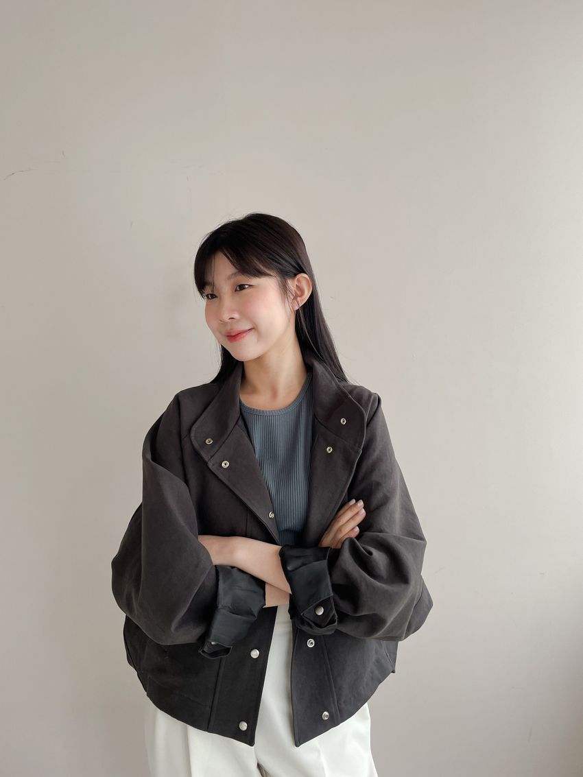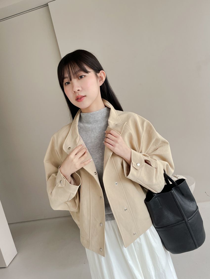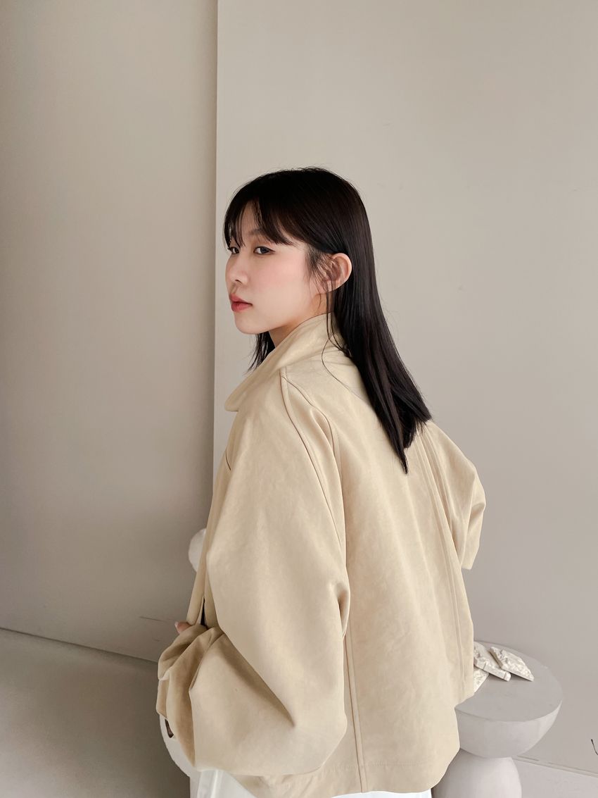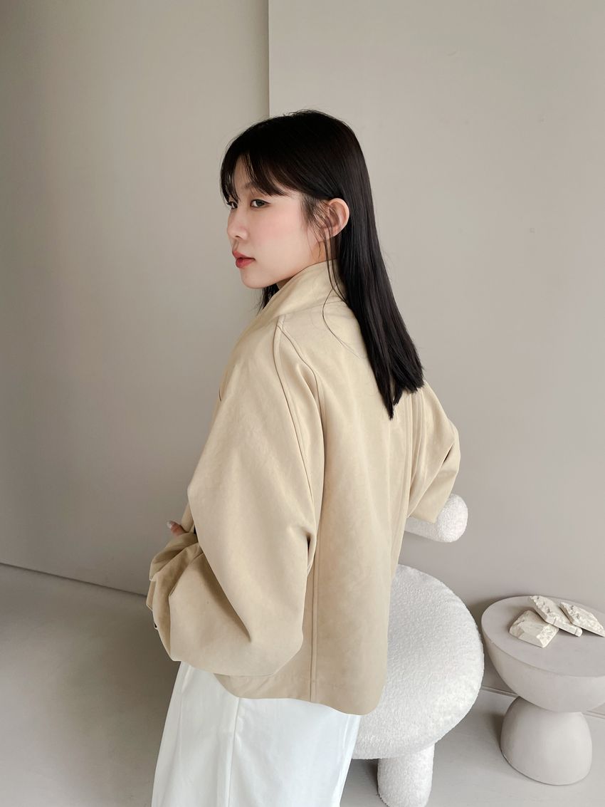 > 立領插肩袖壓釦短風衣外套(直播影片)