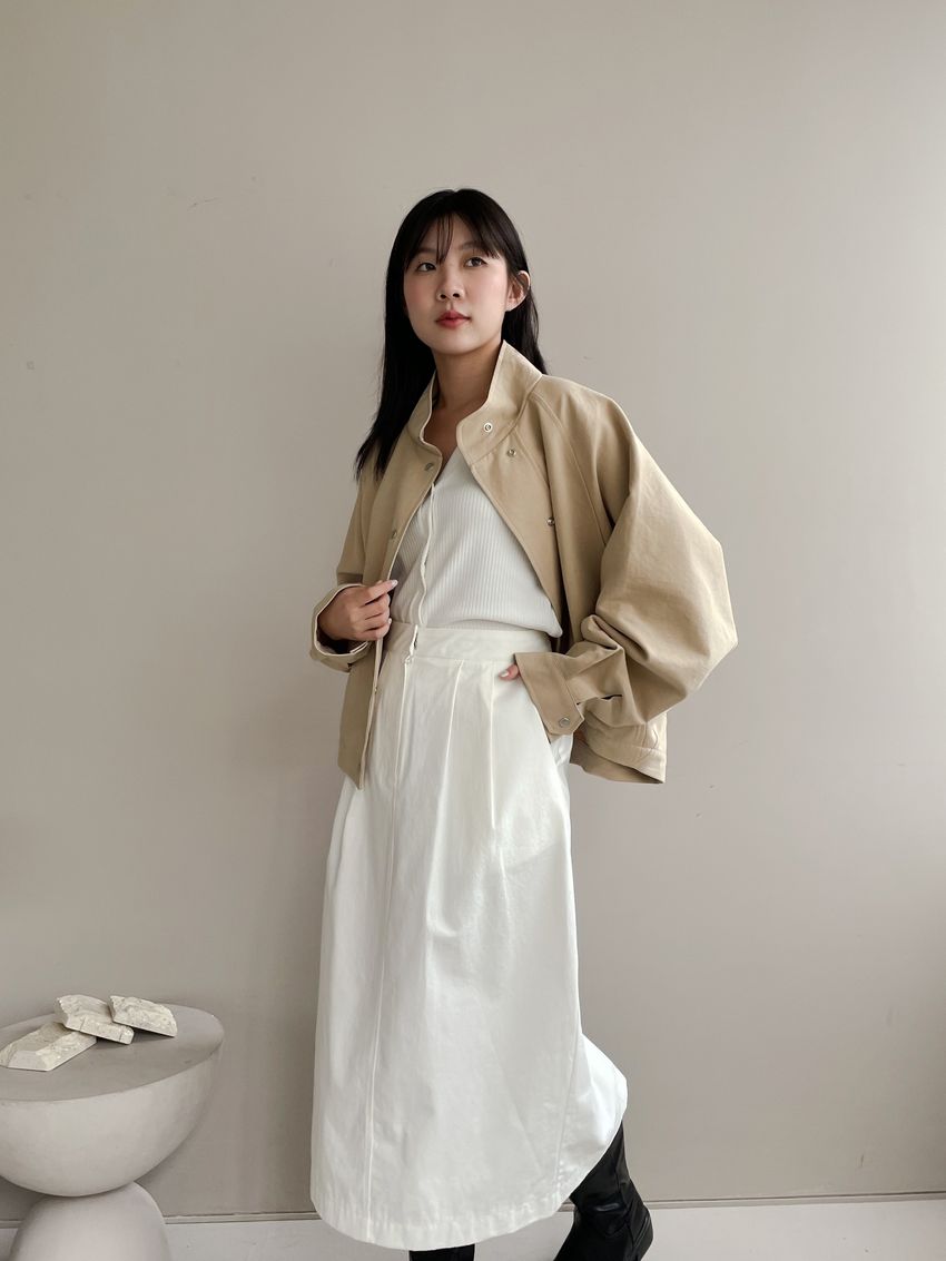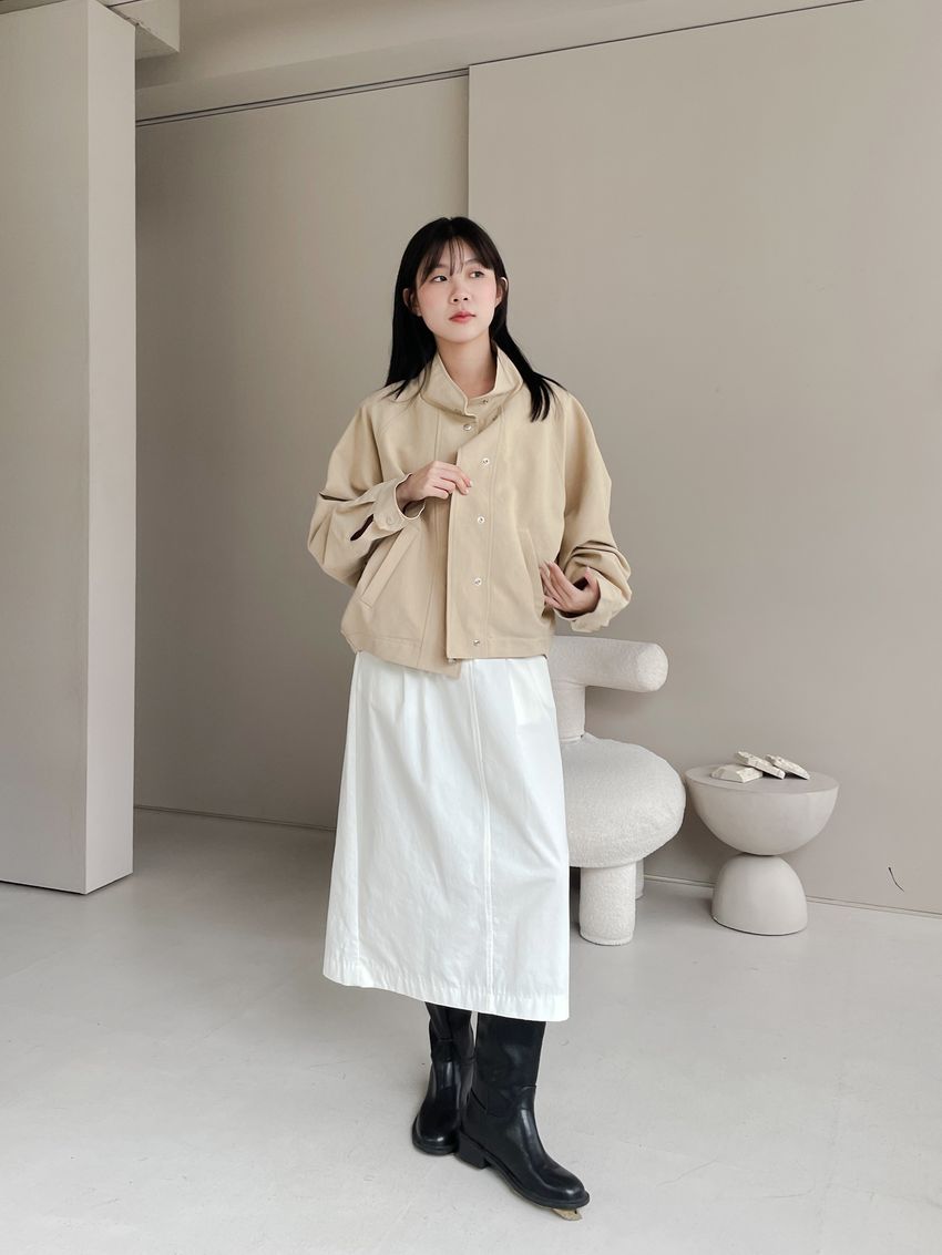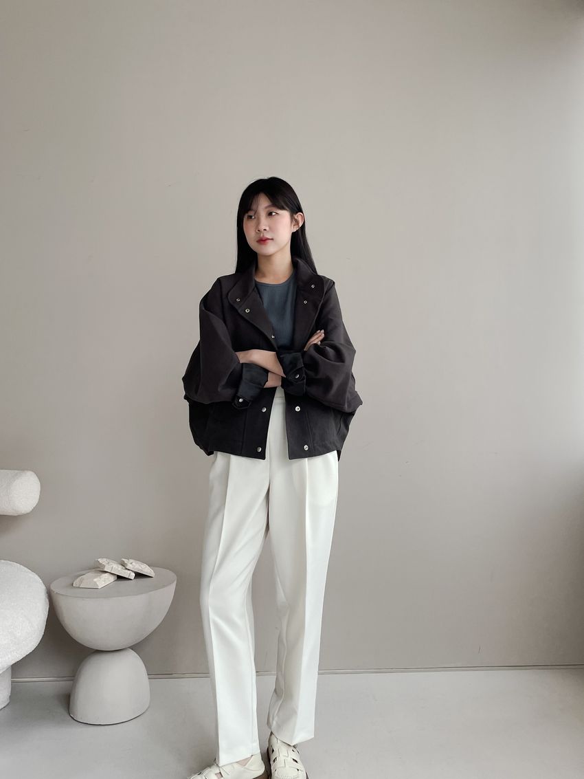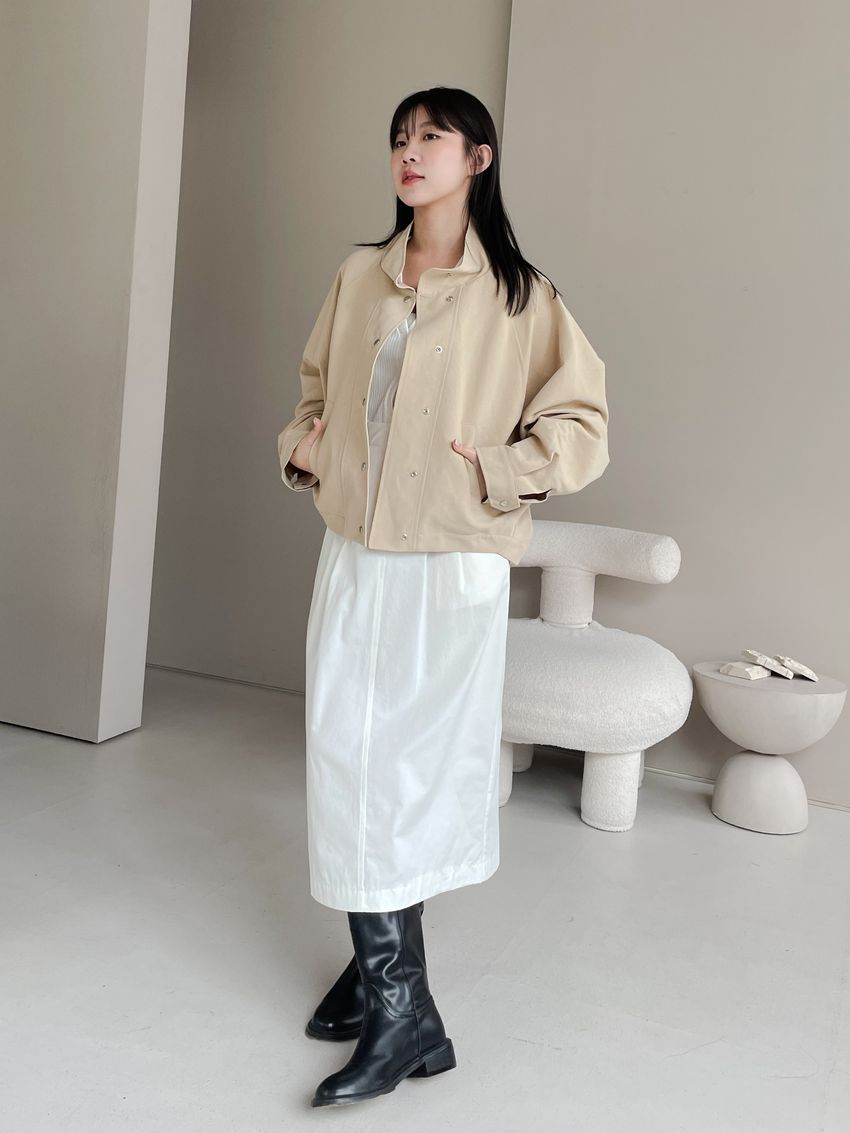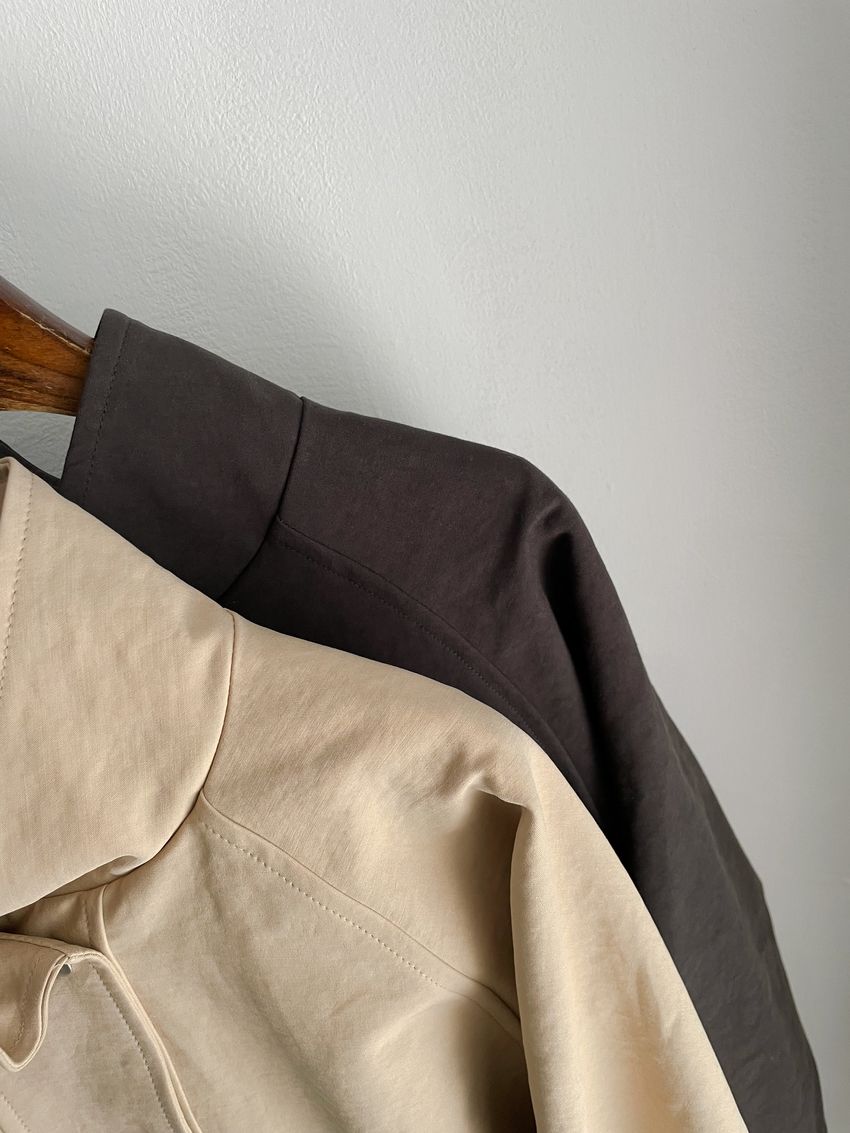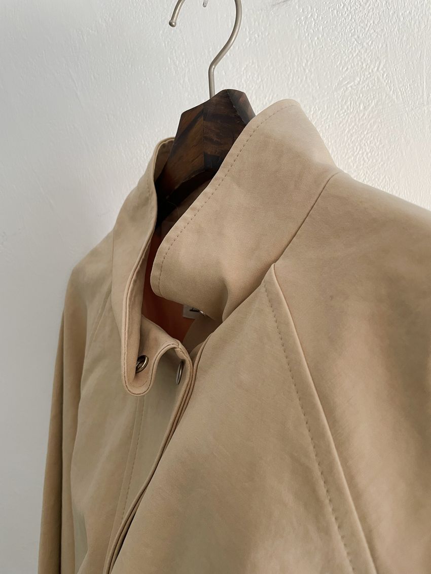 > 立領插肩袖壓釦短風衣外套(直播影片)