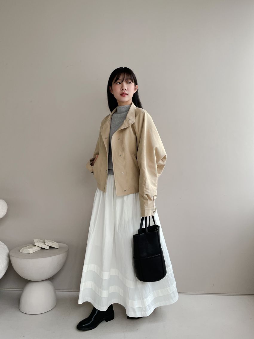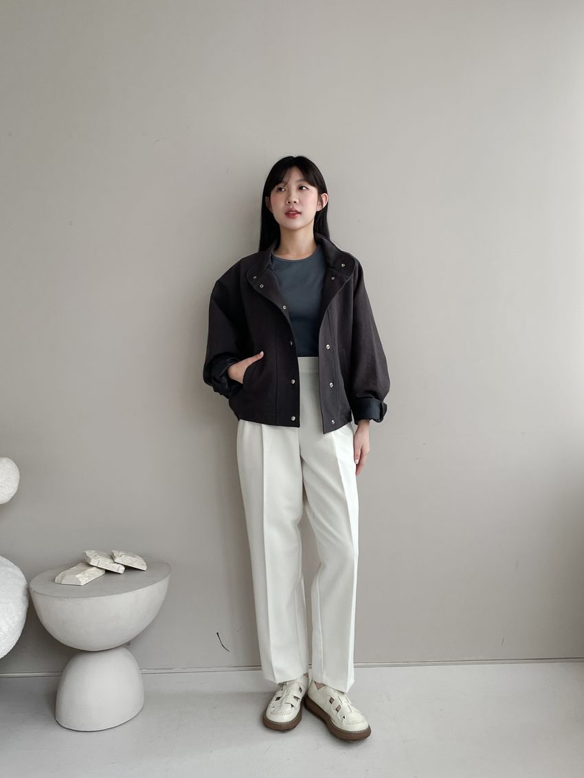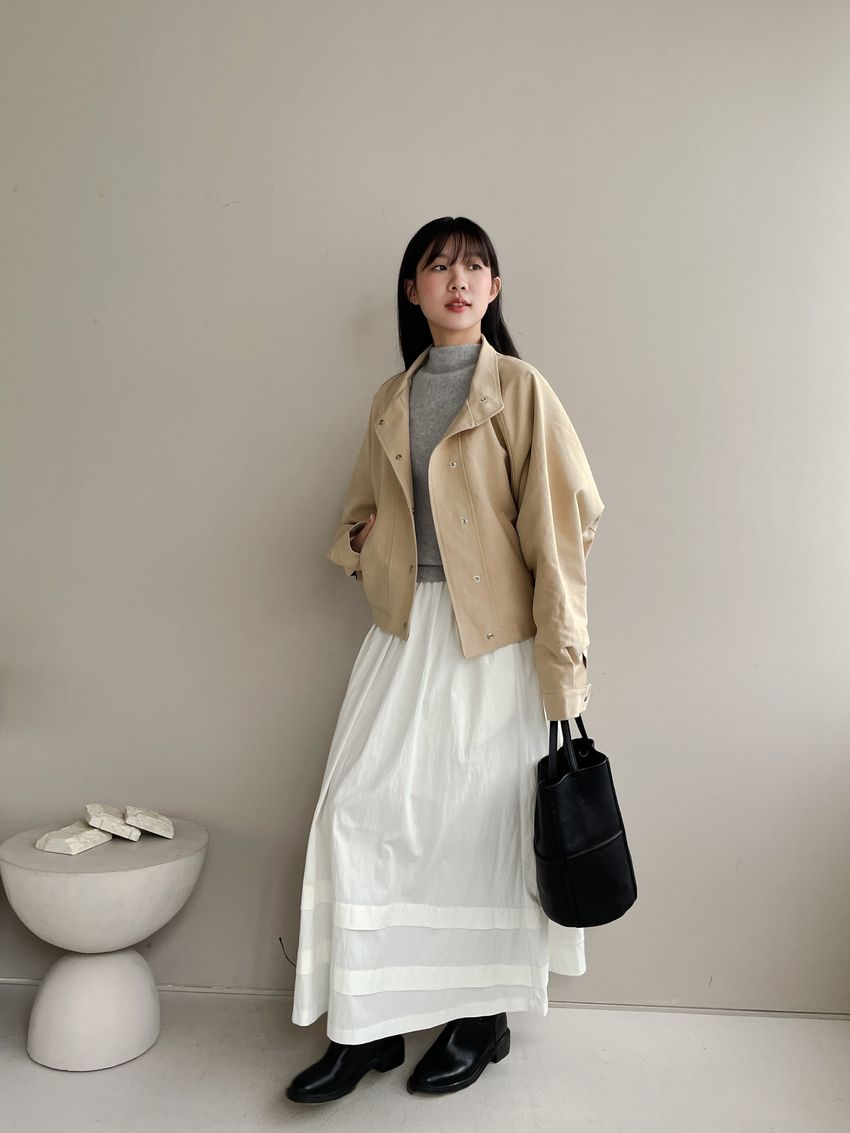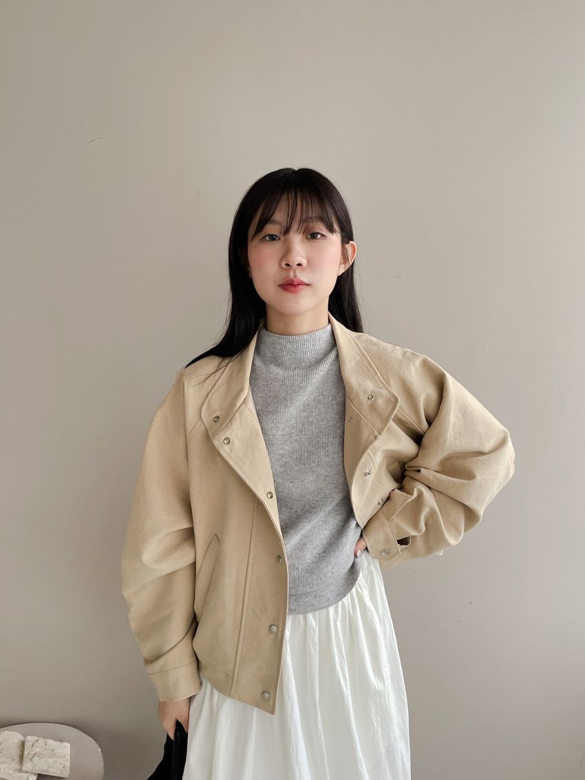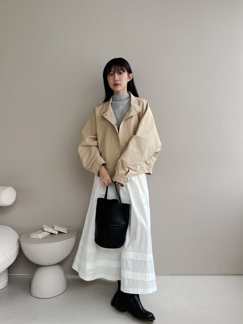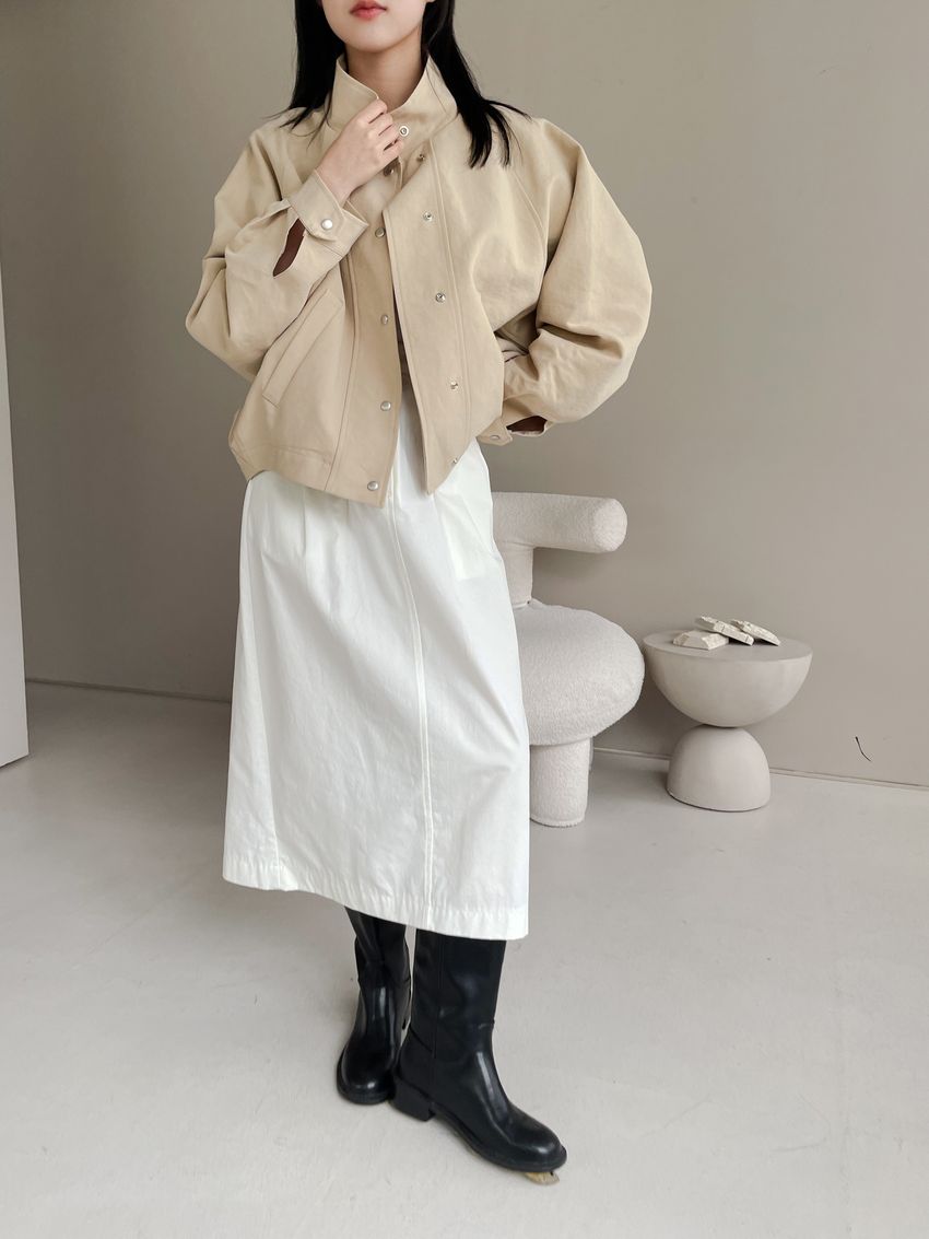 > 立領插肩袖壓釦短風衣外套(直播影片)