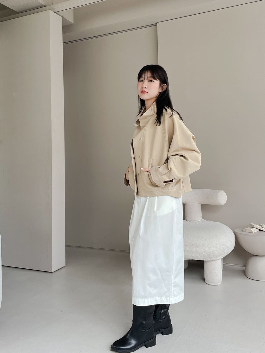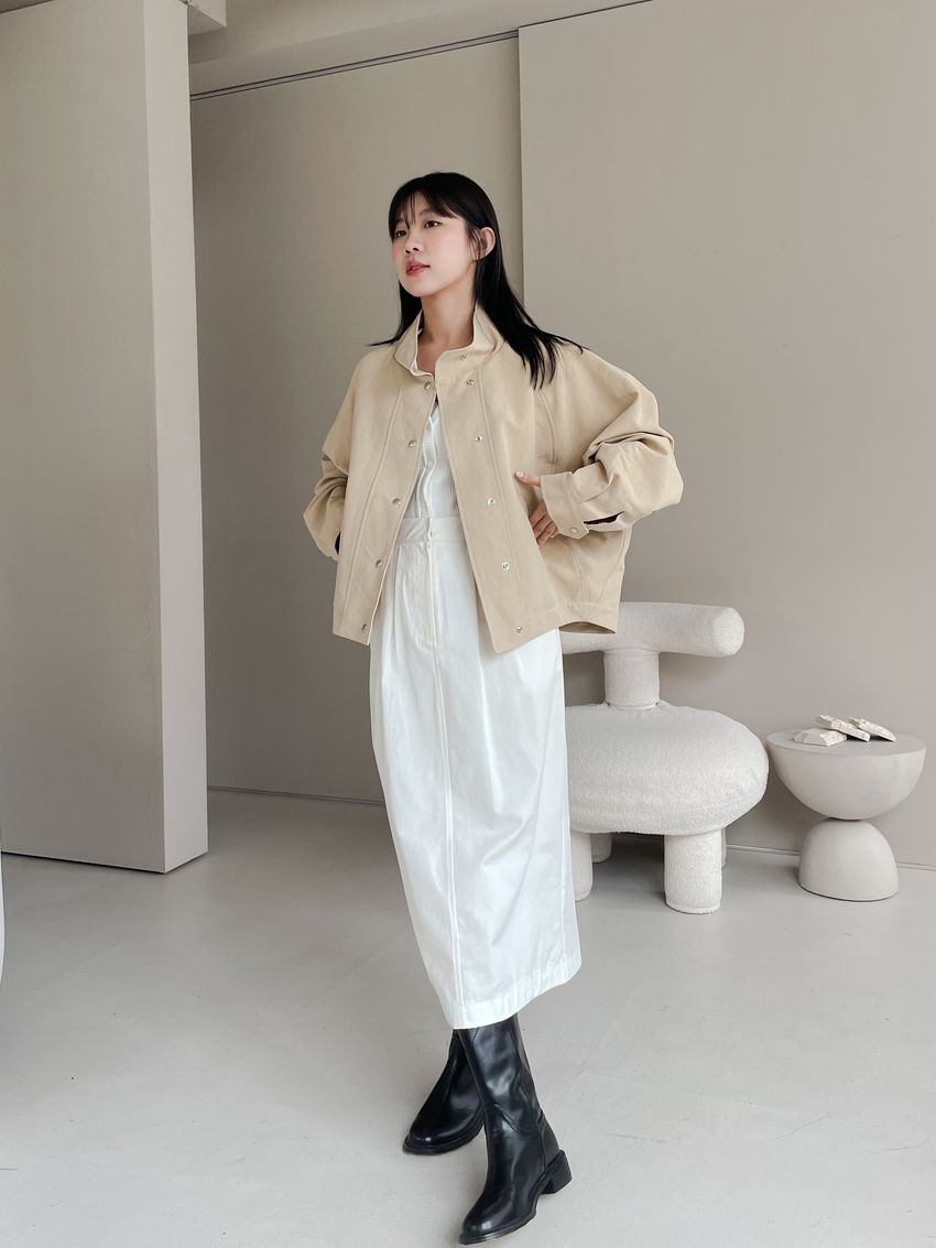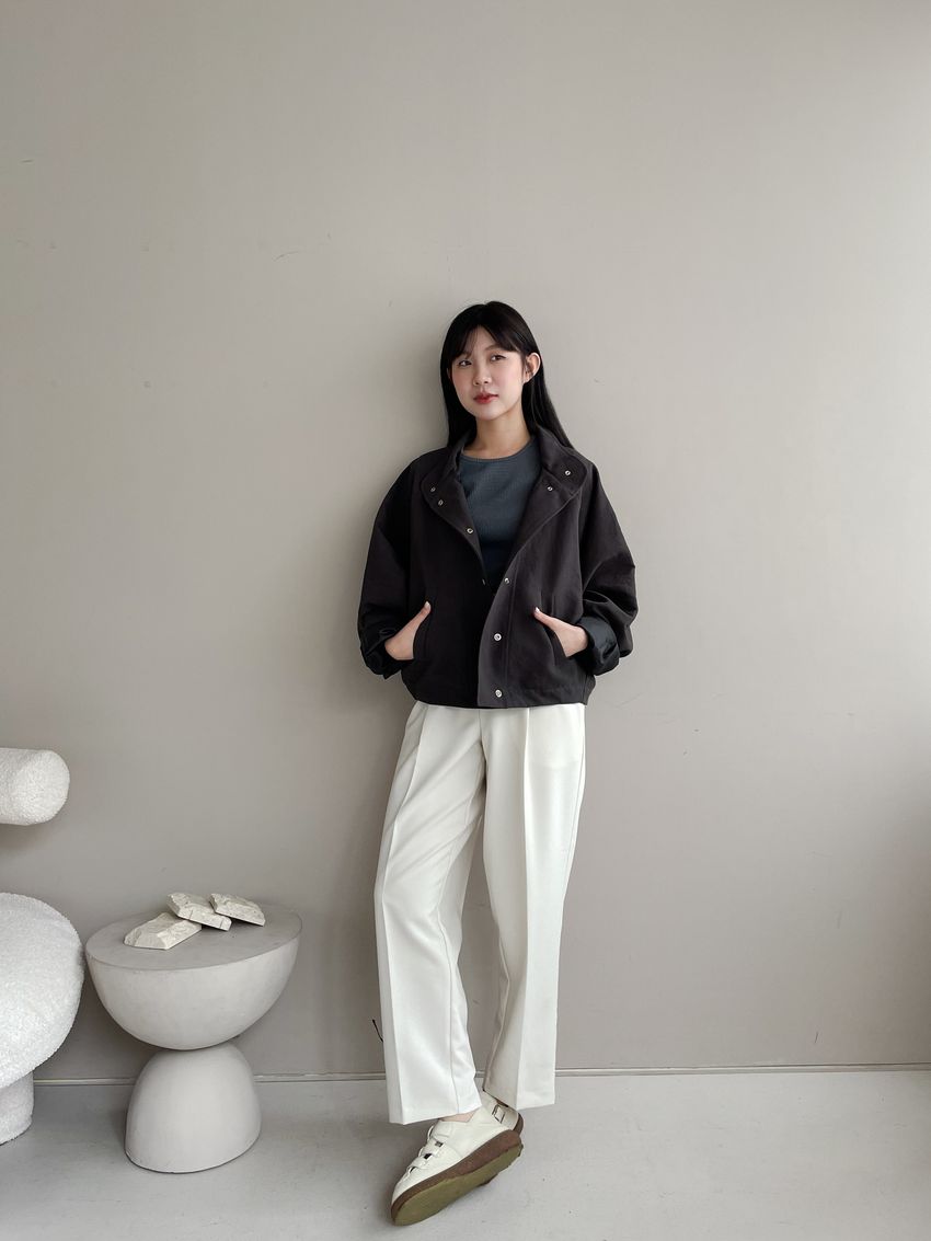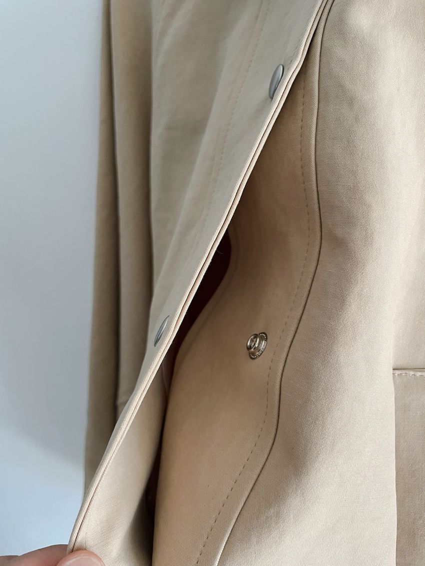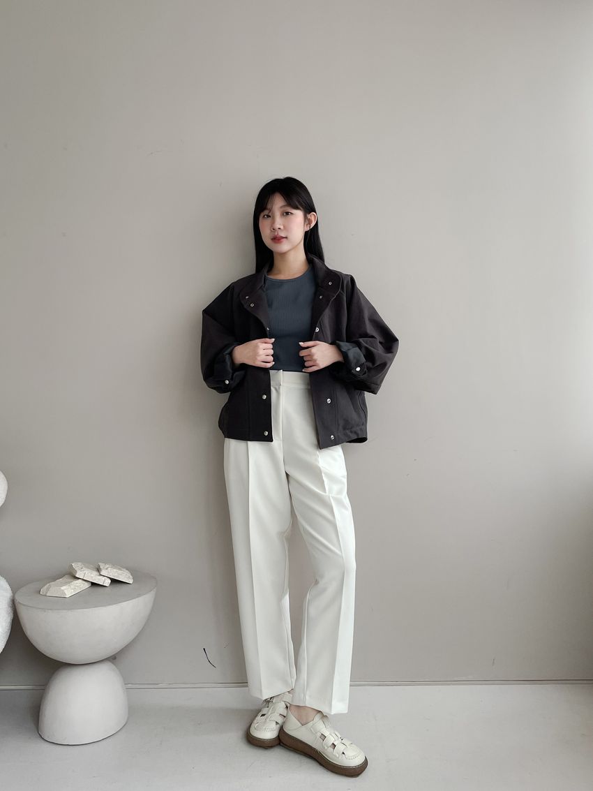 > 立領插肩袖壓釦短風衣外套(直播影片)