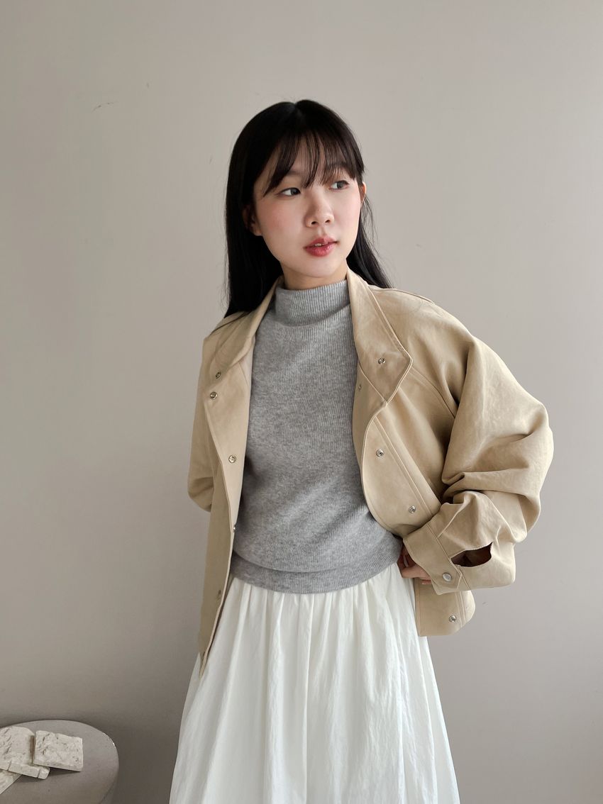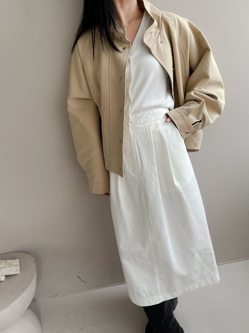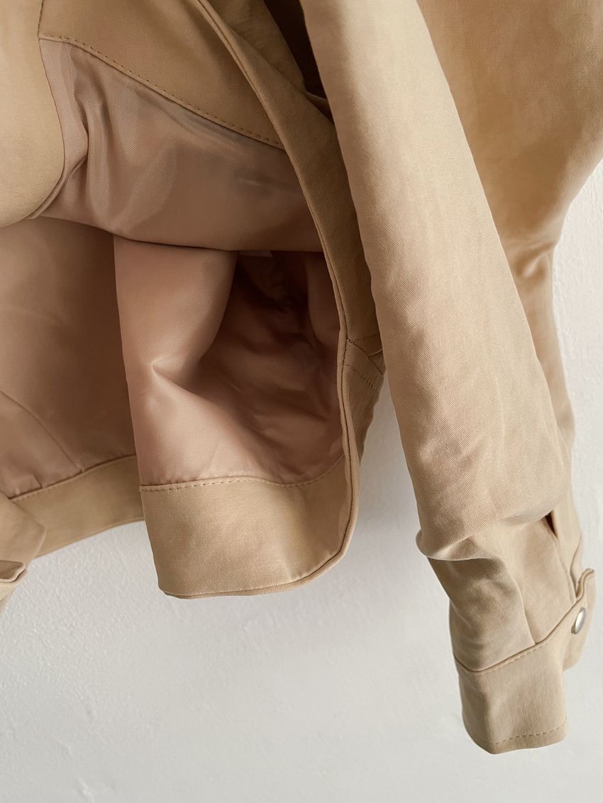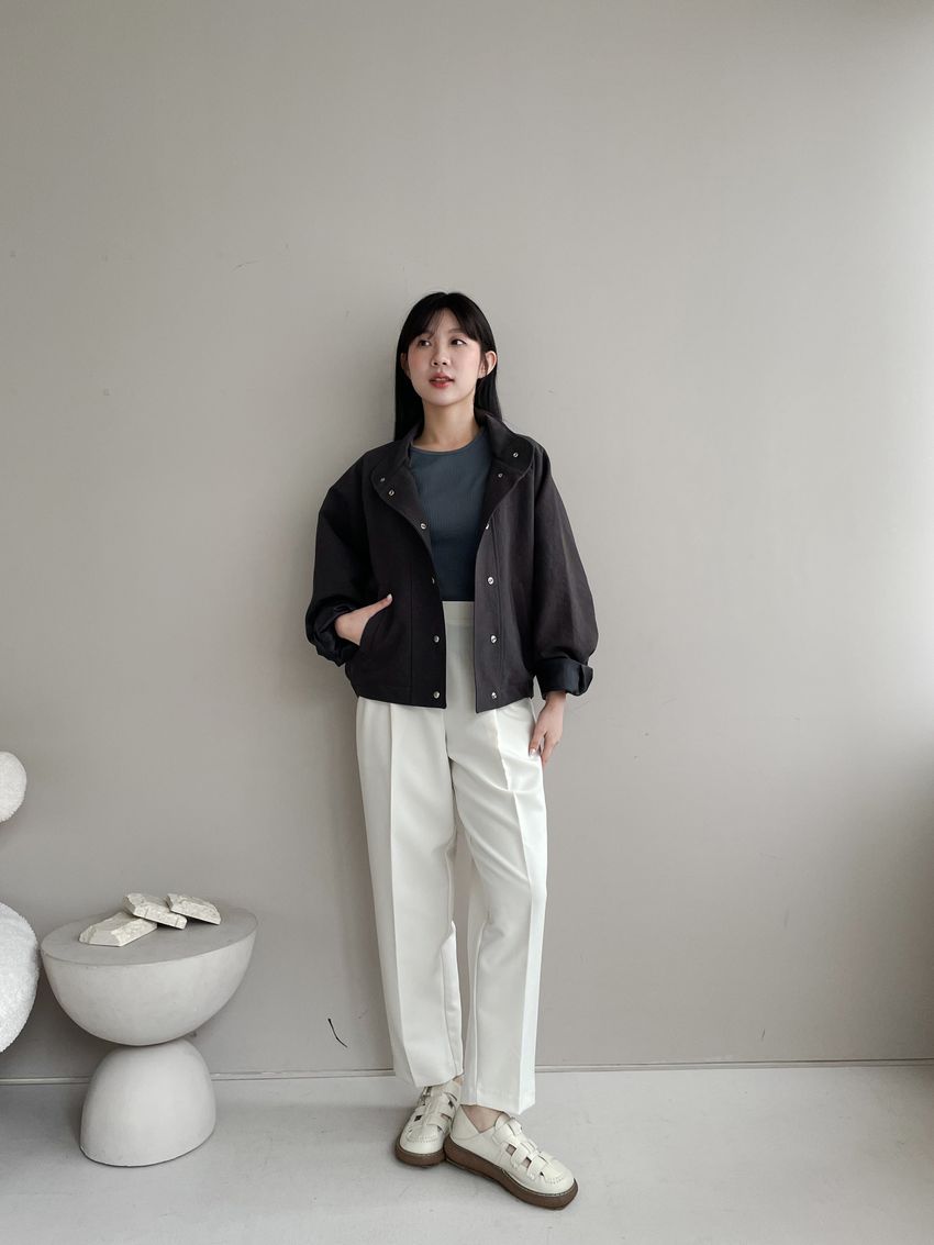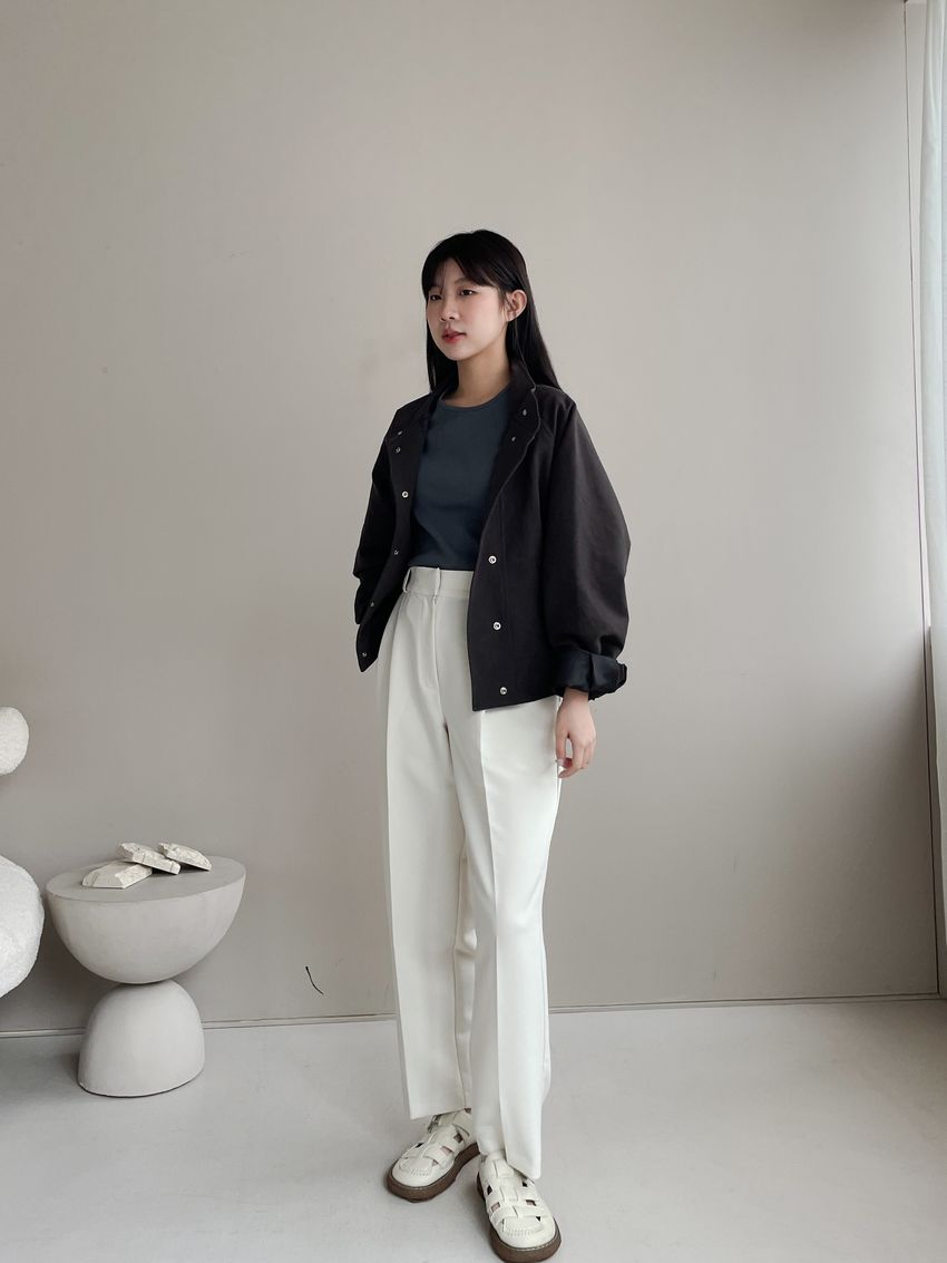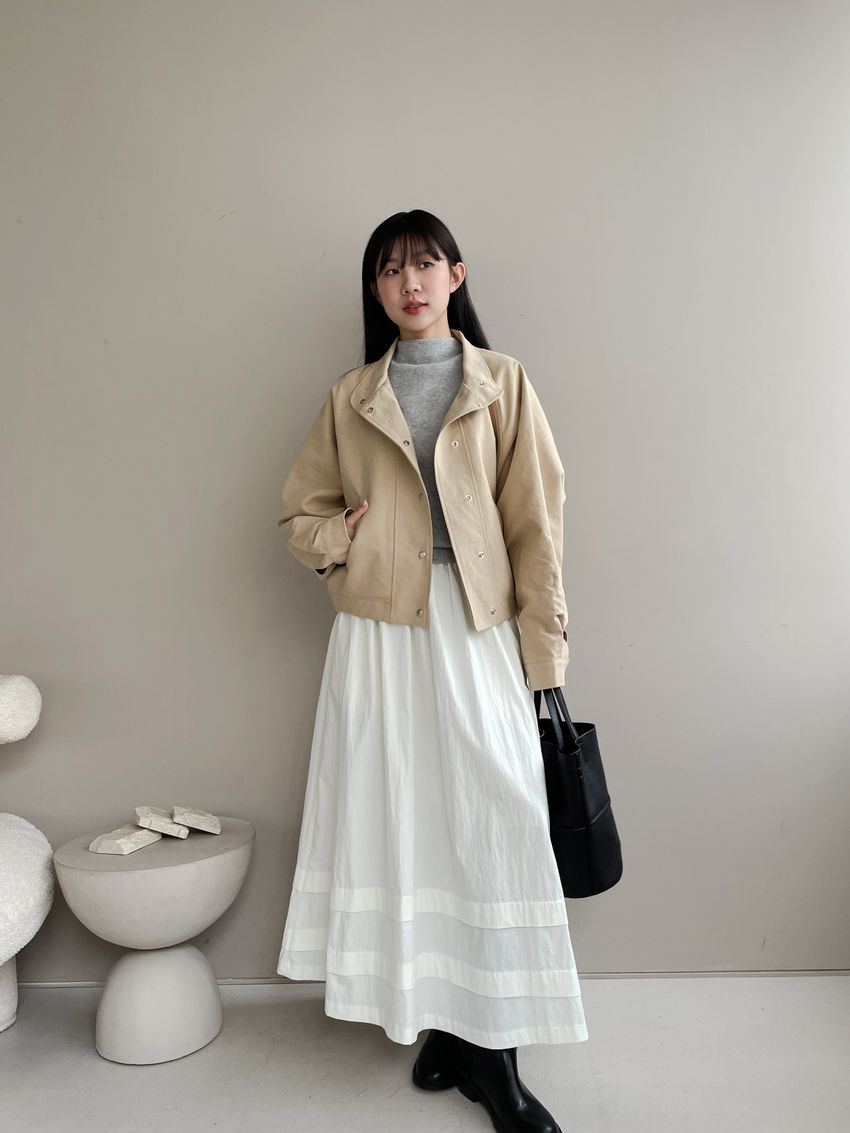 > 立領插肩袖壓釦短風衣外套(直播影片)