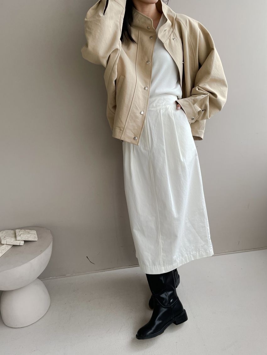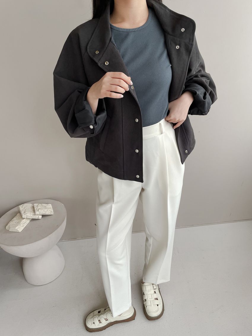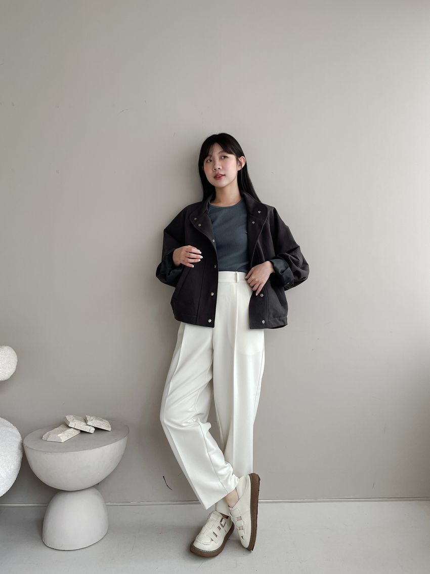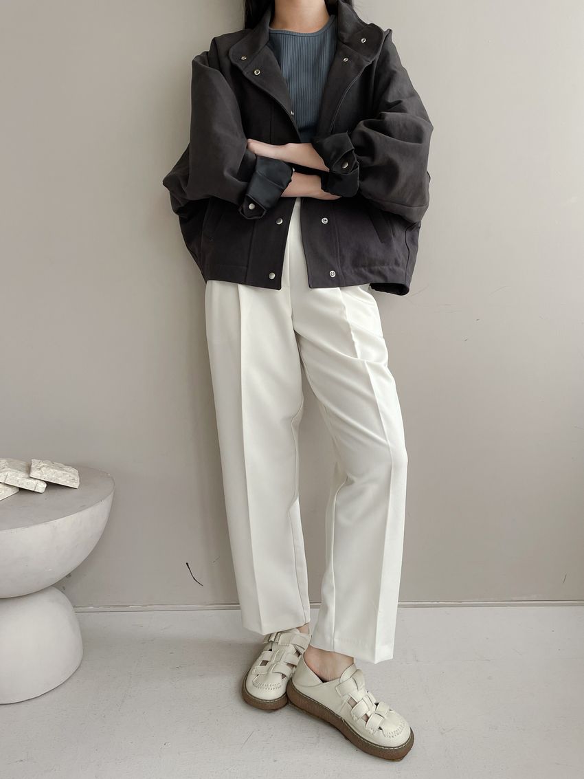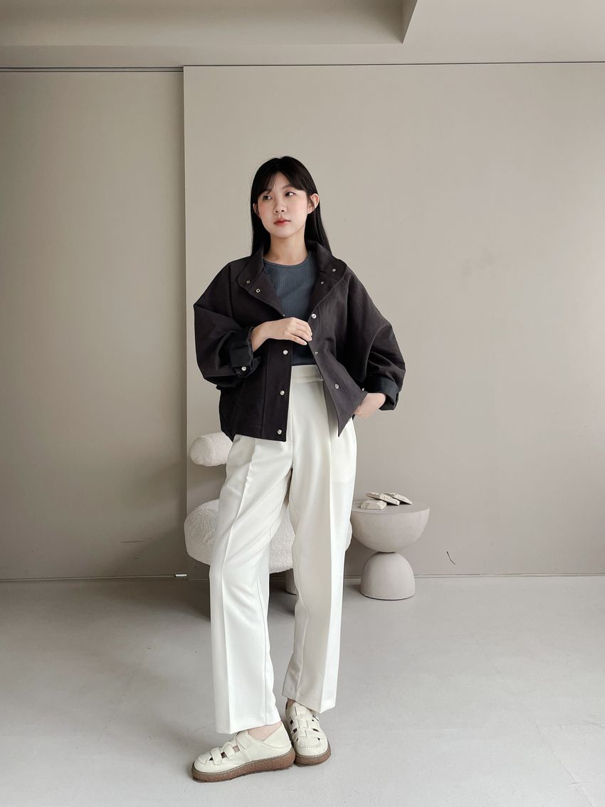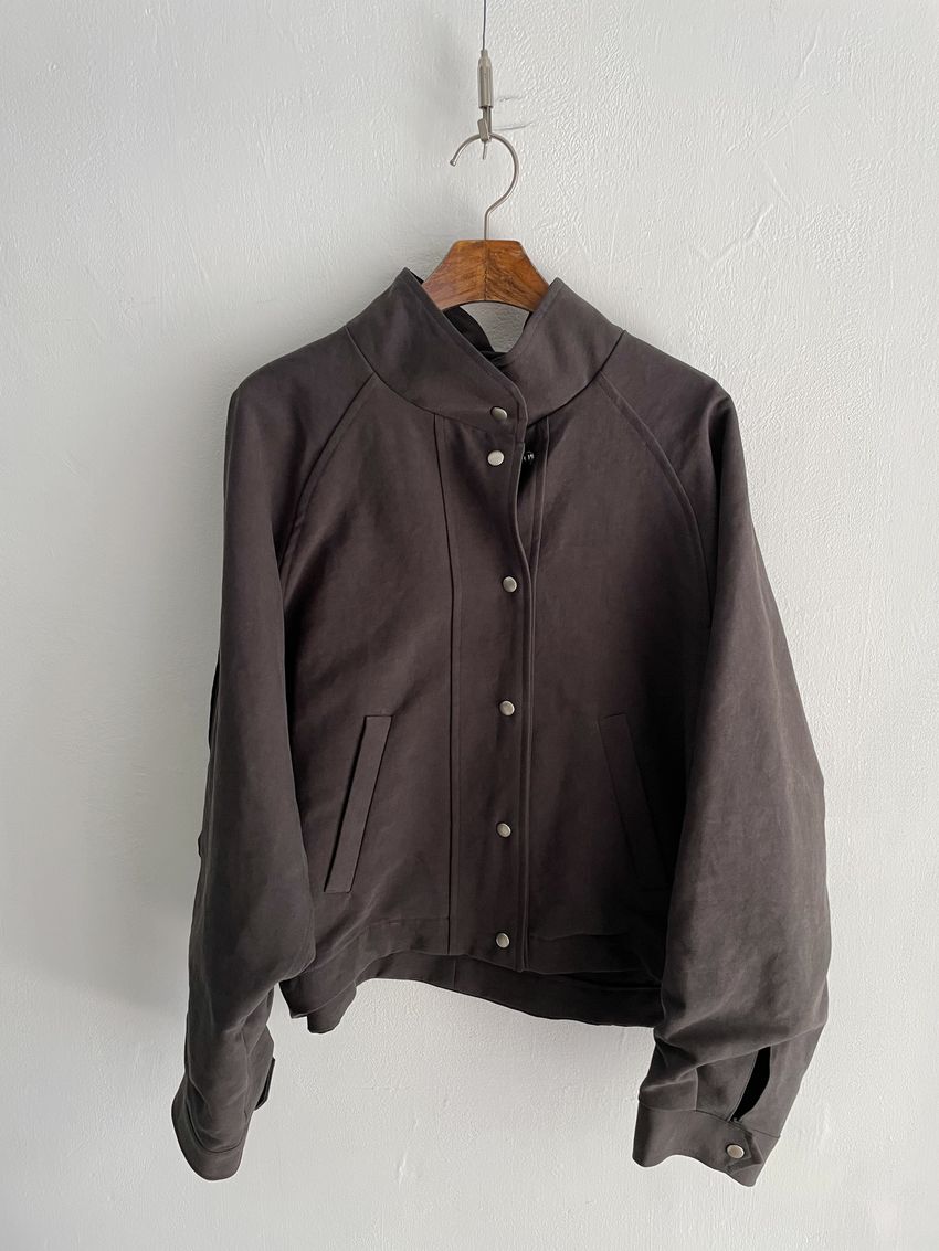 > 立領插肩袖壓釦短風衣外套(直播影片)