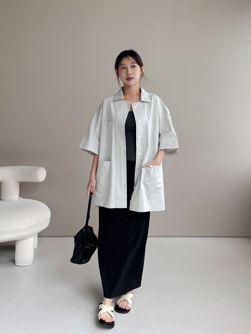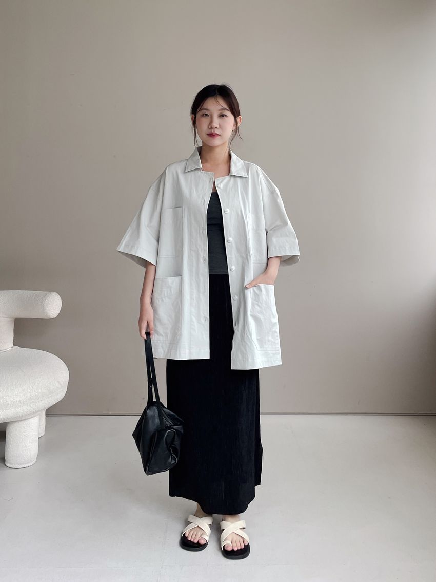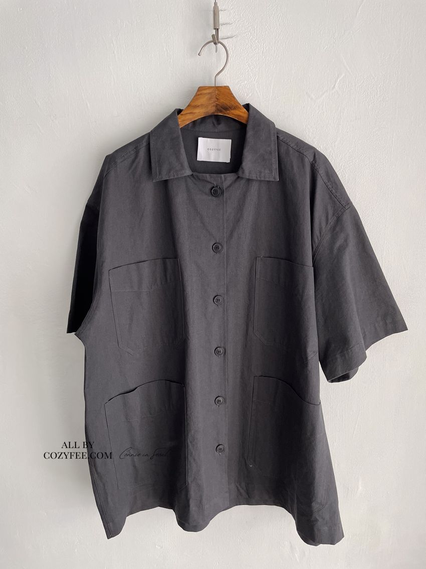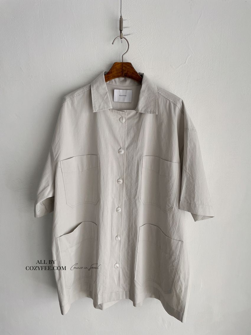 > 男友寬鬆大口袋襯衫外套(特)
