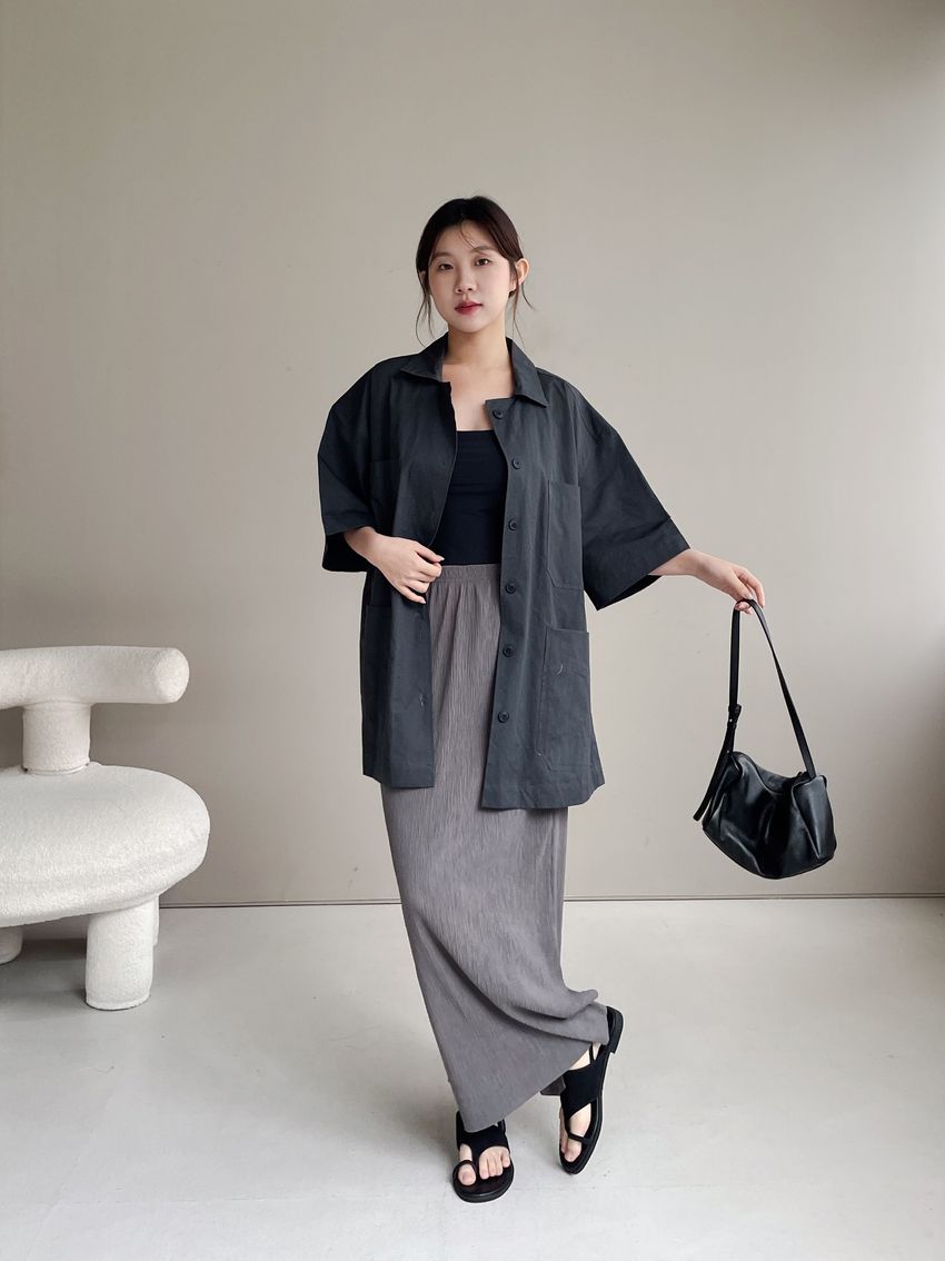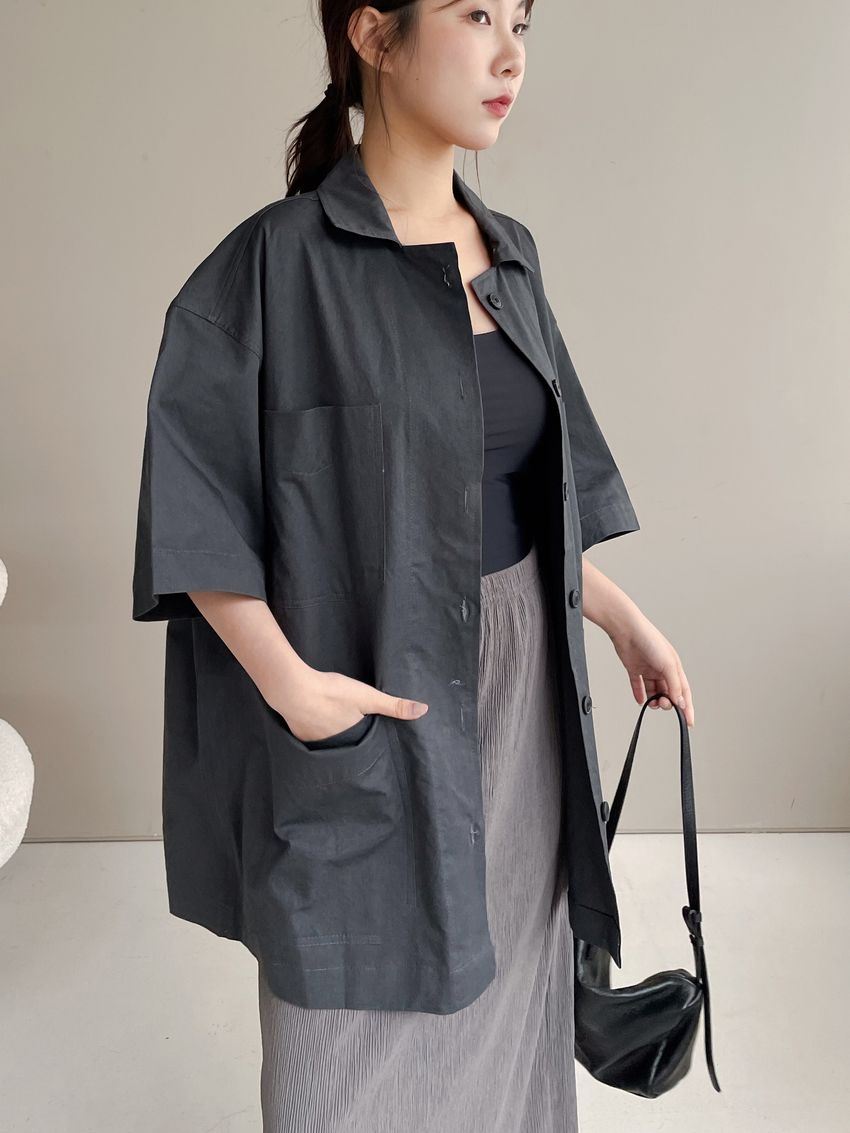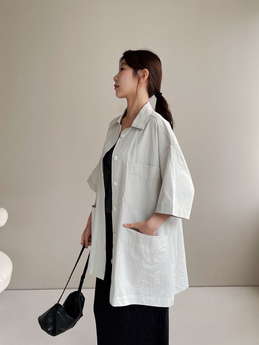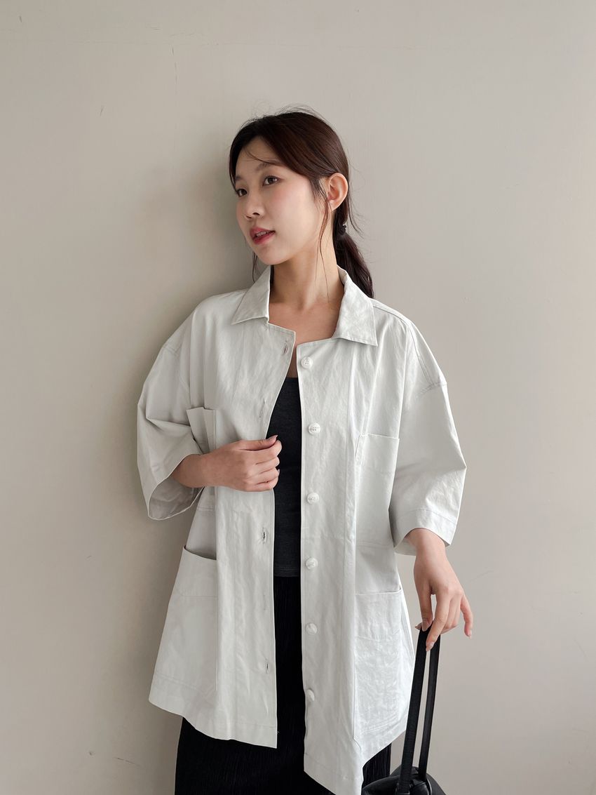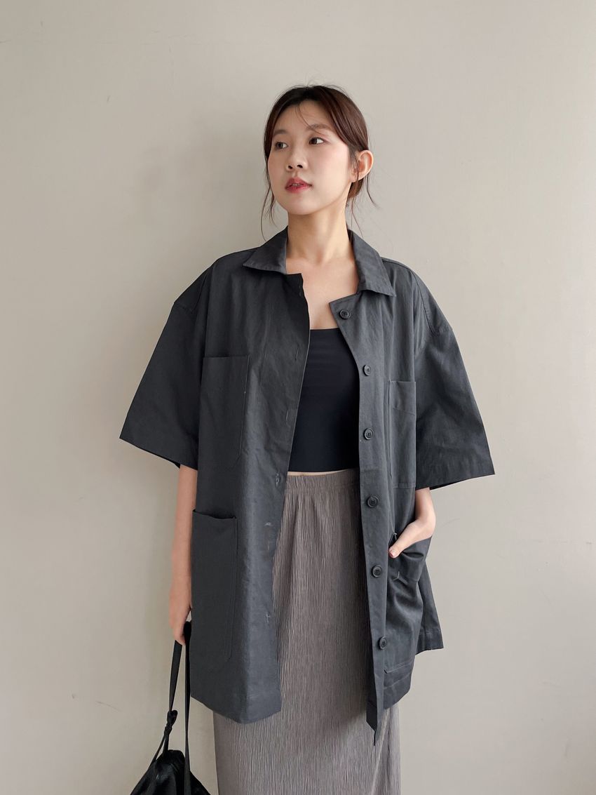 男友寬鬆大口袋襯衫外套(特)
