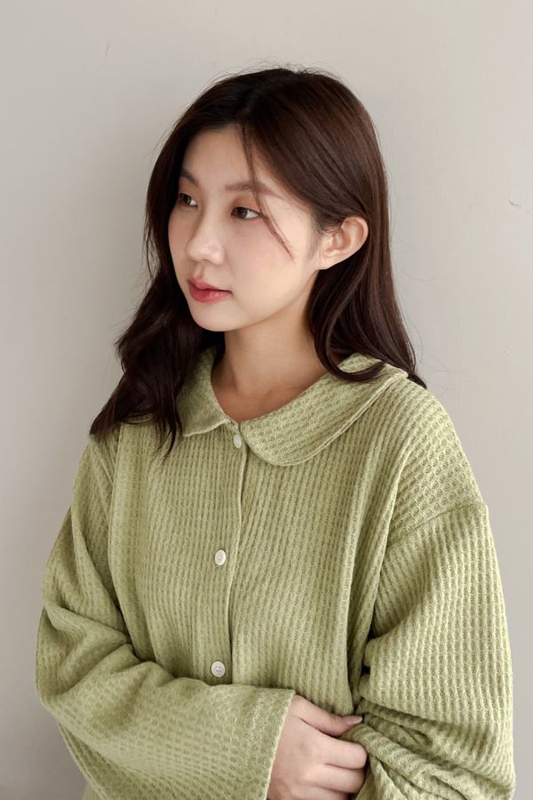 甜美圓領華夫格針織外套